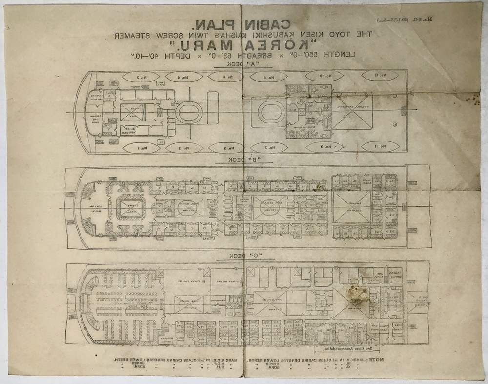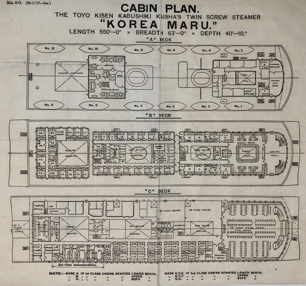 CABIN PLAN. THE TOYO KISEN KABUSHIKI KAISHA’S TWIN SCREW STEAMER “KOREA MARU”.