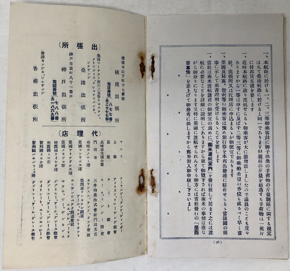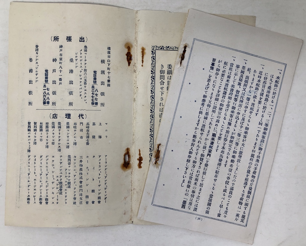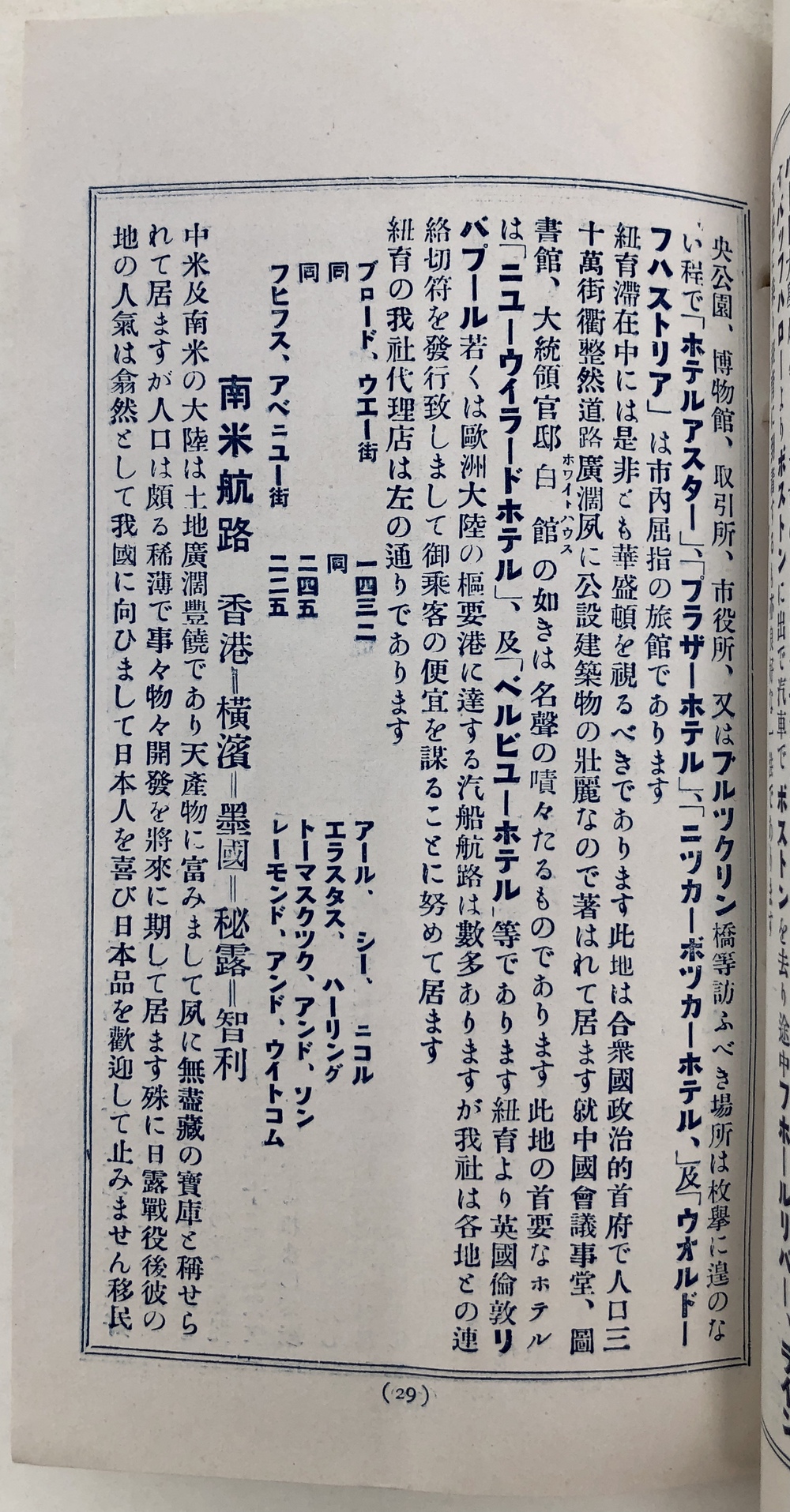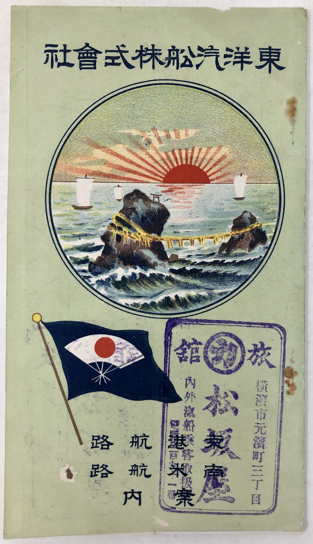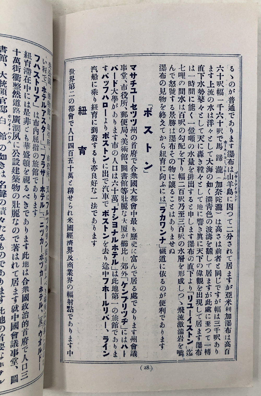 10.8 cm x 18.8 cm, Folded plates, folded map, pp.1-36, Original pictorial paper wrappers. 表紙と本体が外れている状態。13-14頁に切り取りによる欠損あり。表紙に当時の旅館(横浜の松坂屋)の押印あり。