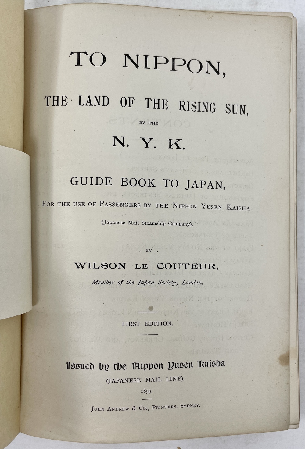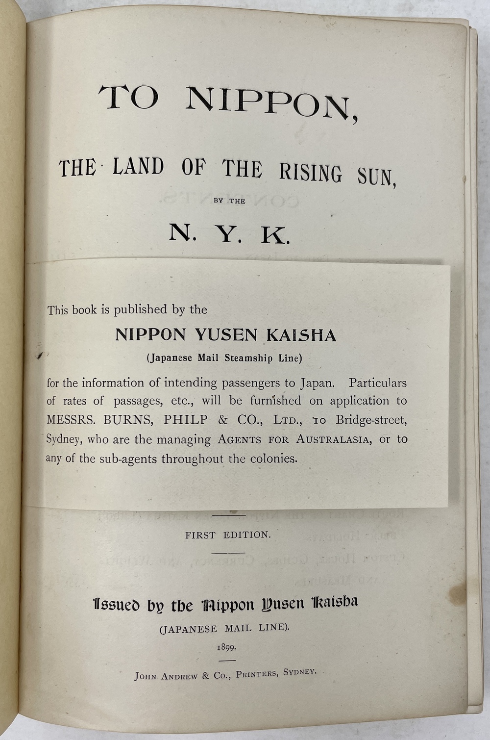 TO NIPPON, THE LAND OF THE RISING SUN BY THE N. Y. K. GUIDE BOOK TO JAPAN, FOR THE USE OF PASSENGERS BY THE NIPPON YUSEN KAISHA (Japanese Mail Steamship Company),…