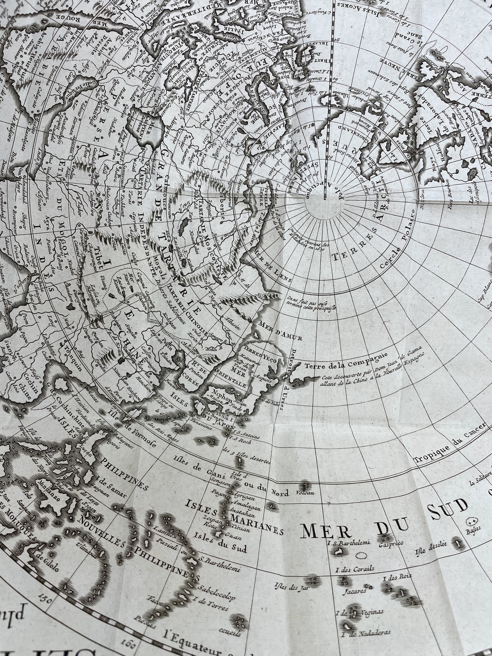 1. 日本を含む北半球を(北東航路、北西航路を示すために)描いた折込大型地図
