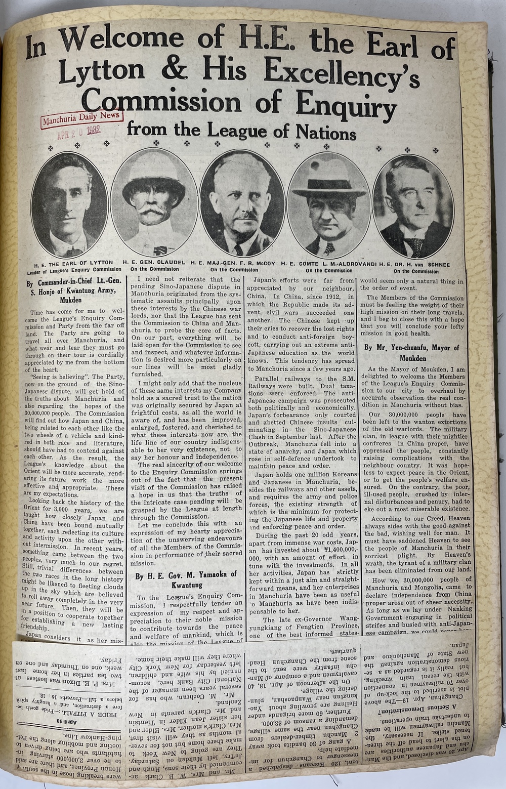 The League of Nations Commission of Inquiry in Manchuria.