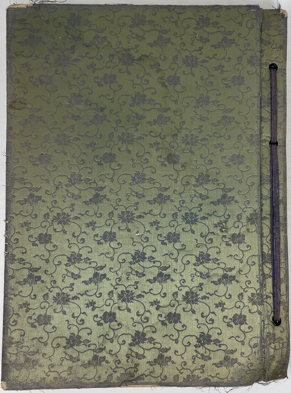 Original decorative green silk? cloth board bound in Japanese style.