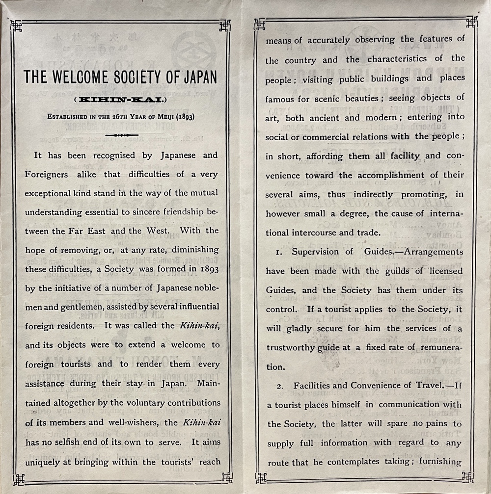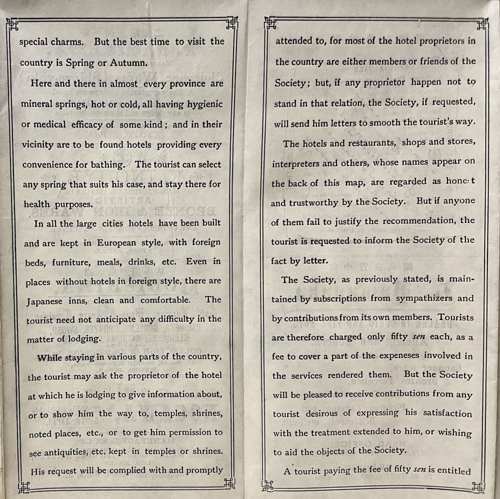 MAP OF JAPAN FOR TOURISTS PUBLISHED BY THE WELCOME SOCIETY OF JAPAN.