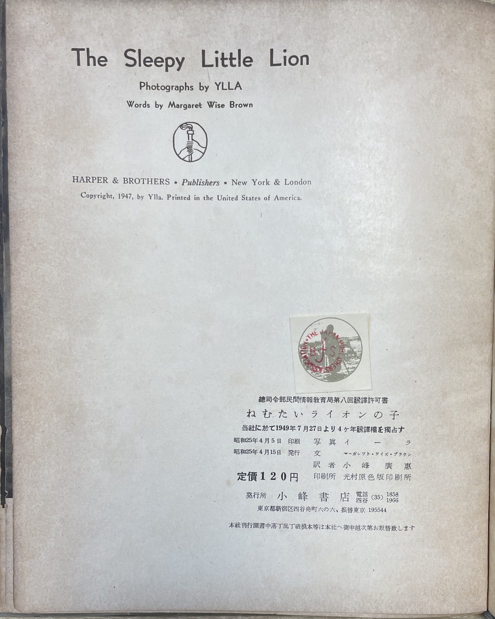 日本語訳版(総司令部民間情報教育局第8回翻訳許可書) 1950(昭和25)年 東京(小峰書店)刊