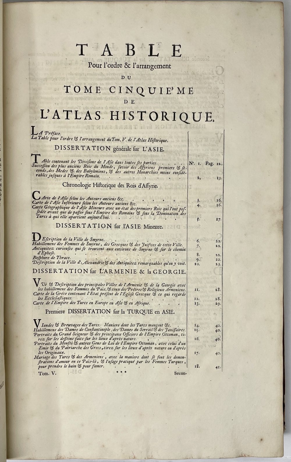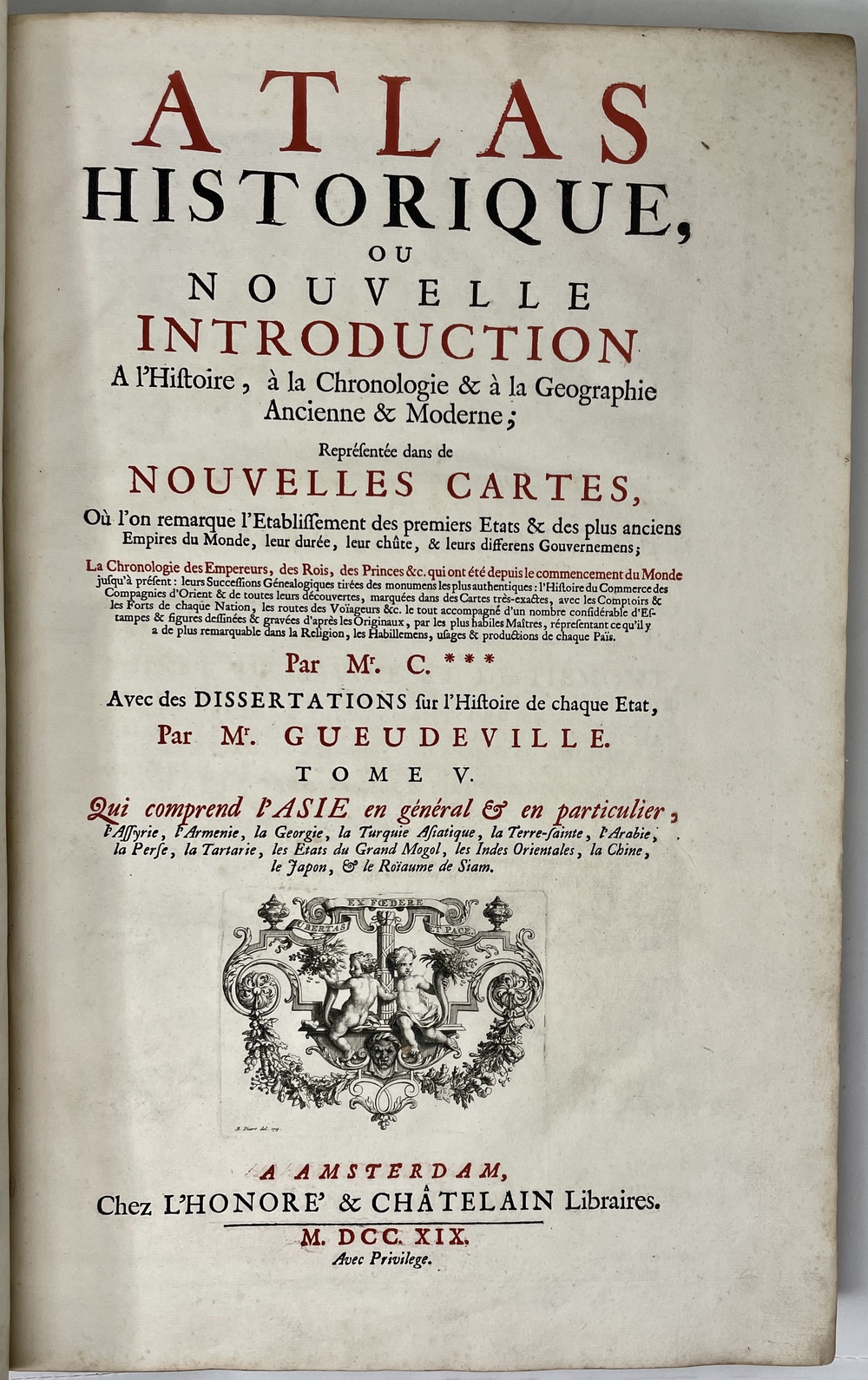 ATLAS HISTORIQUE, OU NOUVELLE INTRODUCTION A l’Histoire, à la Chronologie & à la Geographie Ancienne & Moderne; Représentée dans de NOUVELLES CARTES,…TOME V. Qui comprend l’ASIE en général & en particulier,…