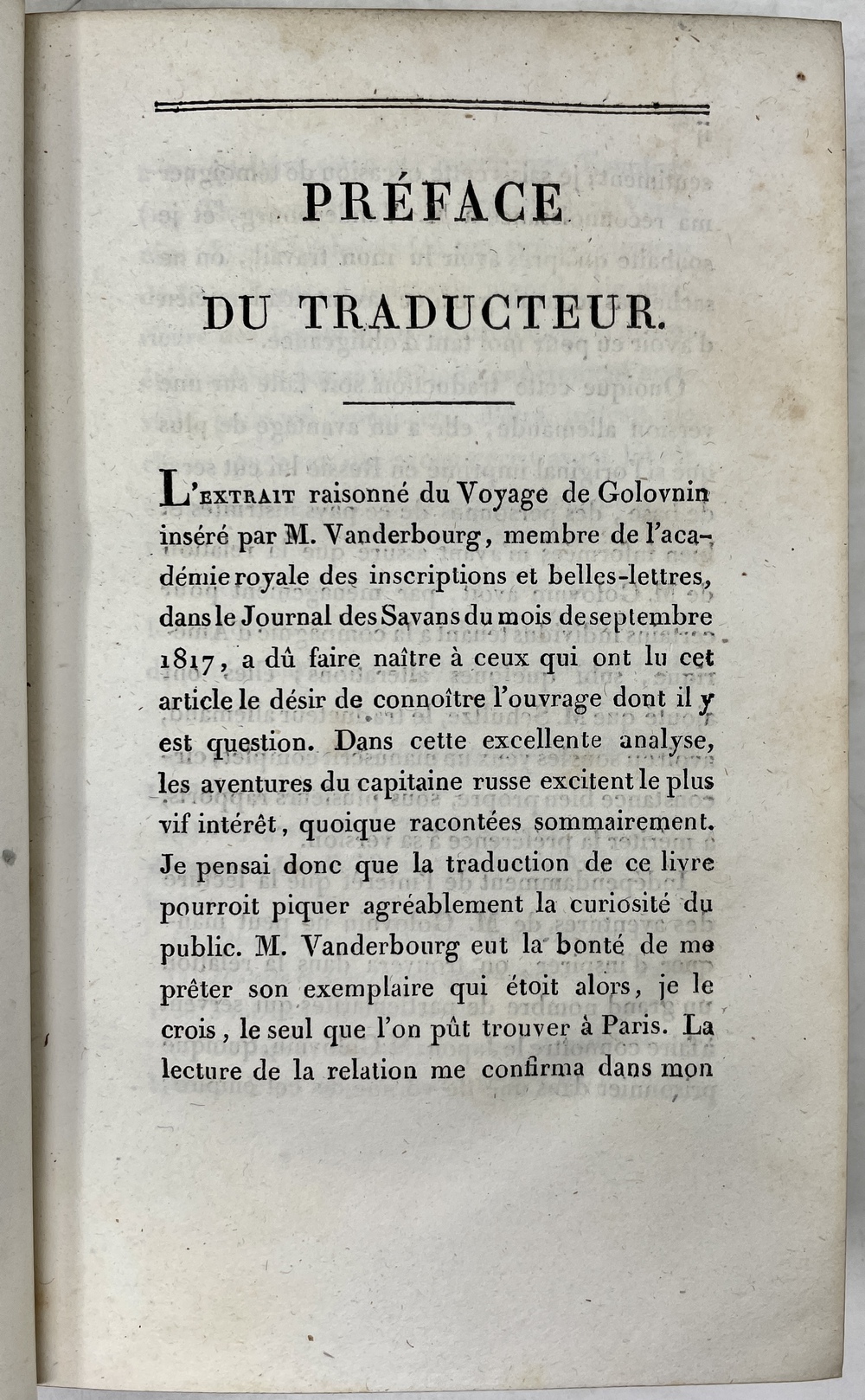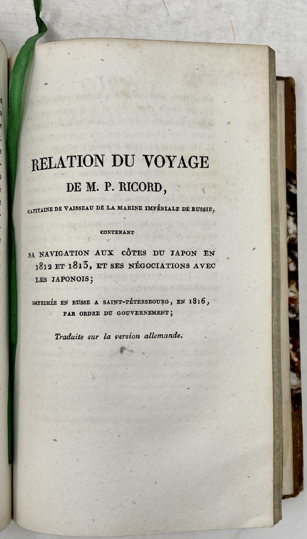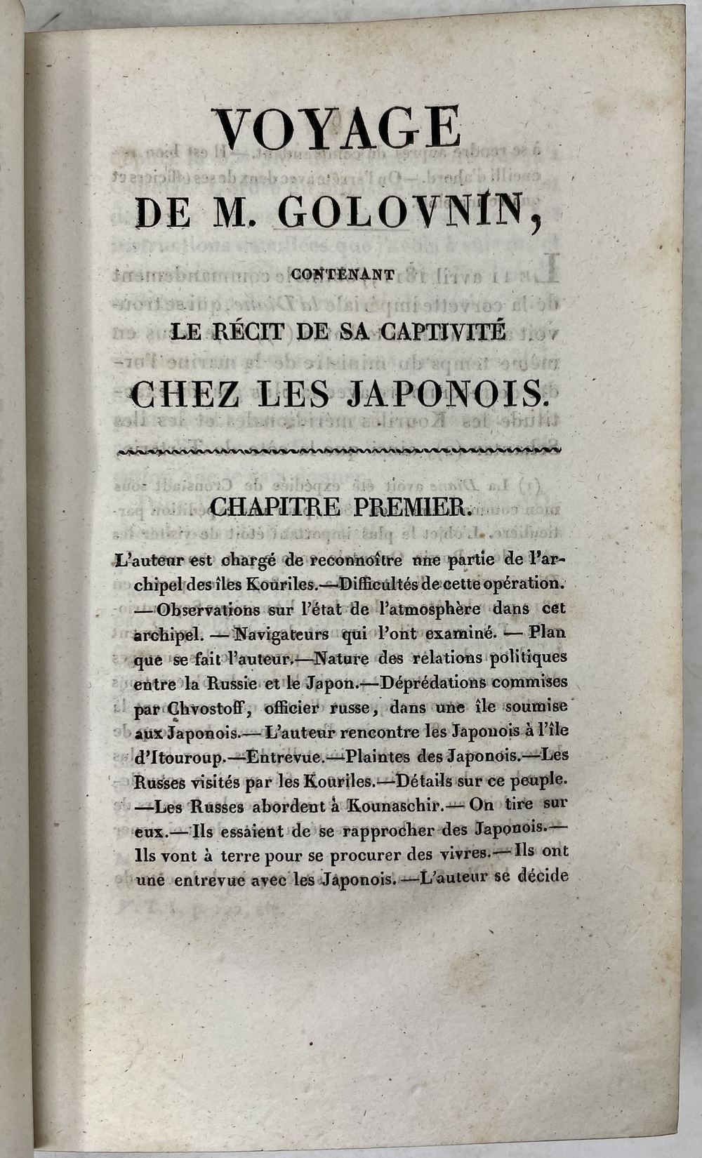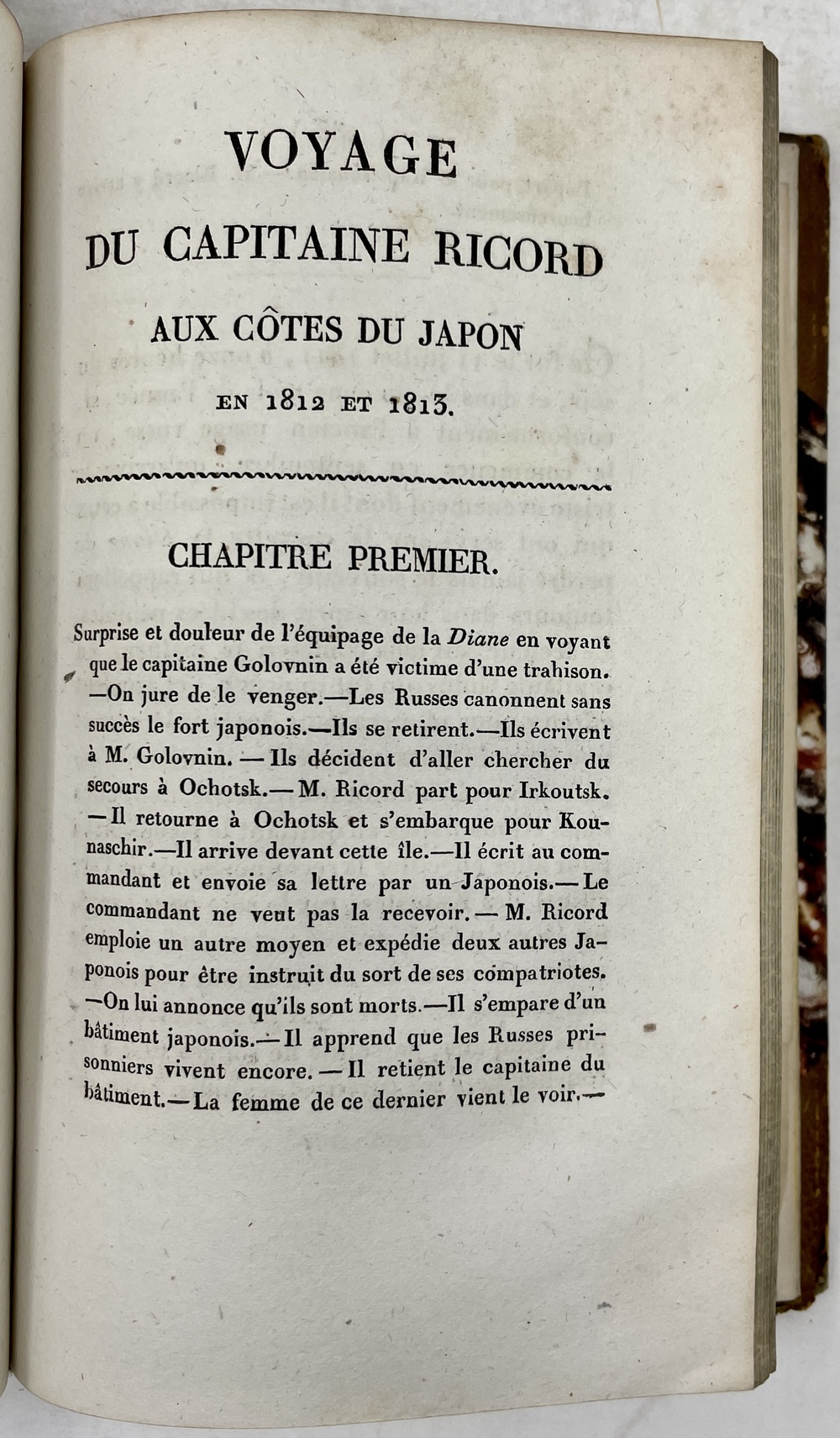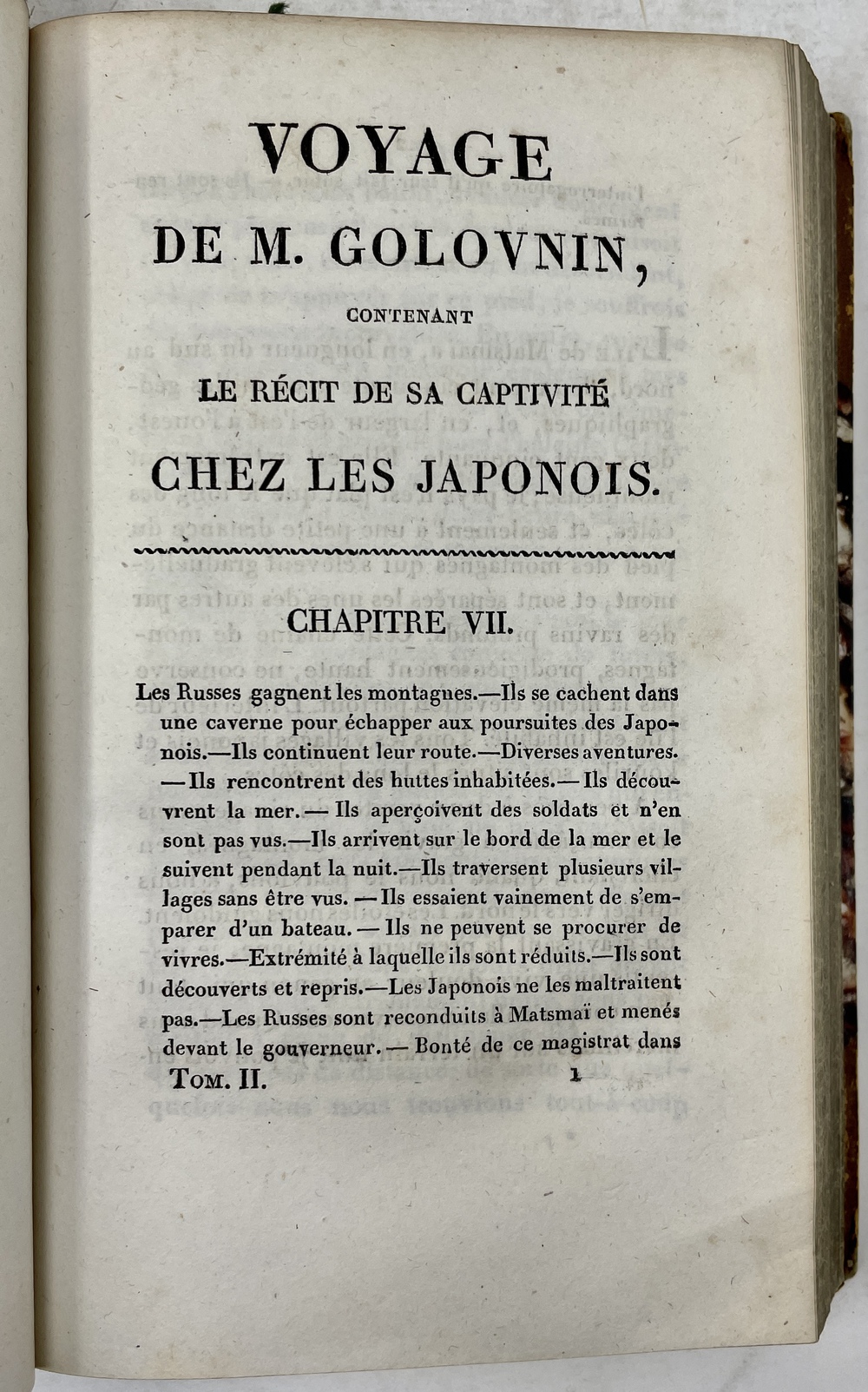 VOYAGE DE M. GOLOVNIN,… CONTENANT LE RÉCIT DE SA CAPTIVITÉ CHEZ LES JAPONOIS, PENDANT LES ANNÉES 1811, 1812 ET 1813, ET SES OBSERVATIONS SUR L’EMPIRE DU JAPON;…SUIVI DE LA RELATION DU VOYAGE DE M. RICORD,…