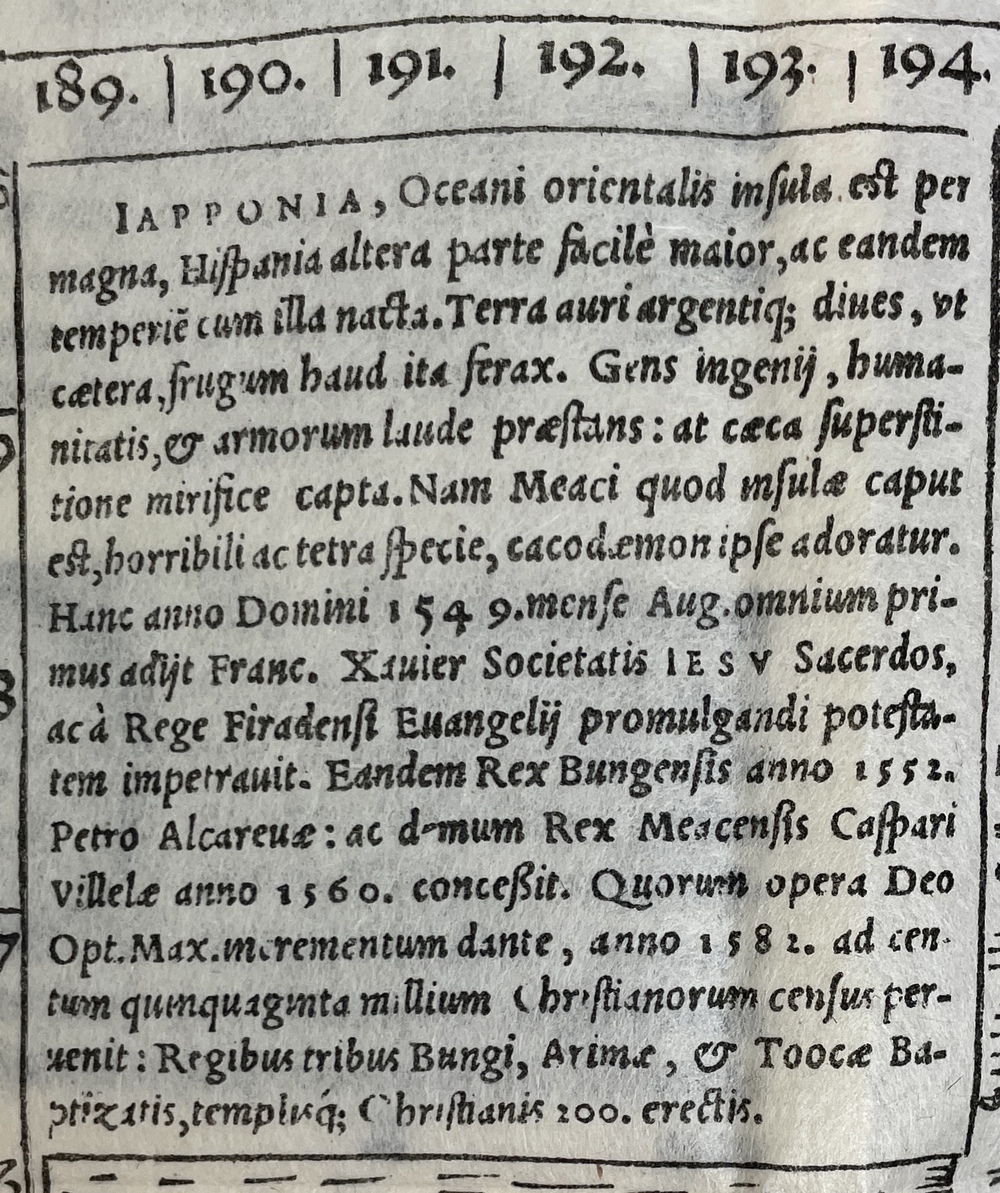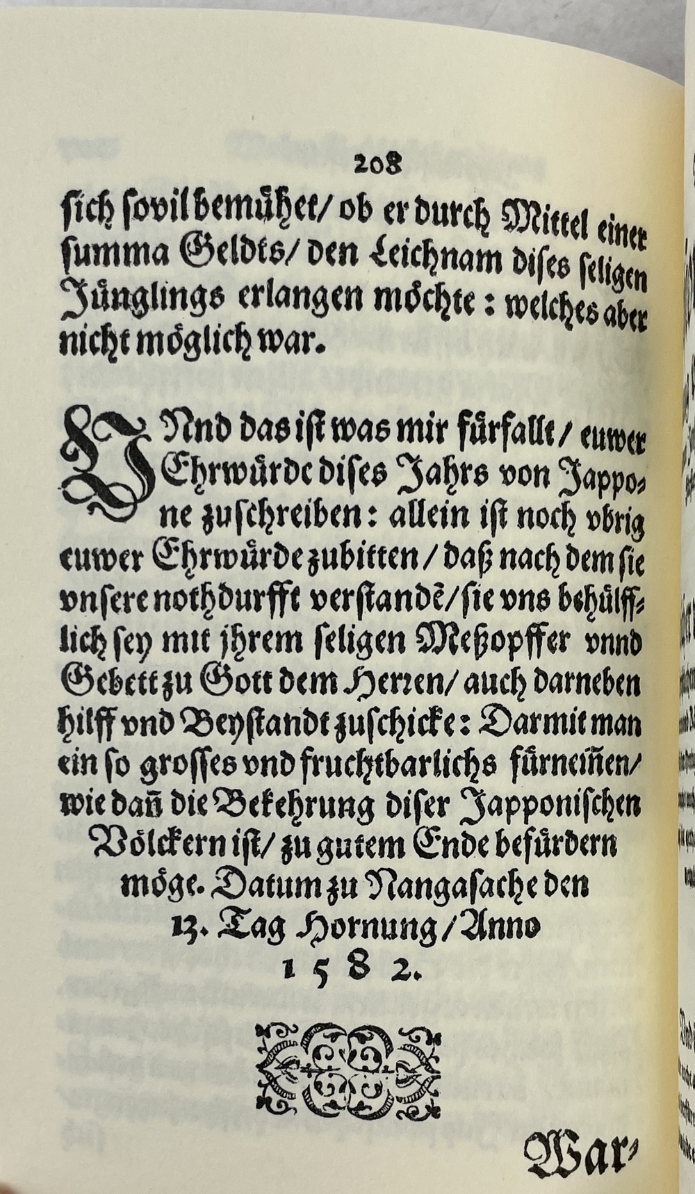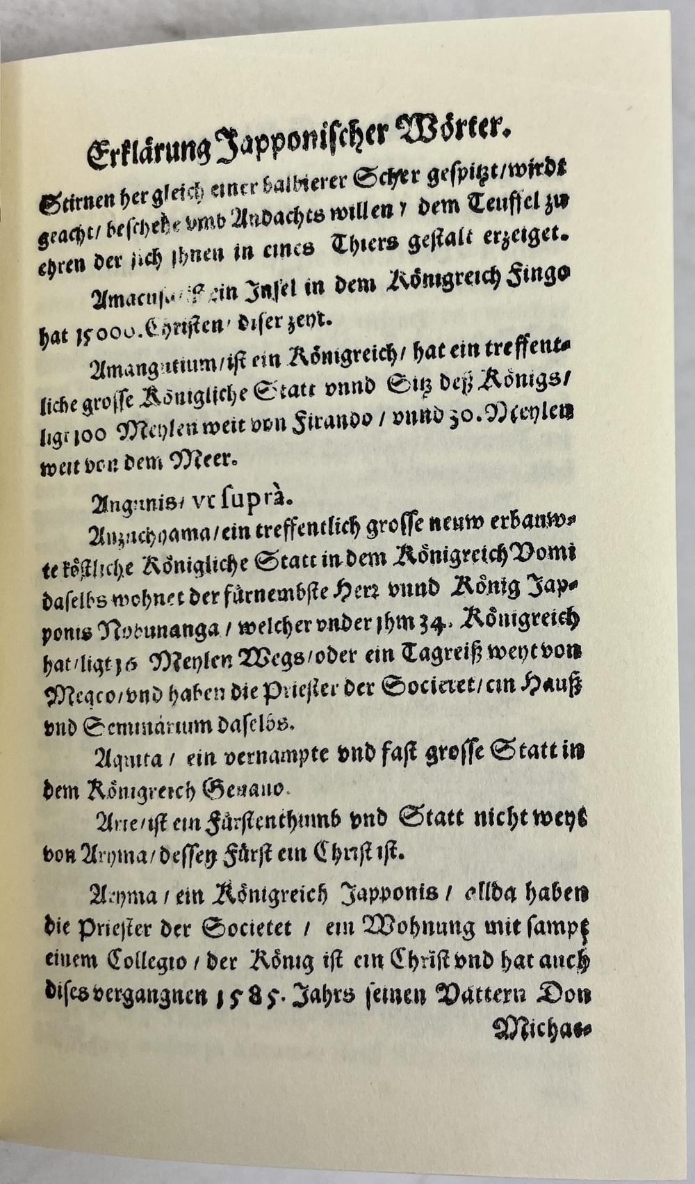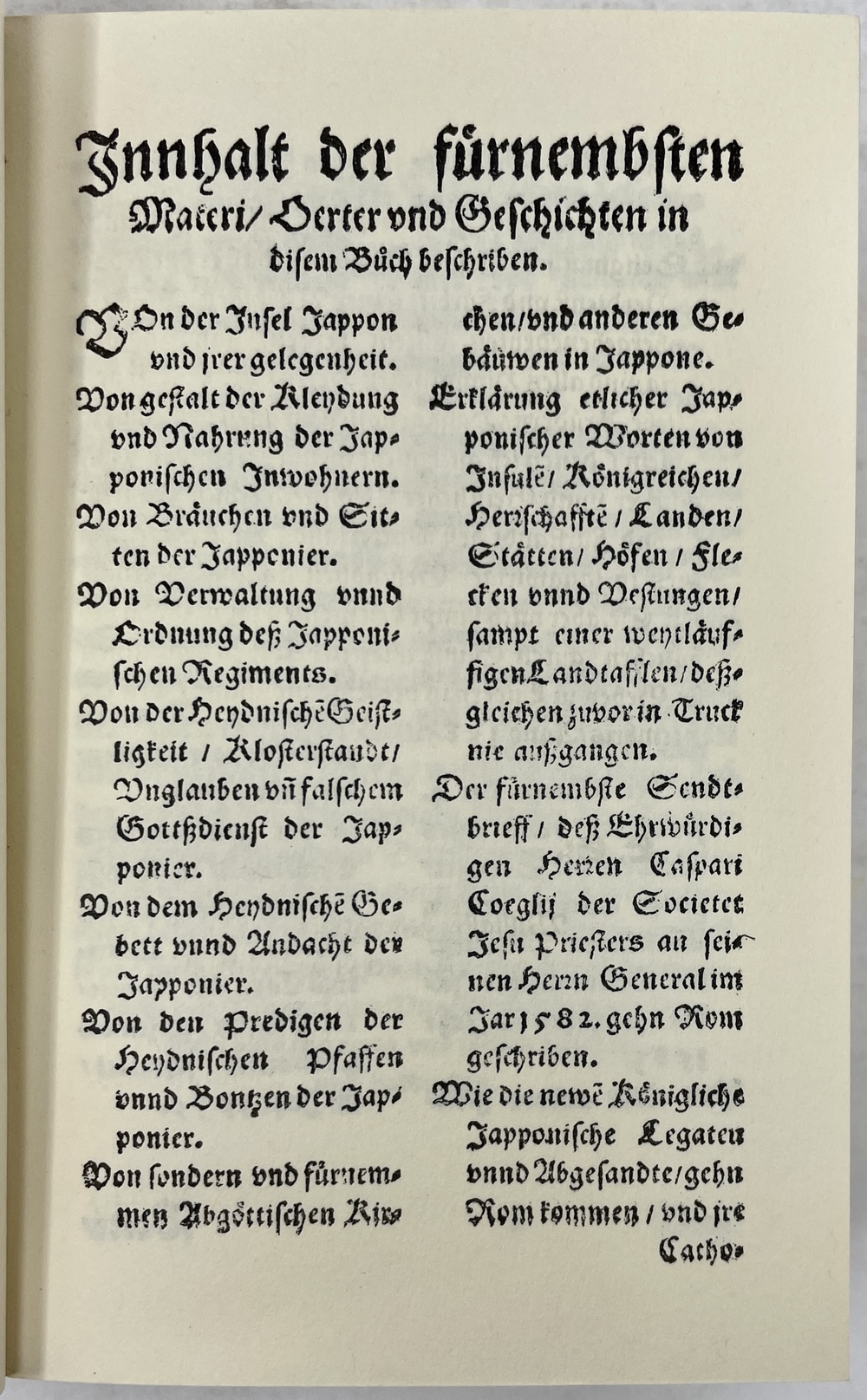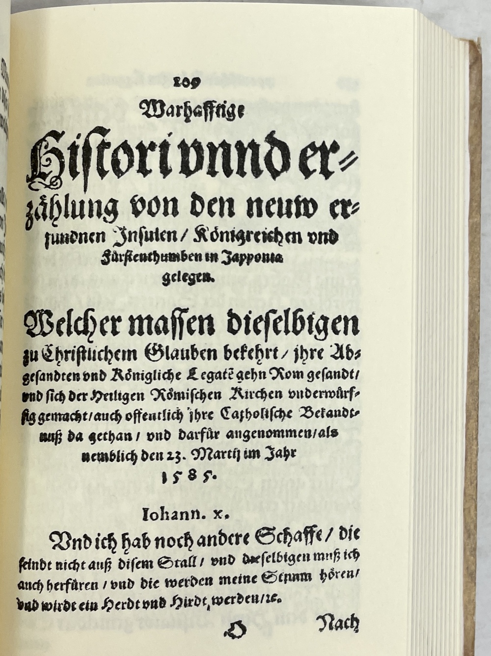 Warhafftiger Bericht, von den newerfunden Japponischen Inseln und Königreichen, auch von andren zuvor vnbekandten Indianischen Landen….Neben dem allen erfindete sich in diser Edition gründliche anzeygung von der Japponischen Legation neuwlich gehn Rom ank