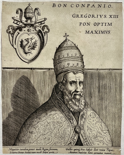 BON CONPANIO. GREGORIVS. XIII PON OPTIM MAXIMVS.