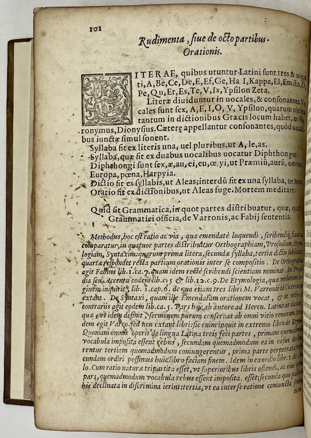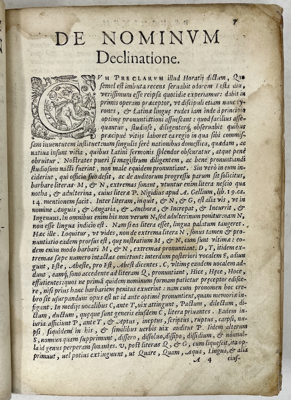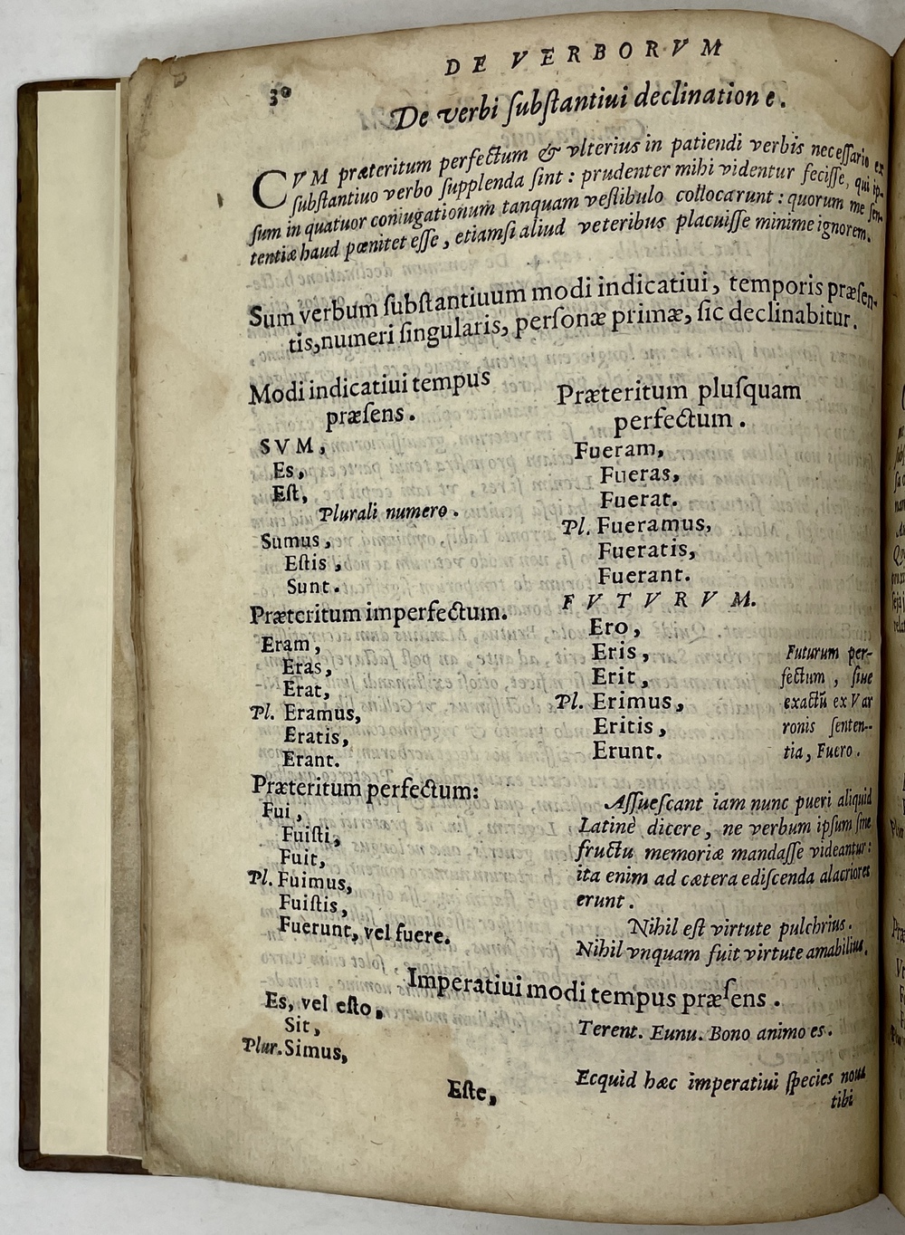 「アルバレス『ラテン文典』には、教授用注(Scholion)が大量に付された『大文典』と、初学者への便宜のために、『大文典』から教授用注を大幅に削除した『小文典』の2種が存在する。いずれも、巻1:形態論(名詞・形容詞や動詞の語形変化)、巻2:統語論、巻3:韻律論の3巻構成である。『大文典』諸版(1572、Lisboa)は全247丁(494ページ)、1575年『大文典』改訂版(Venezia)(本書のこと:引用者注)は527ページ、1573年版『小文典』初版は全149丁(298ページ)で、『大文典』の記述の多くが削除されたことが理解できる。
