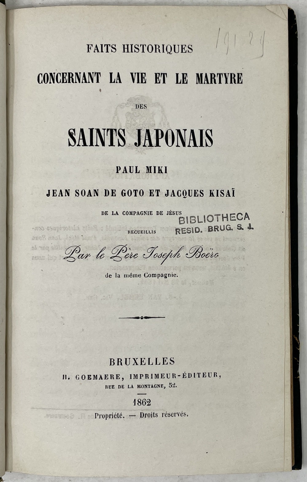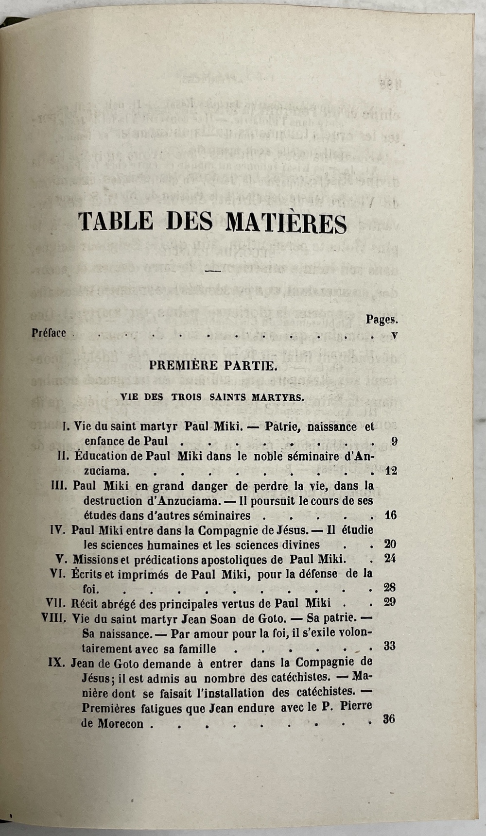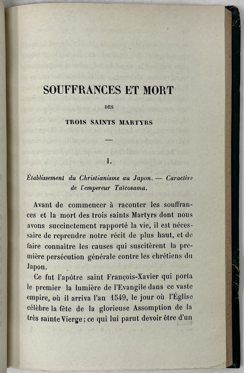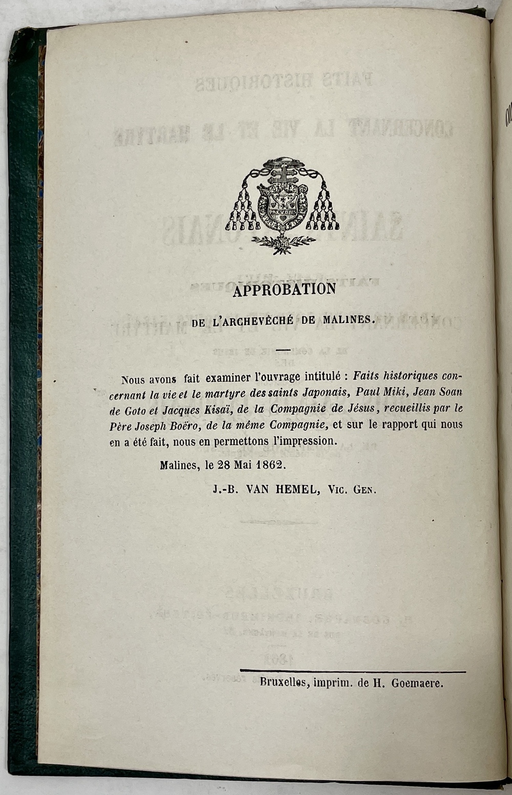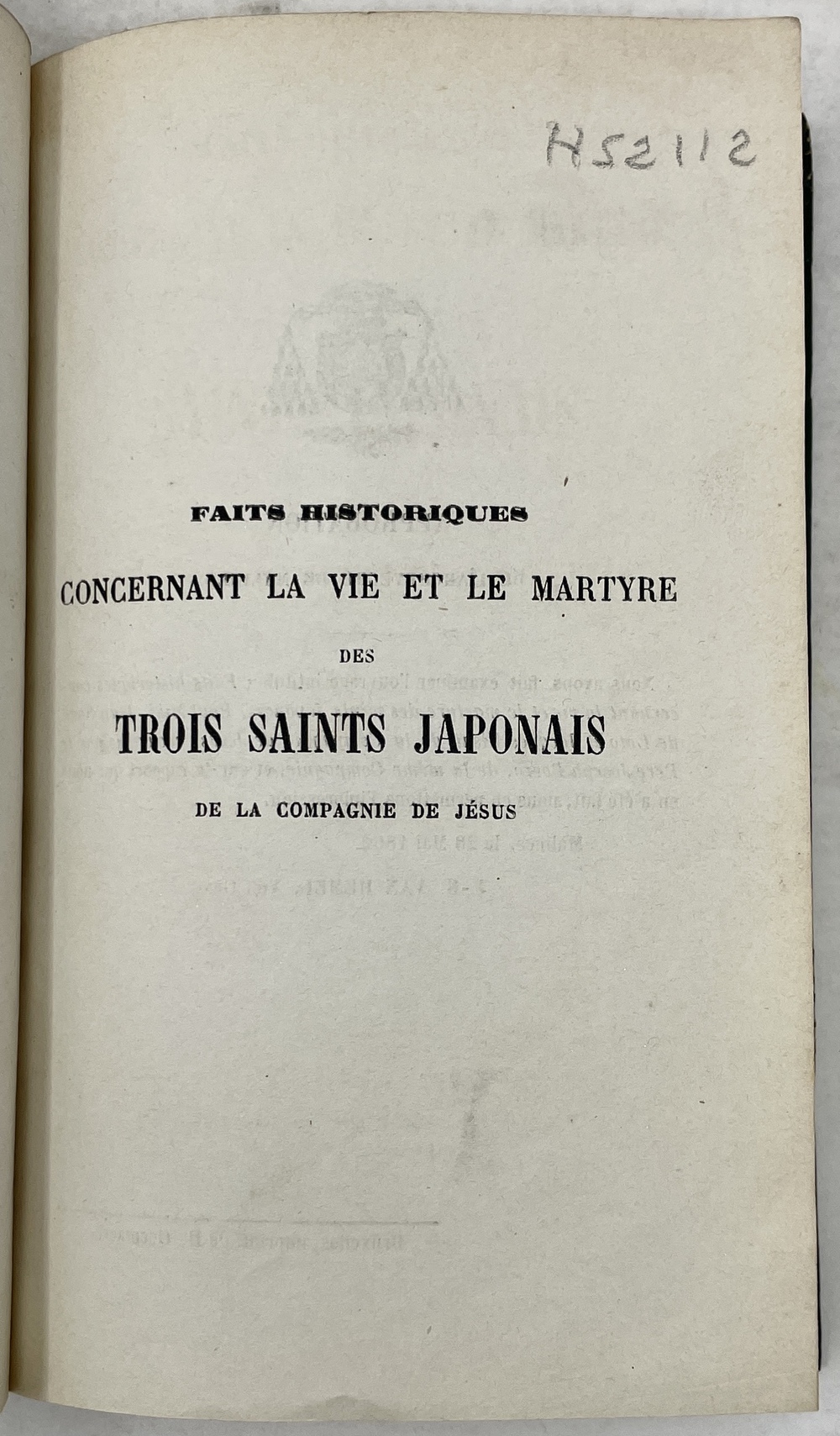 FAITS HISTORIQUES CONCERNANT LA VIE ET LE MARTYRE DES SAINTS JAPONAIS PAUL MIKI JEAN SOAN DE GOTO ET JACWES KISAÏ DE LA COMPAGNIE DE JÉSUS.