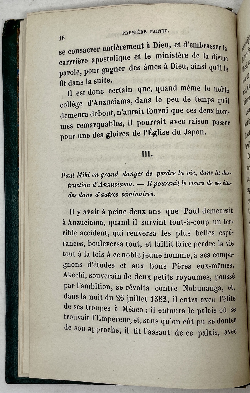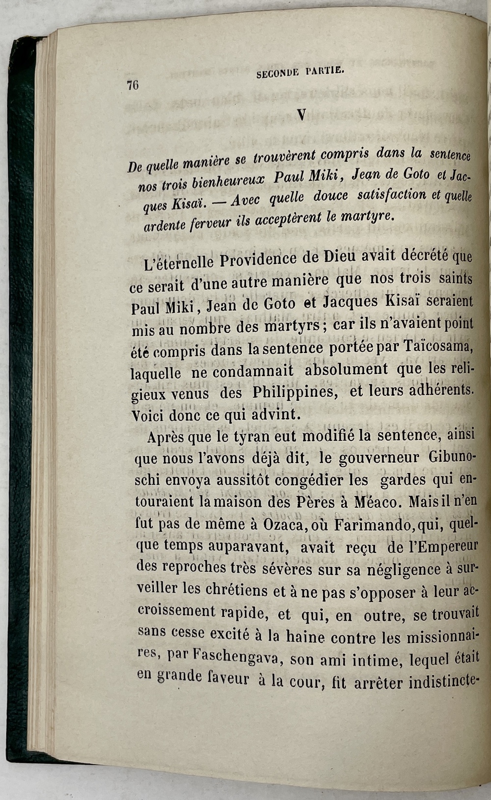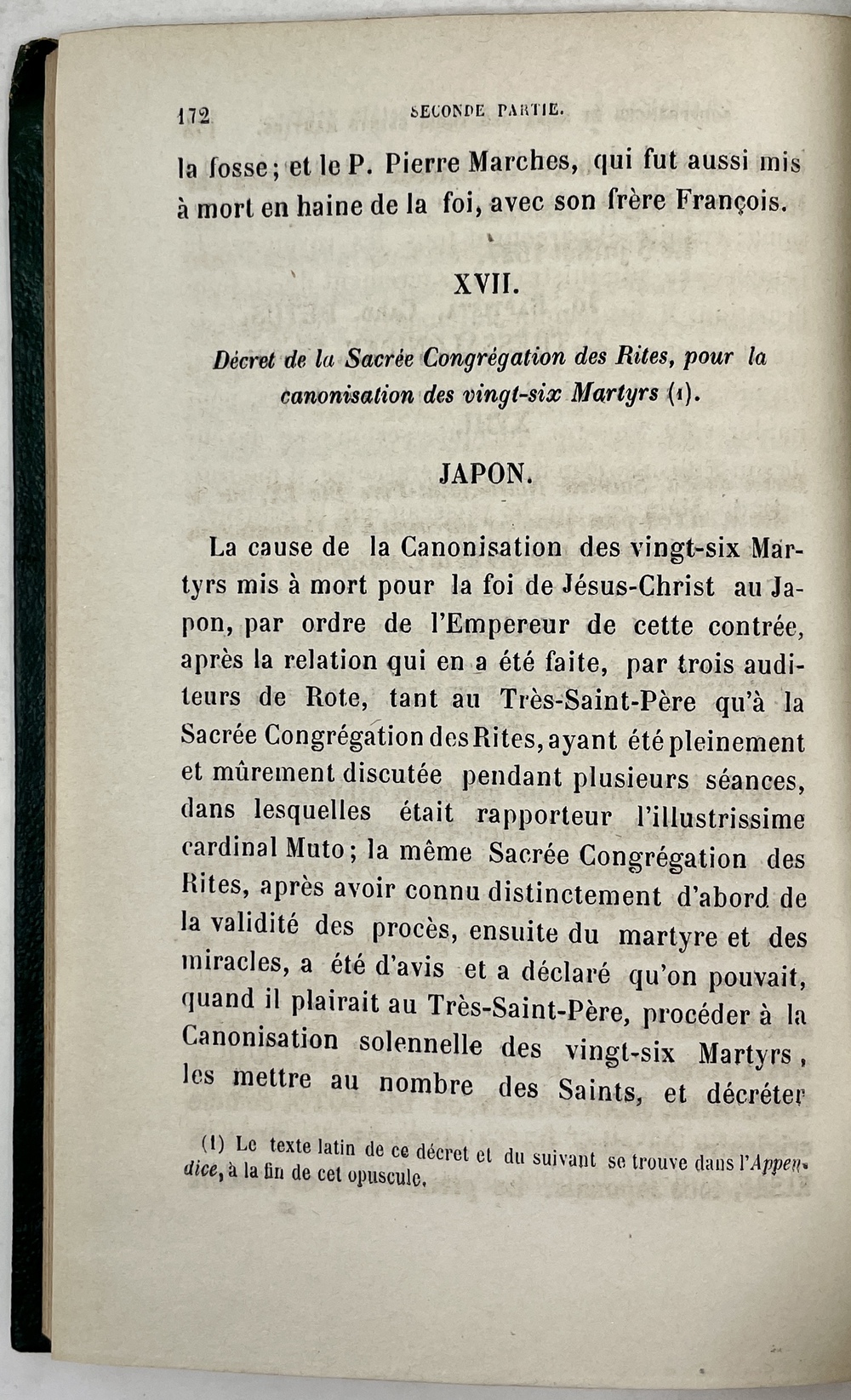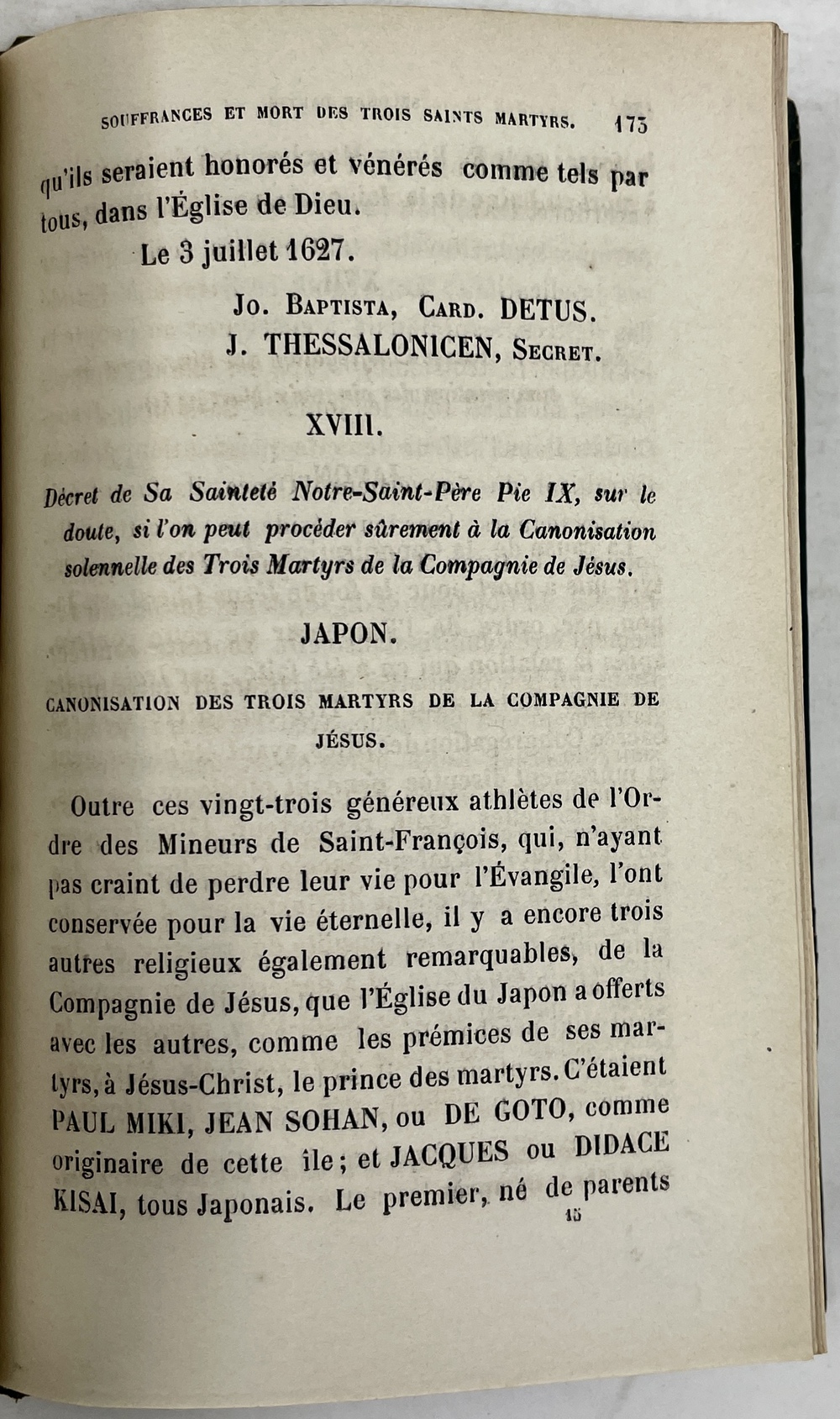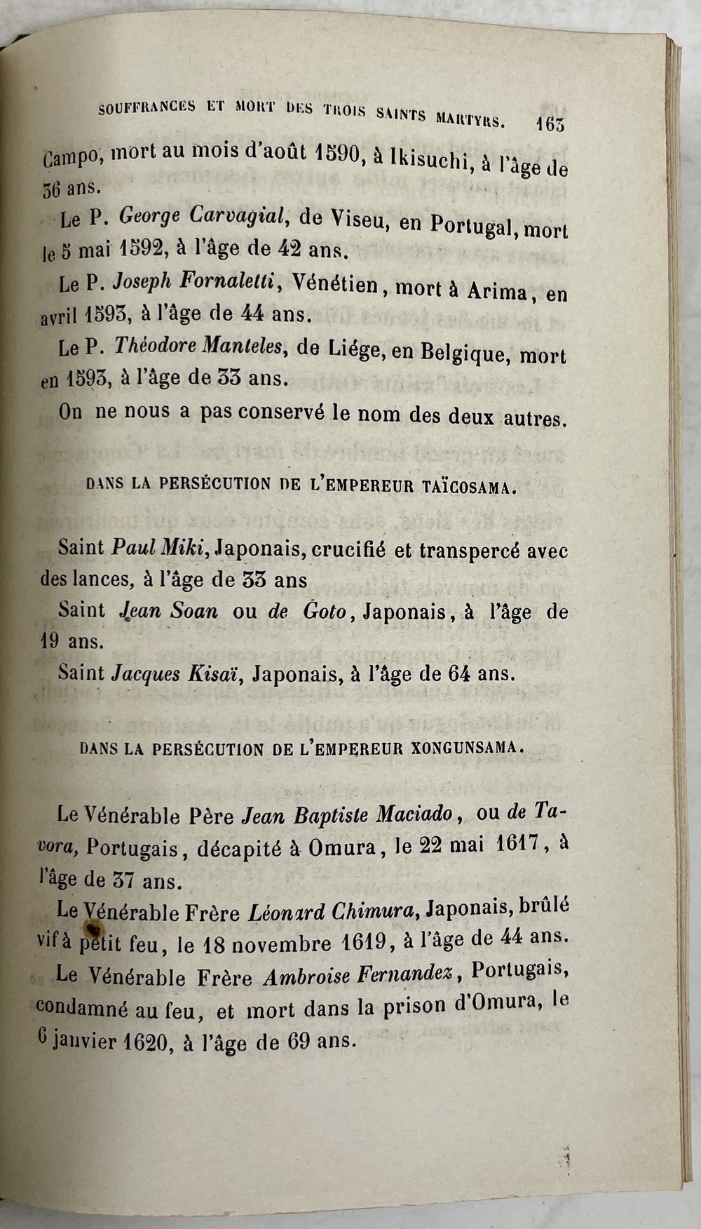 FAITS HISTORIQUES CONCERNANT LA VIE ET LE MARTYRE DES SAINTS JAPONAIS PAUL MIKI JEAN SOAN DE GOTO ET JACWES KISAÏ DE LA COMPAGNIE DE JÉSUS.