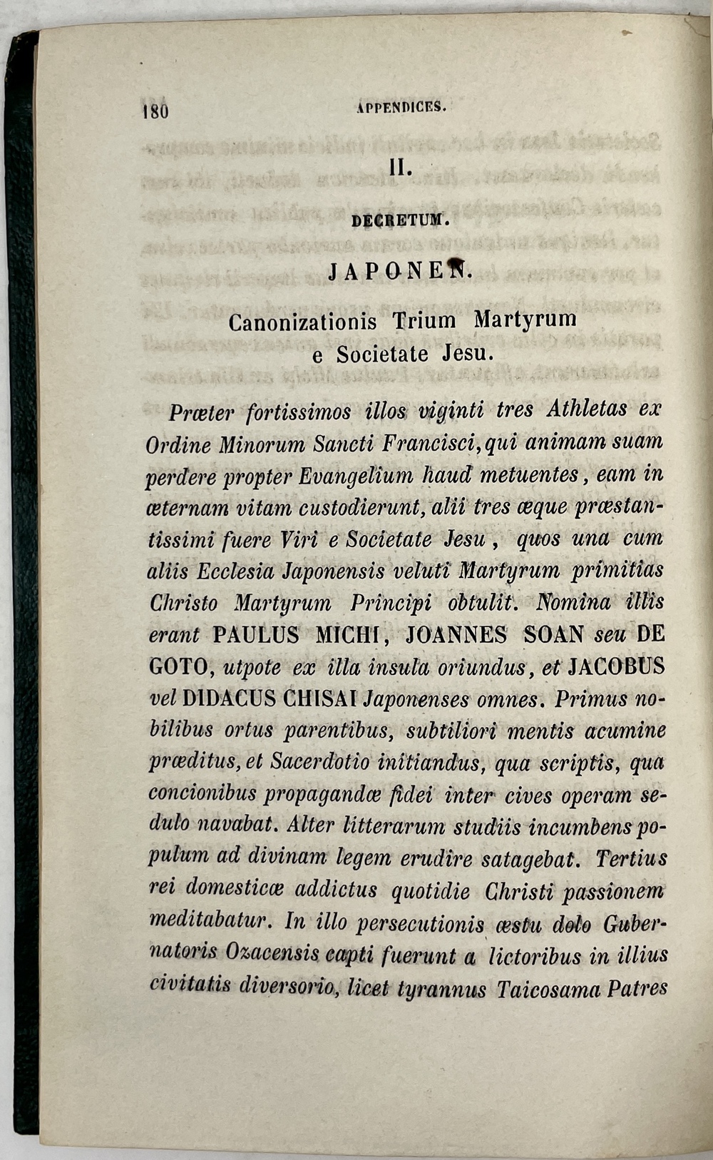 『日本の聖人である、イエズス会士パウロ三木、ヨハネ五島、ディエゴ喜斎の生涯と殉教に関する歴史的事実』