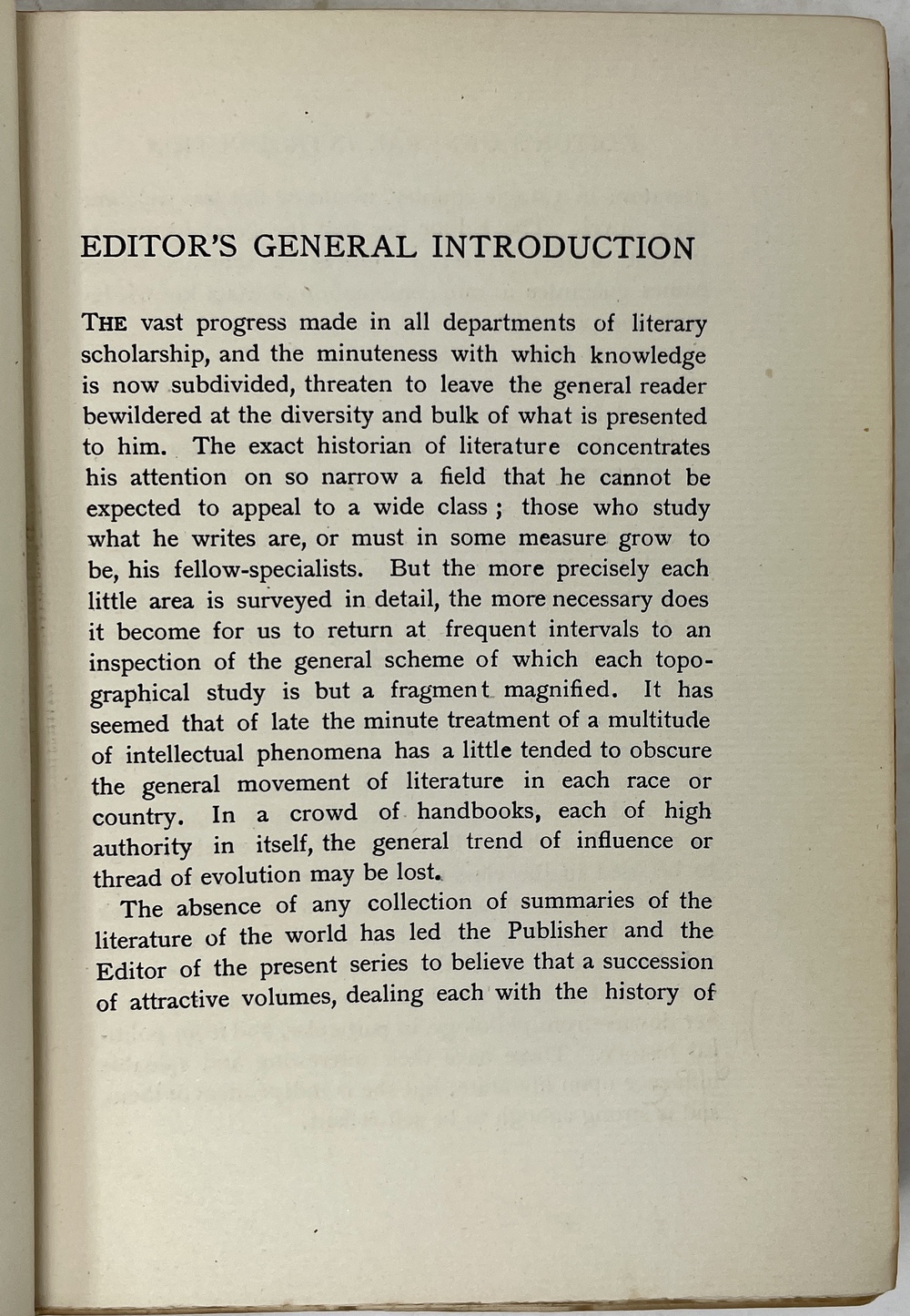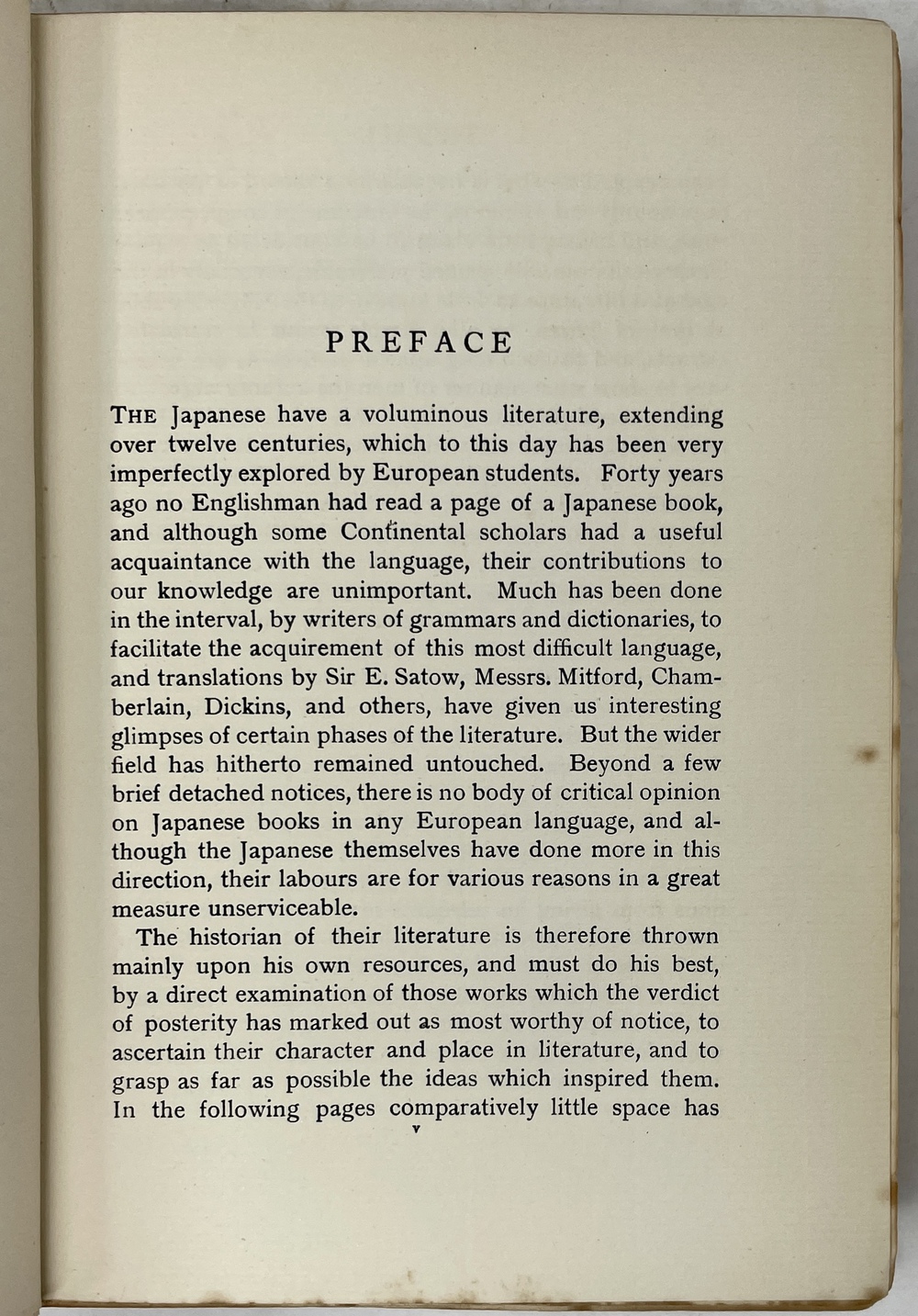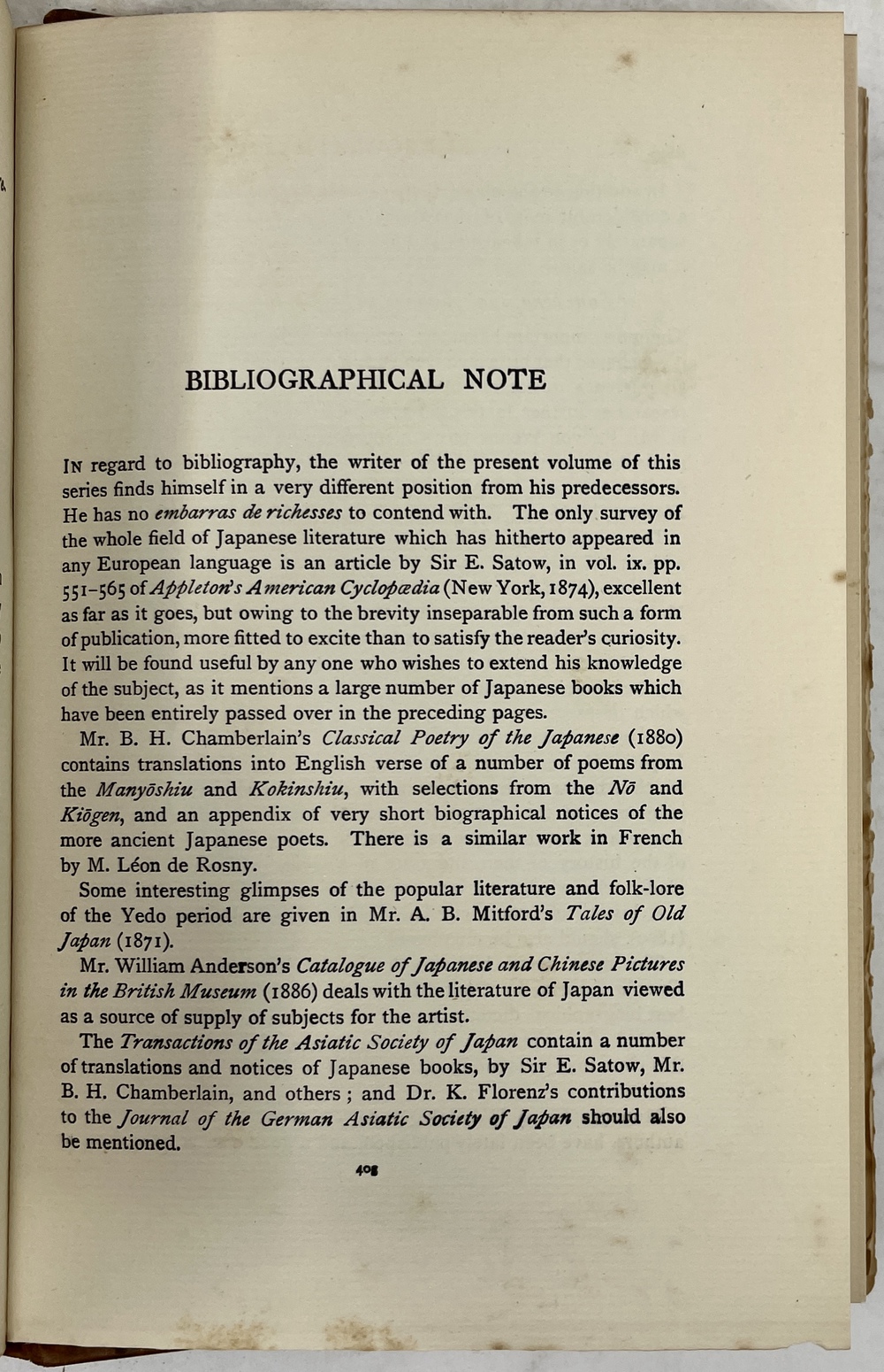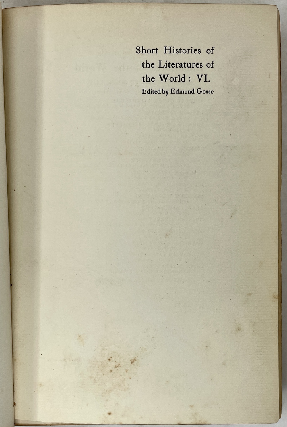 A History of JAPANESE LITERATURE. ((Short Histories of the Literatures of the Wrold: Vi. Edited by Edmund Gosse).