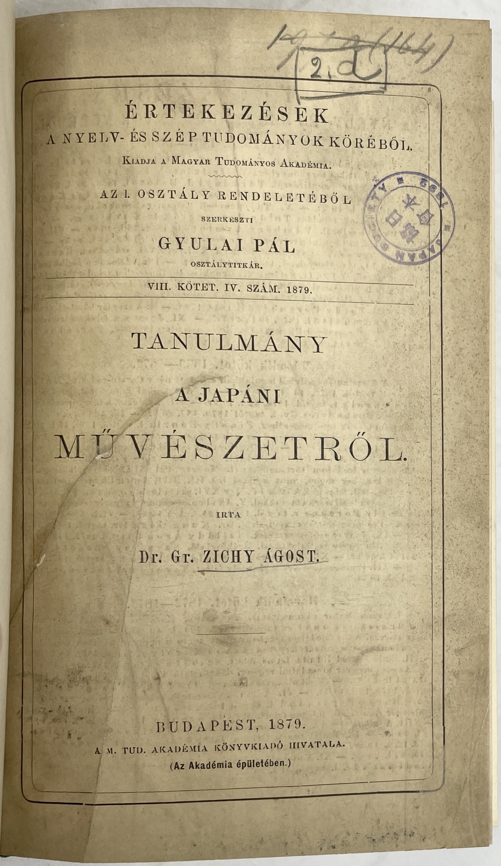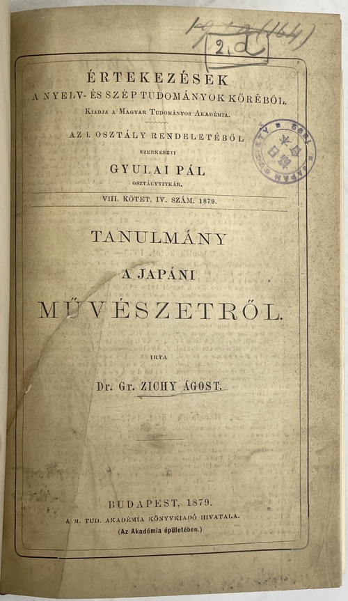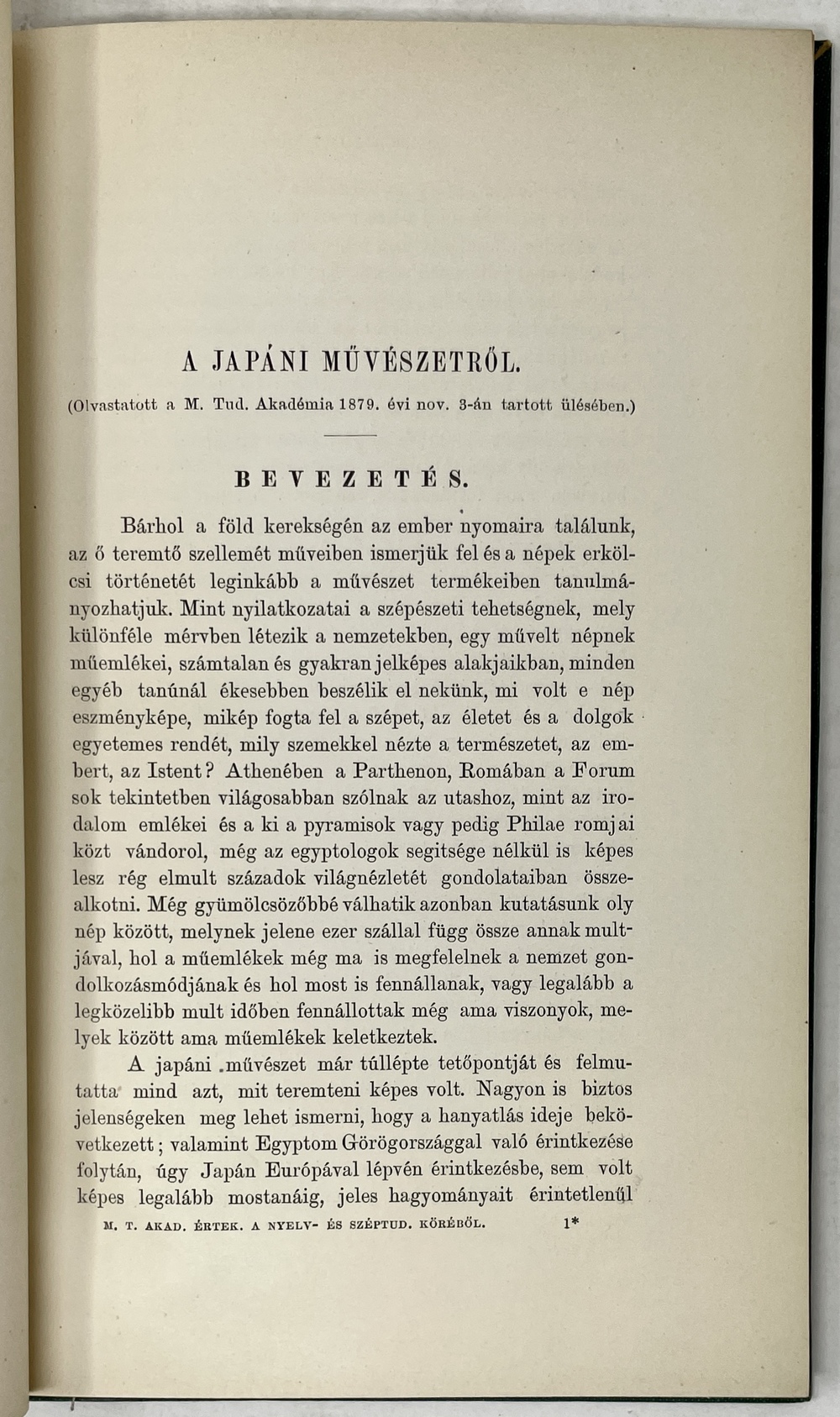 TANULMÁNY A JAPÁNI MÜVESZETRÖL. (ÉPITÉSZET, SZOBRÁT, FESTÉSZET.)…Tizenhét képpel és egy térképpel. (ÉRTEKEZÉSEK A NYELV- ÉS SZÉP TUDOMÁNYOK KÖRÉBÖL. KIADJA A MAGYAR TUDOMÁNYOS AKADÉMIA.)