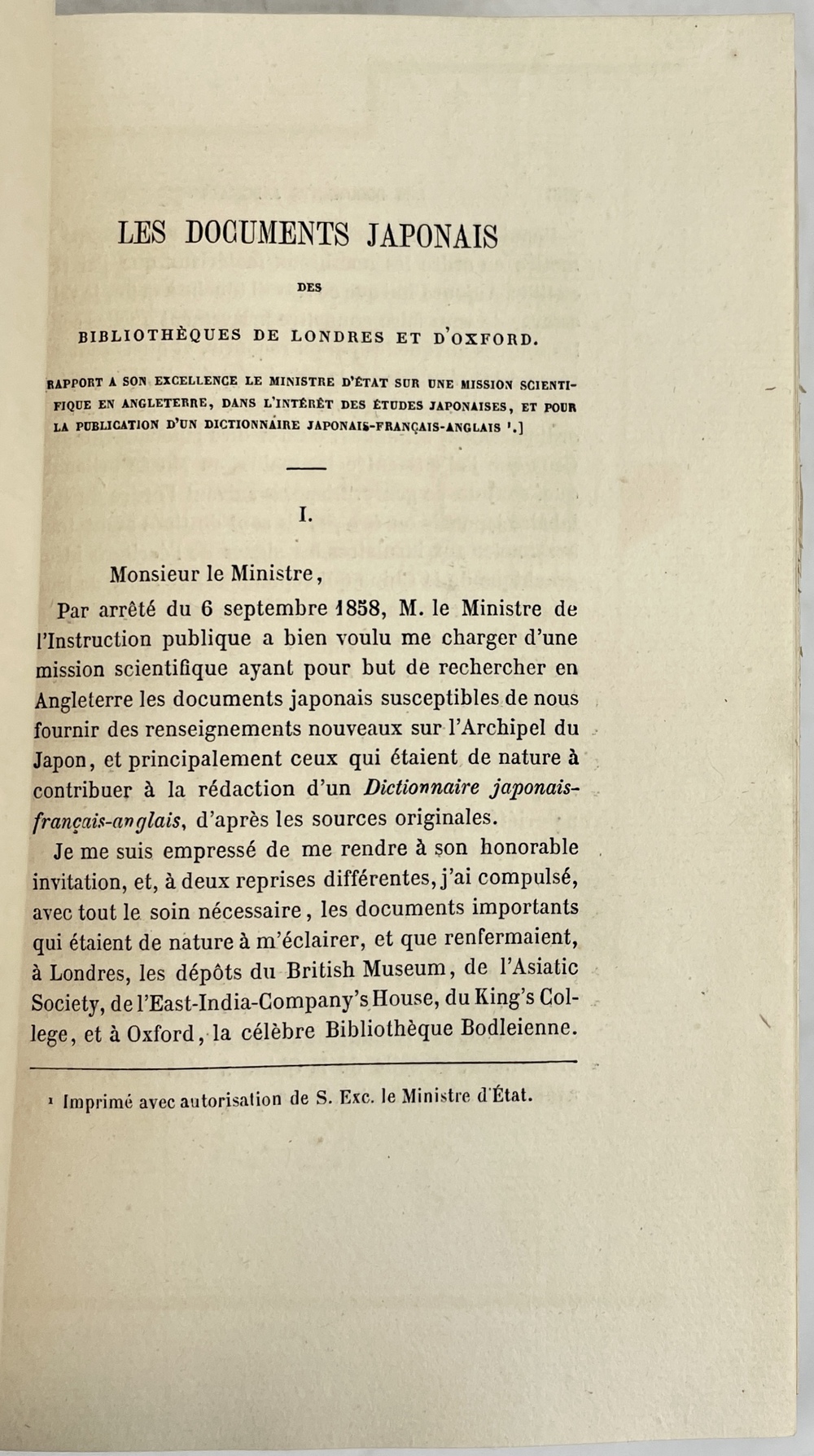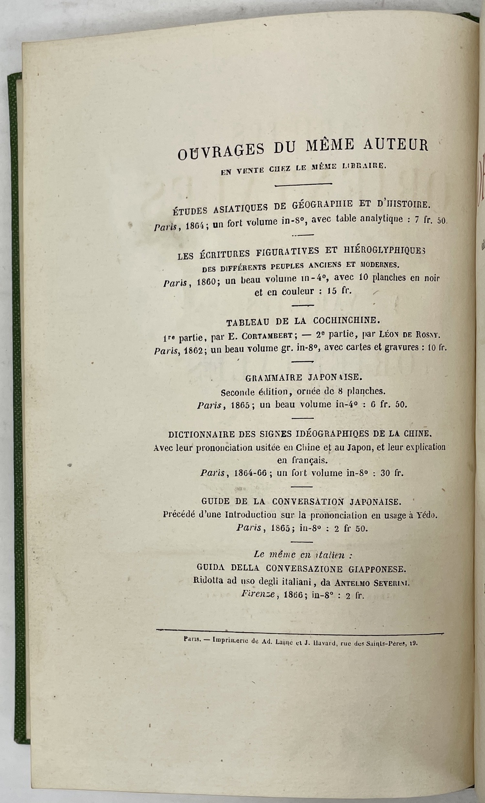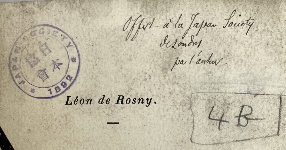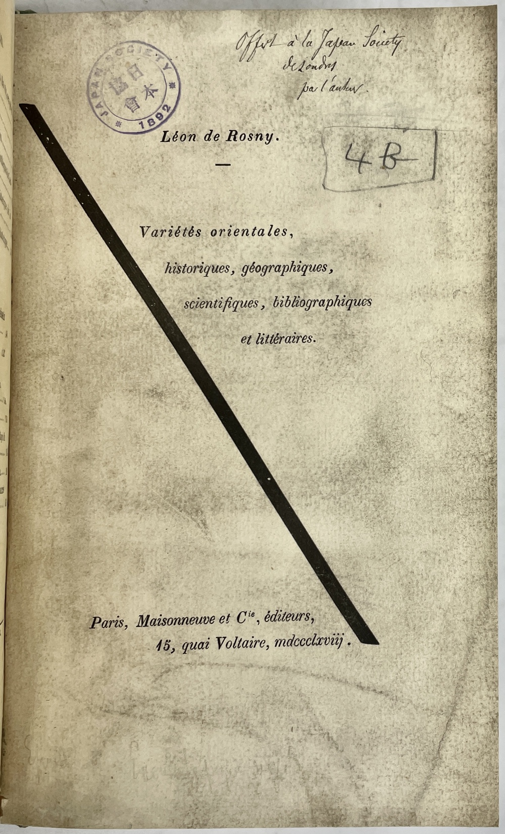 初版、著者からロンドン日本協会への贈呈本 1868年 パリ刊