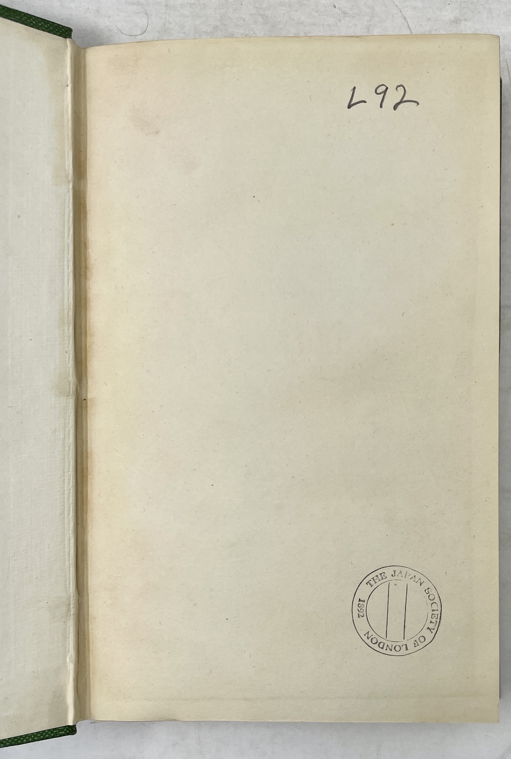 Later light green cloth bound by The Japan Society of London with the original front cover.