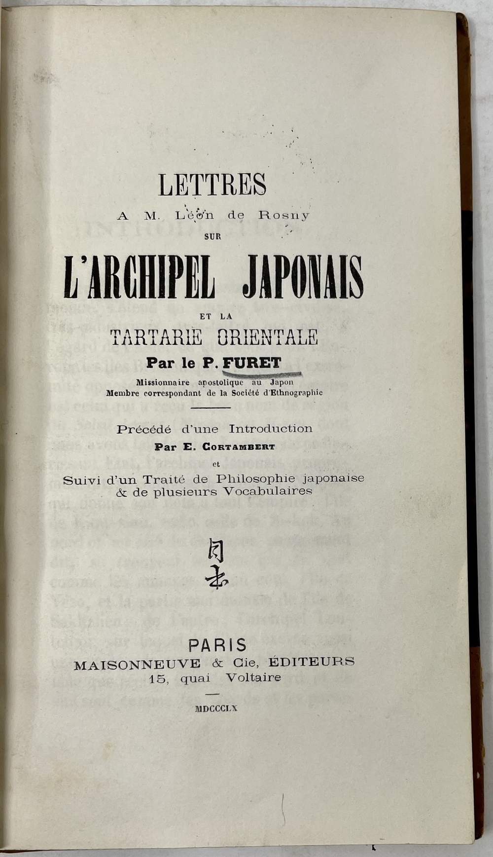 LETTRES A M. Léon de Rosny SUR L’ARCHIPEL JAPONAIS ET LA TARTARIE ORIENTALE…Suivi d’un Traité de Philosophie japonaise & de plusieurs Vocabulaires.