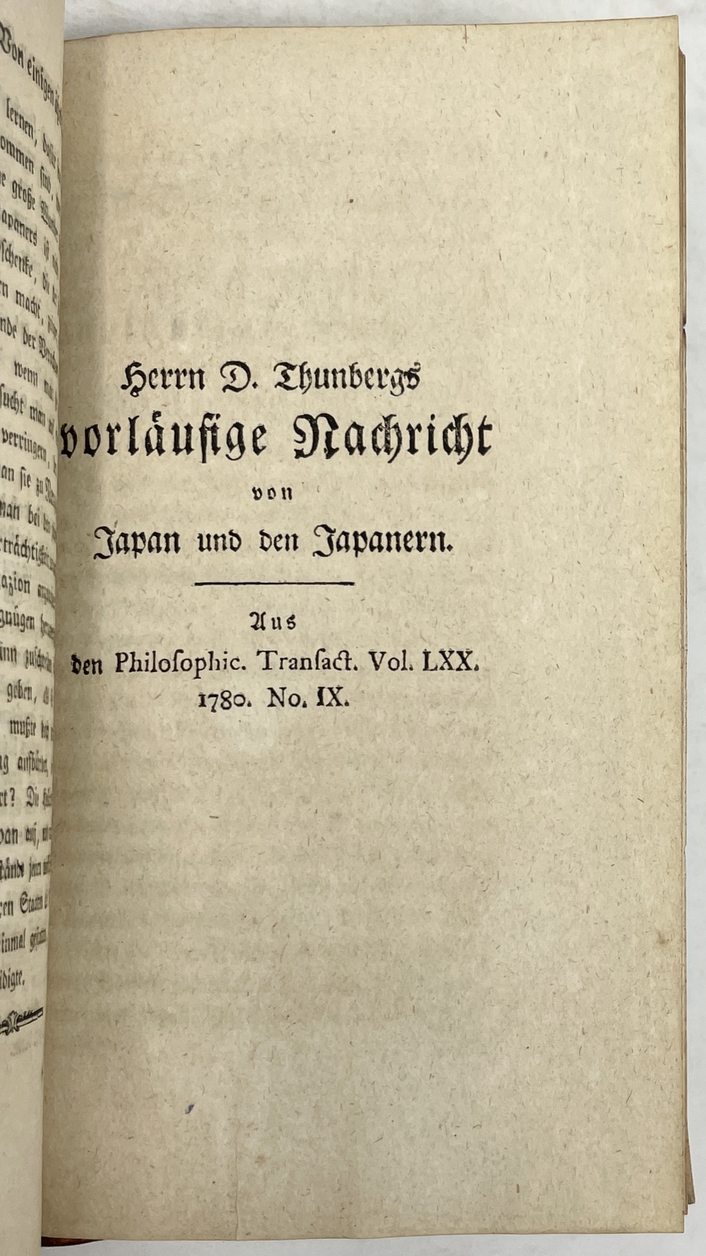 『日本及び日本の人々に関する費用的、哲学的考察』ドイツ語訳版(ツンベルクによるイギリス王立協会における1780年2月講演録のドイツ語訳版付属)