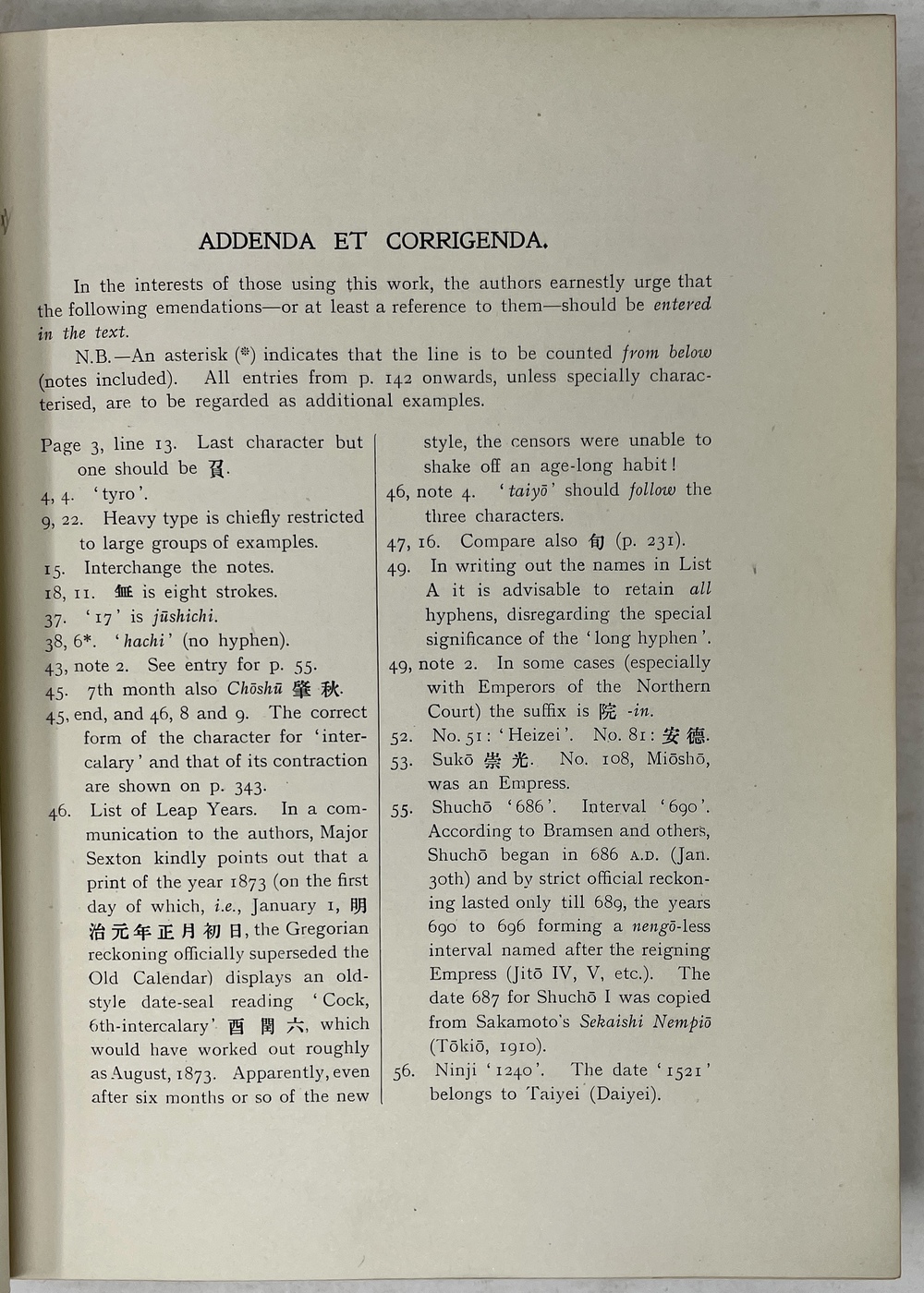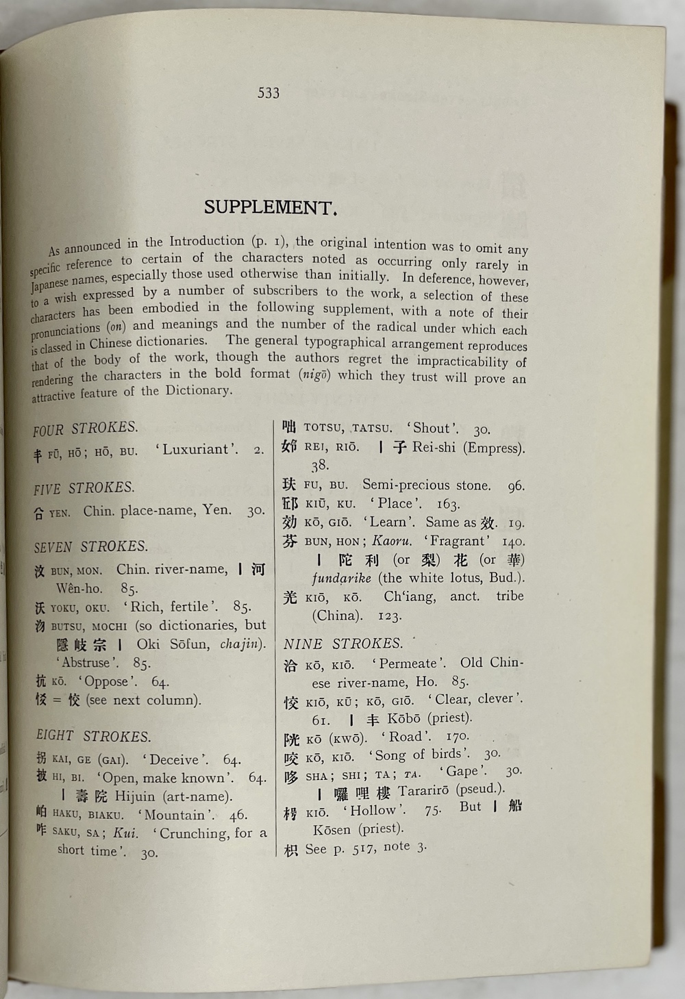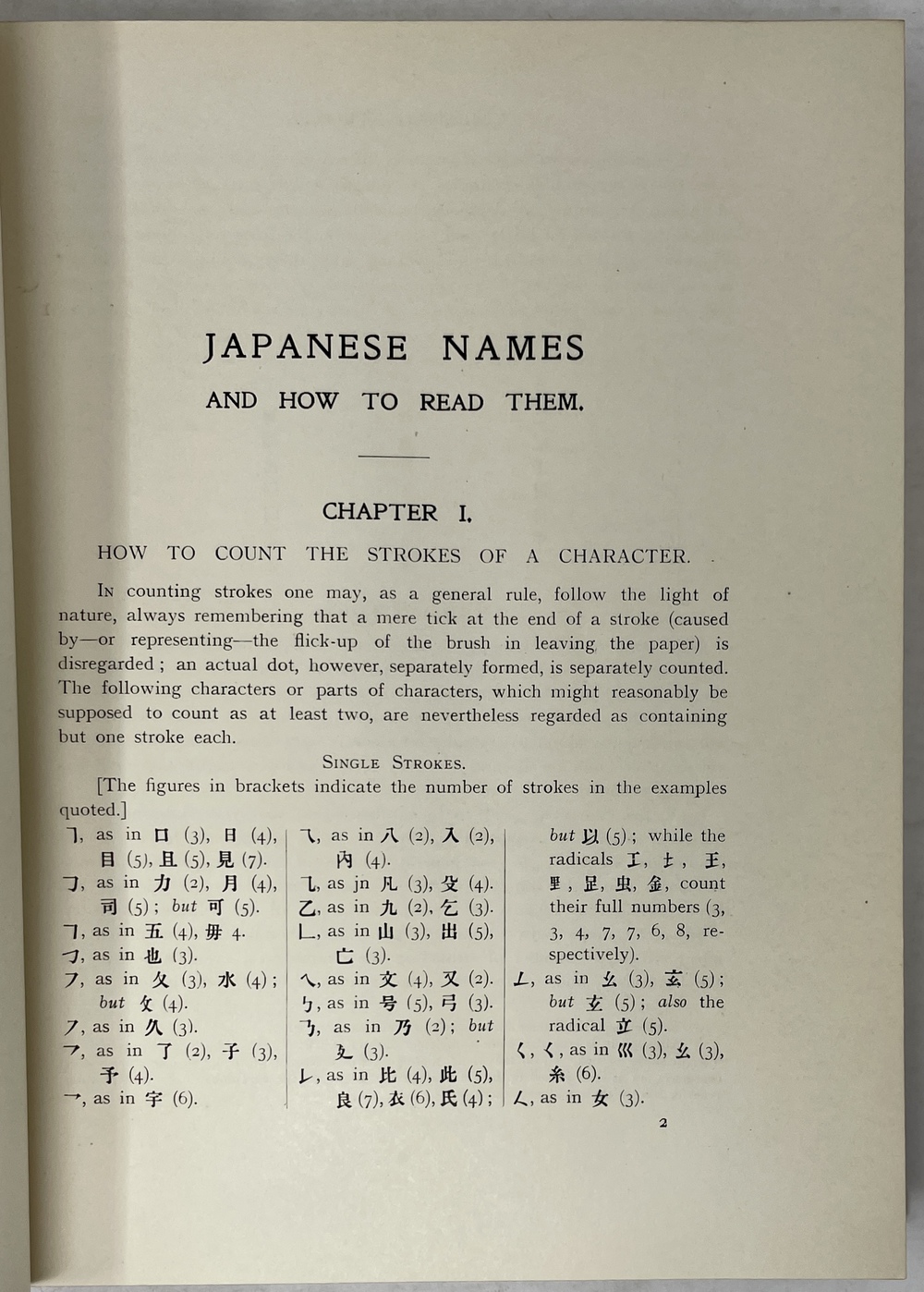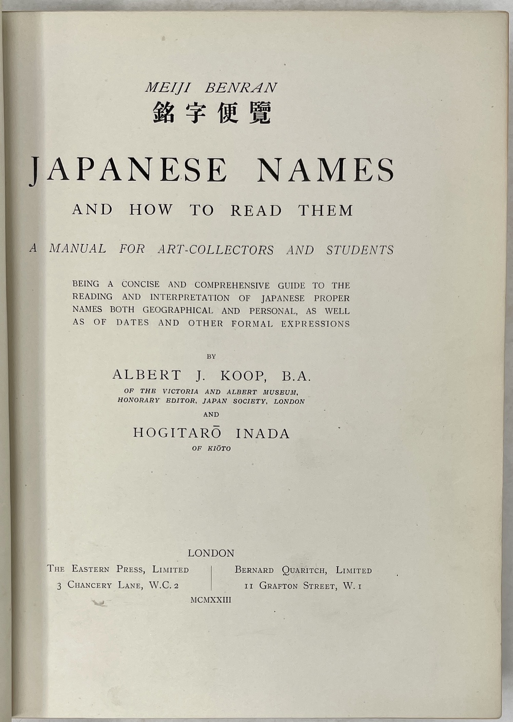 MEIJI BENRAN: JAPANESE NAMES AND HOW TO READ THEM. A MANUAL FOR ART-COLLECTORS AND STUDENTS. BEING A CONCISE AND COMPREHENSIVE GUIDE TO THE READING AND INTERPRETATION OF JAPANESE PROPER NAMES BOTH GEOGRAPHICAL AND PERSONAL, ...