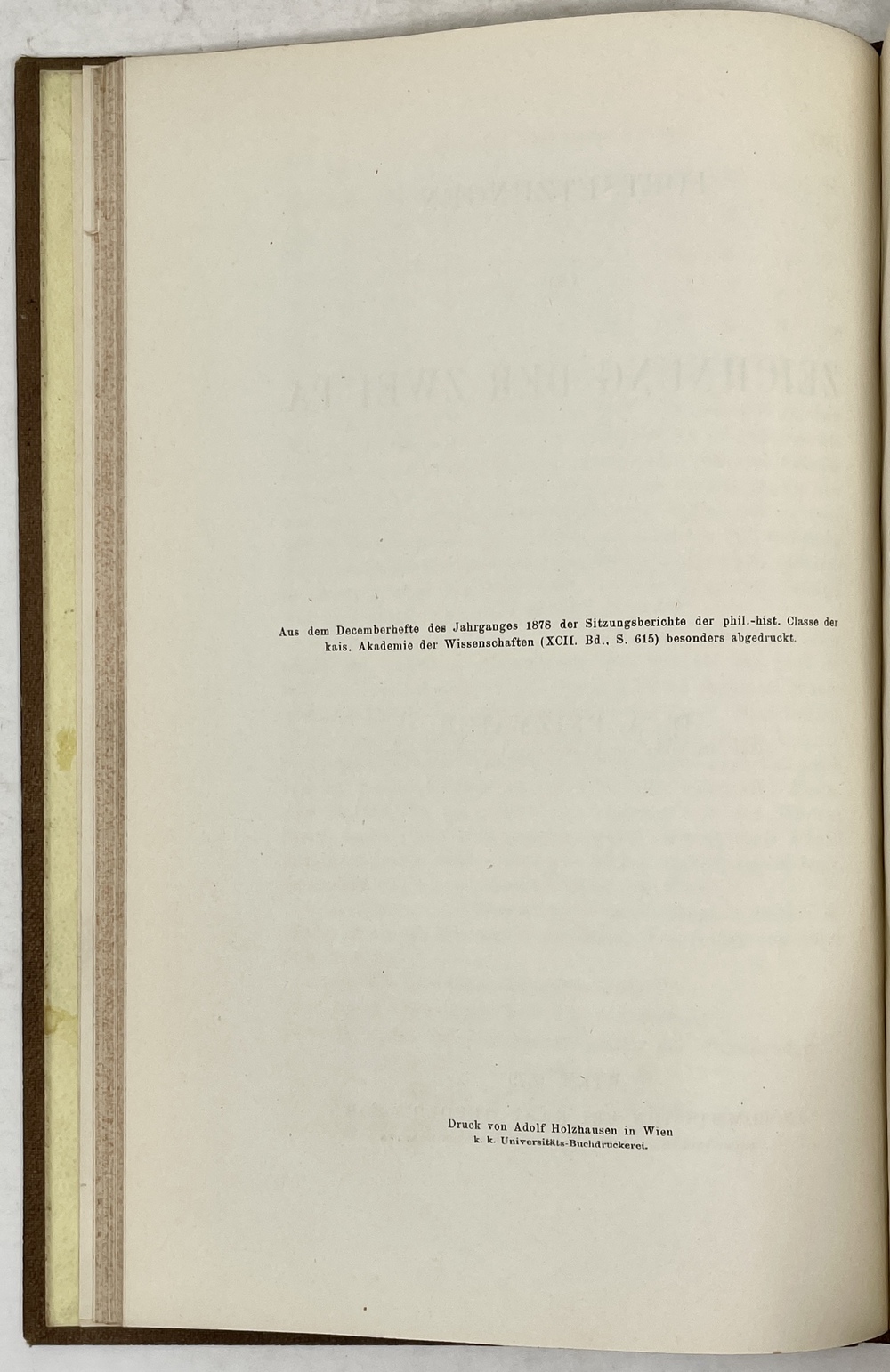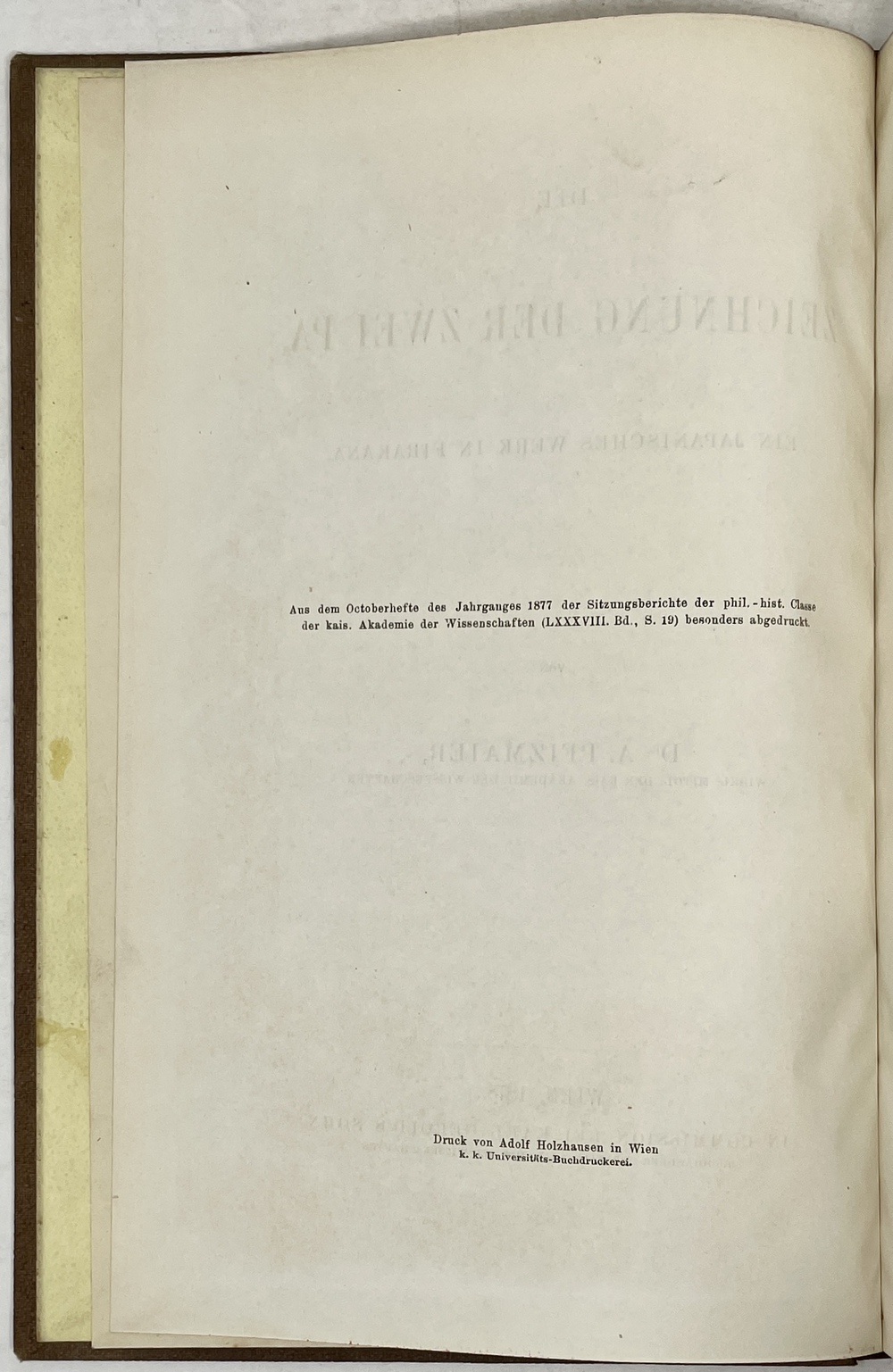 Extracted from Stizungsberichte der Phil. - hist. Classe der Kais. Akadamie der Wissenschaften, LXXXVIII, XCII), Exlibris Ernest Mason Satow (British Legation YEDO) / The Japan Society of London.