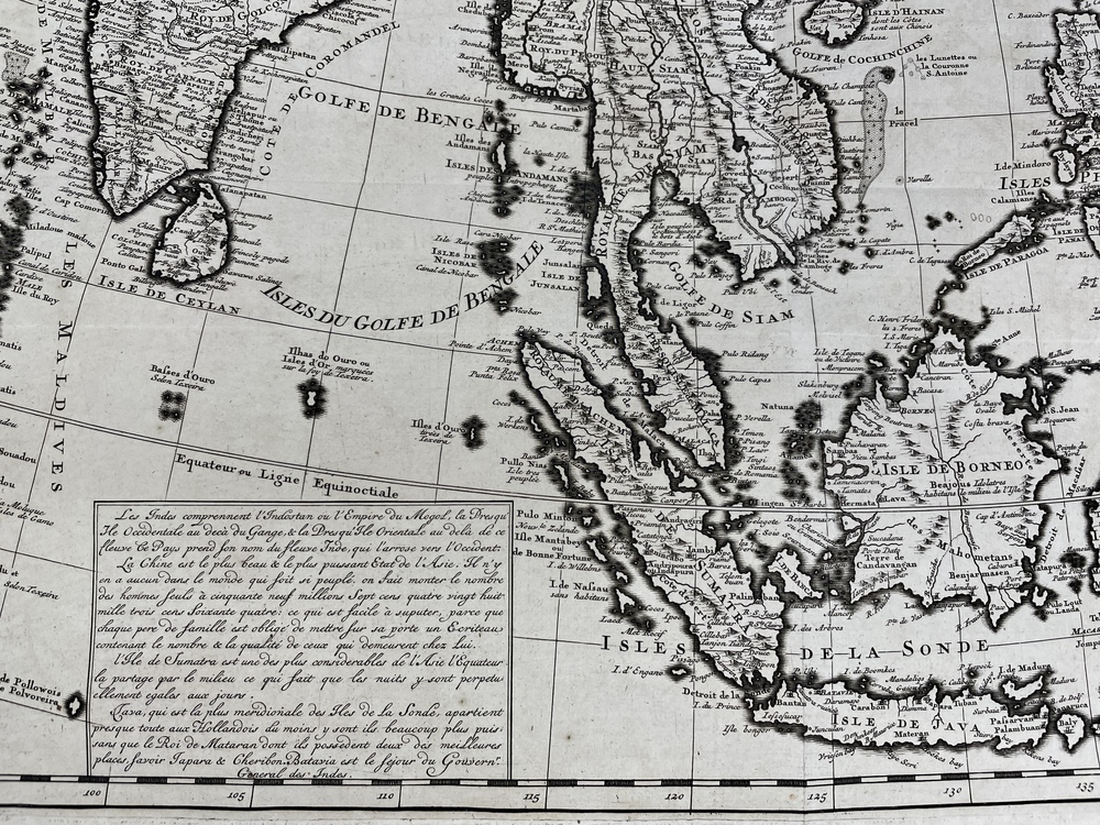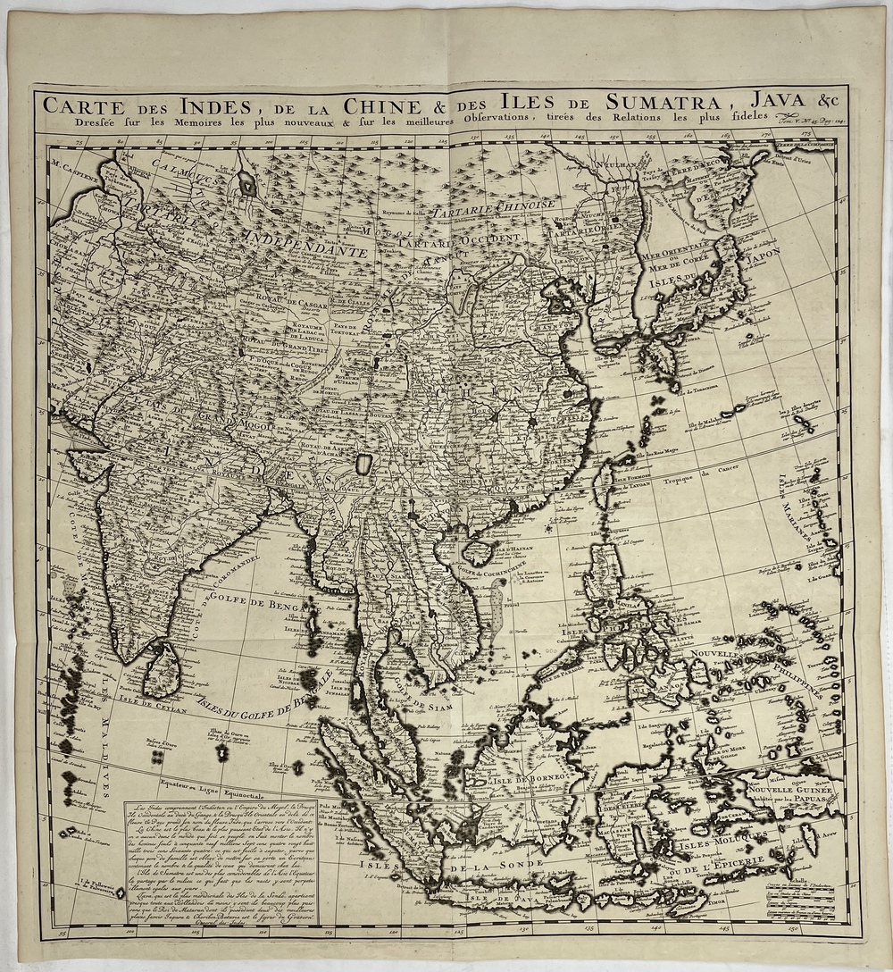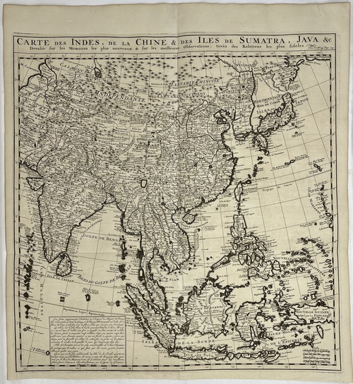CARTE DES INDES, DE LA CHINE & DES ILES DE SUMATRA, JAVA &c Dresée sur les Memoires les plus nouveaux & sur les meilleures Observations, tireés des Relations les plus fideles.