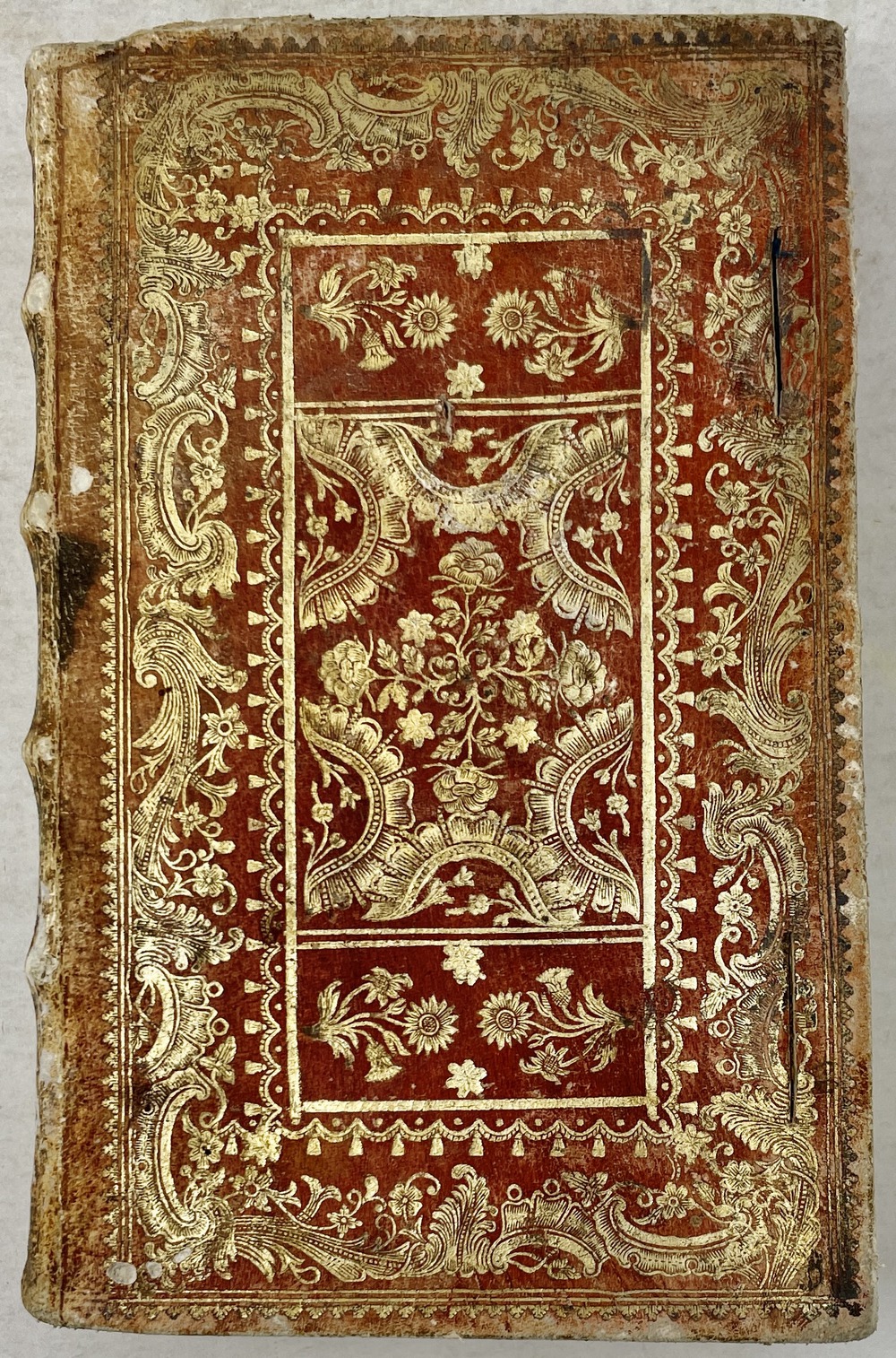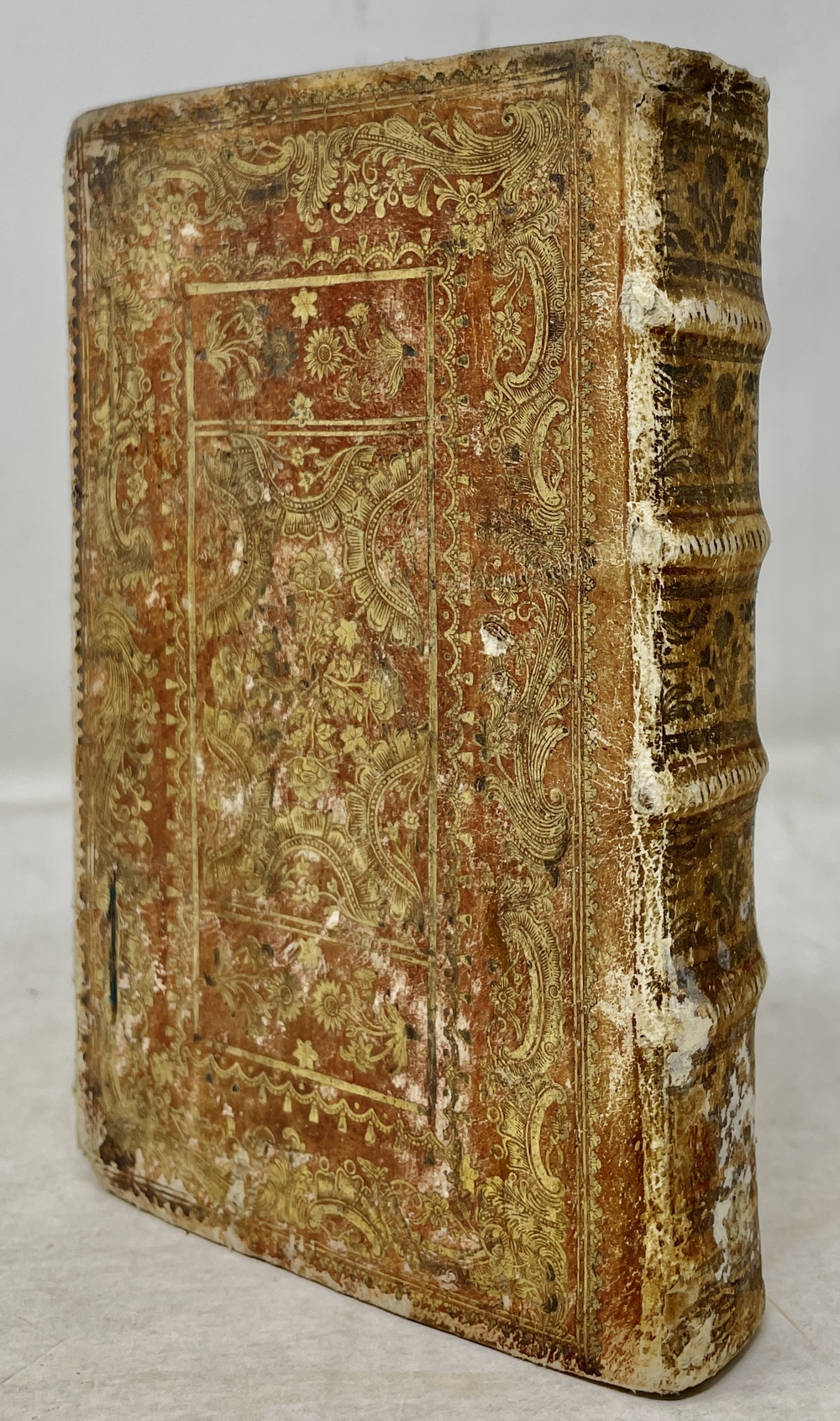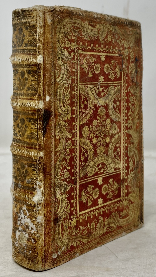 タイトルページに旧蔵機関による押印がり、装丁に擦れや傷みが見られるものの、概ね良好な状態で、小口は三方とも箔押し。[Sommervogel, Vol.VI, pp.1656(14-2)]