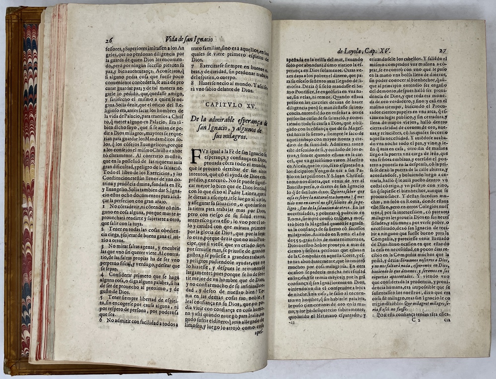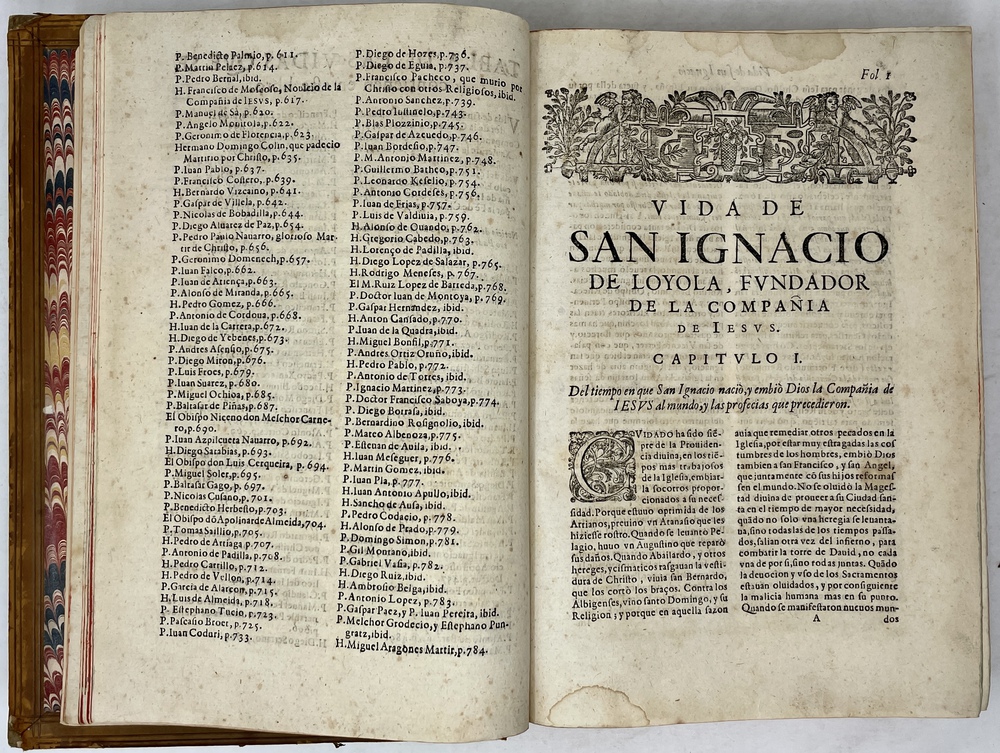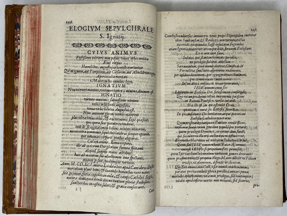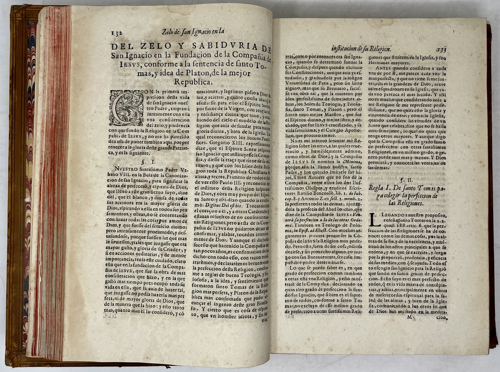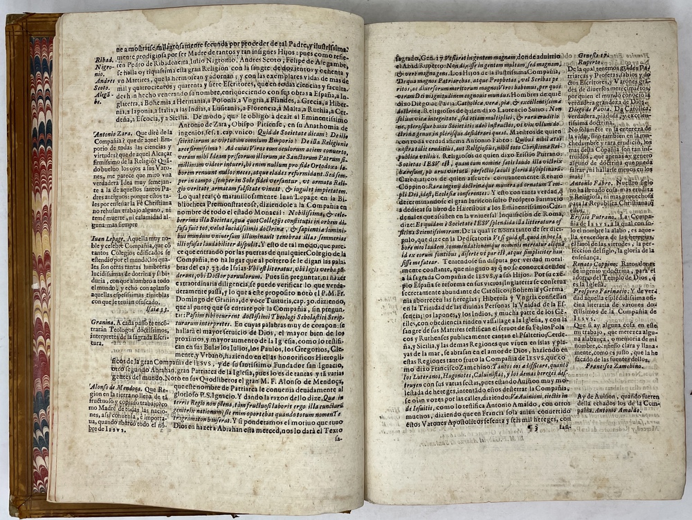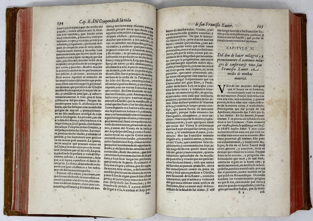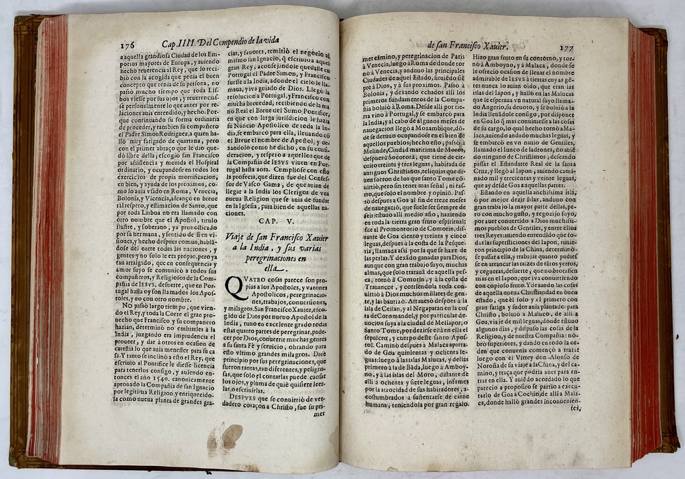 装丁のヒンジ部分に補修(それほど秀逸でない)跡あるが、本体の状態は概ね良好な状態。小口は三方とも朱染。見返しに旧蔵者の蔵書票あり。 [Laures: 1645-1-438-297] [Sommervogel, Vol. V: 1746] [Roldán-Figueroa (2021): 278]