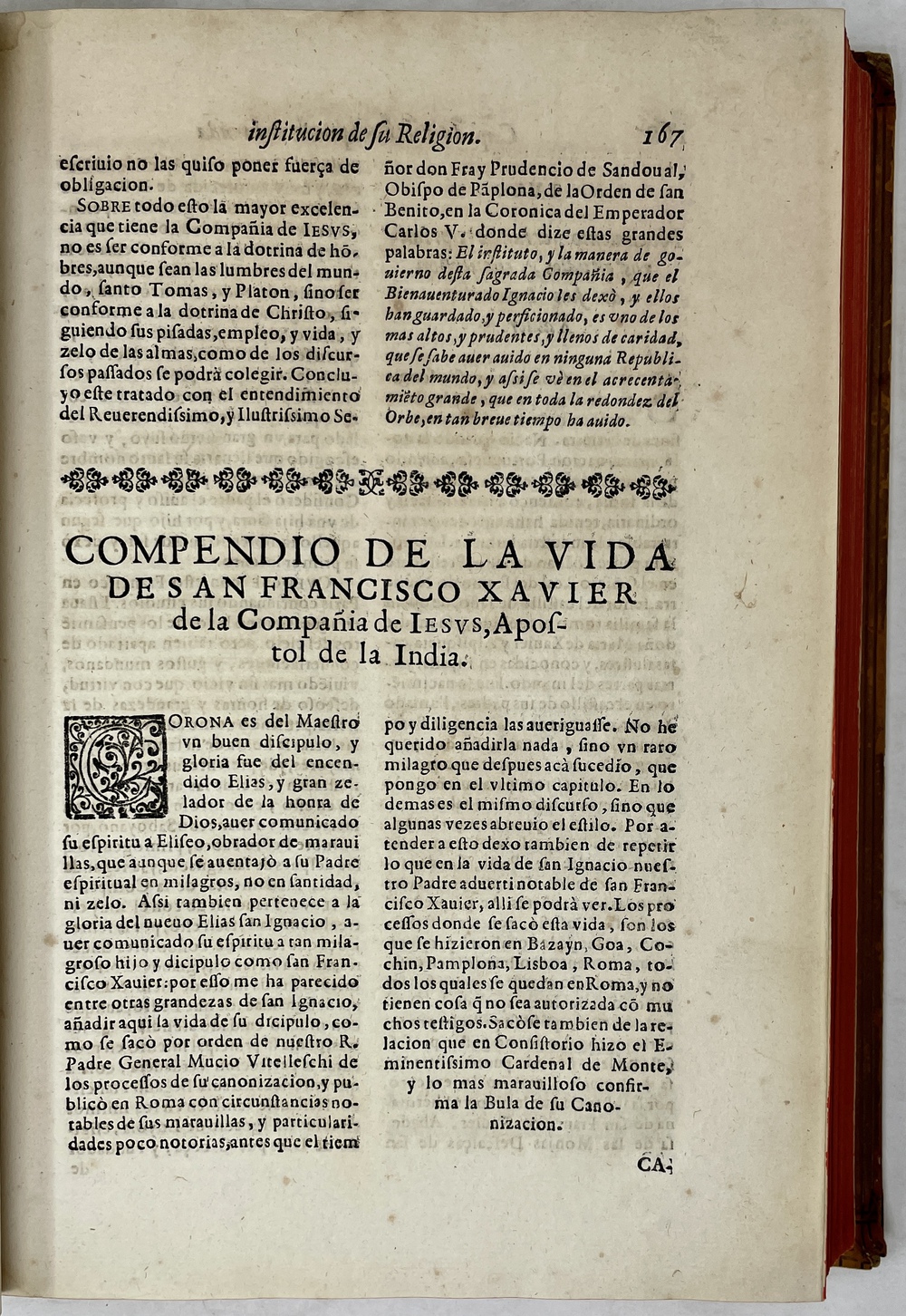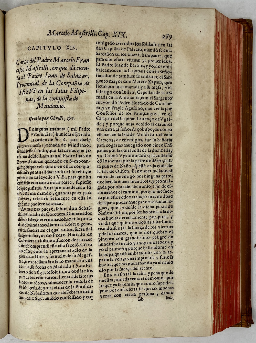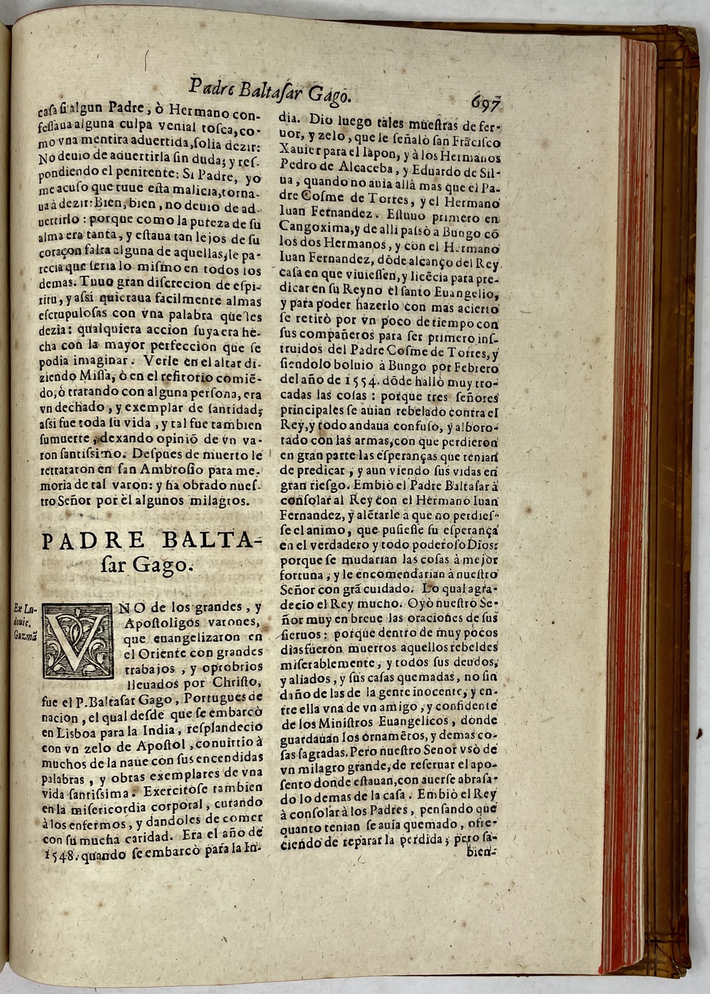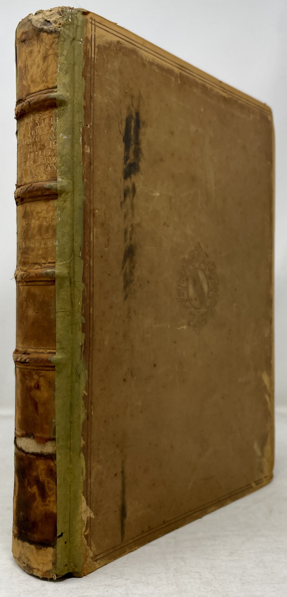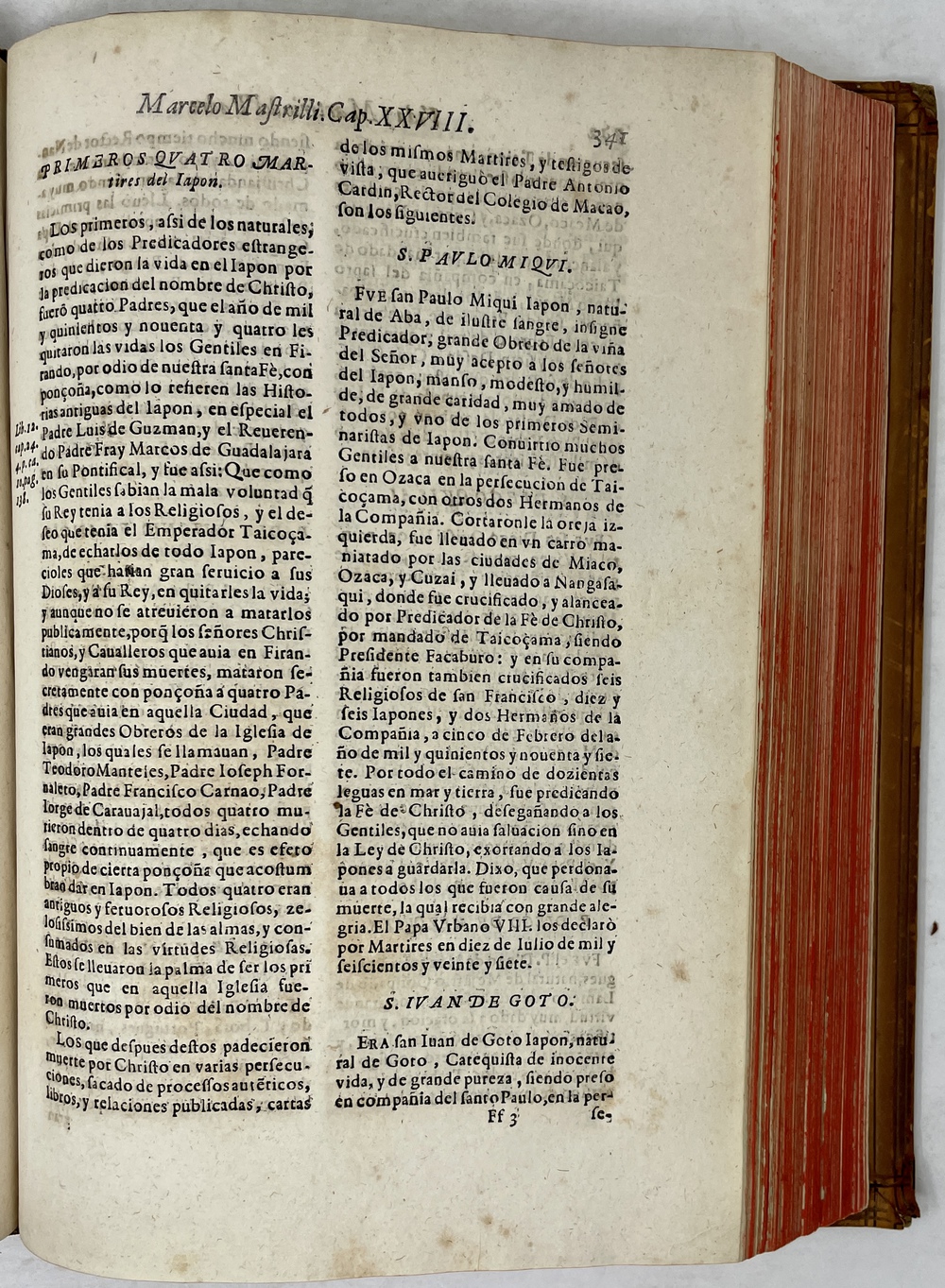 装丁のヒンジ部分に補修(それほど秀逸でない)跡あるが、本体の状態は概ね良好な状態。小口は三方とも朱染。見返しに旧蔵者の蔵書票あり。 [Laures: 1645-1-438-297] [Sommervogel, Vol. V: 1746] [Roldán-Figueroa (2021): 278]