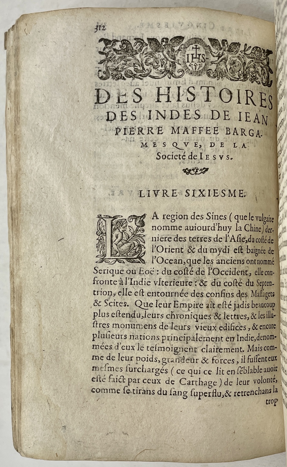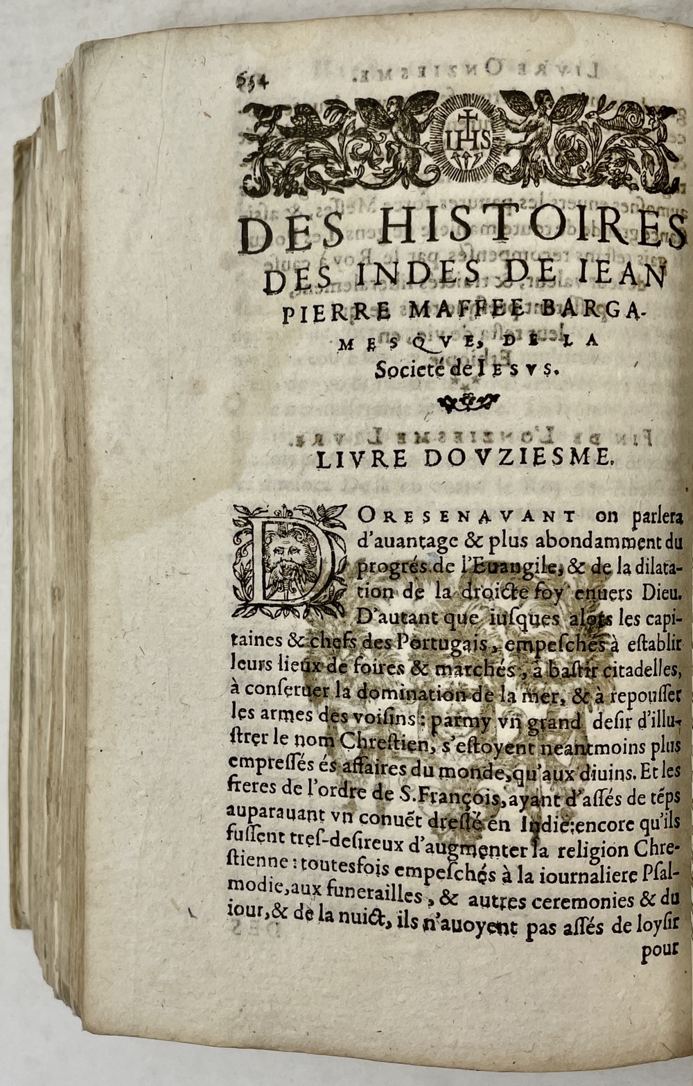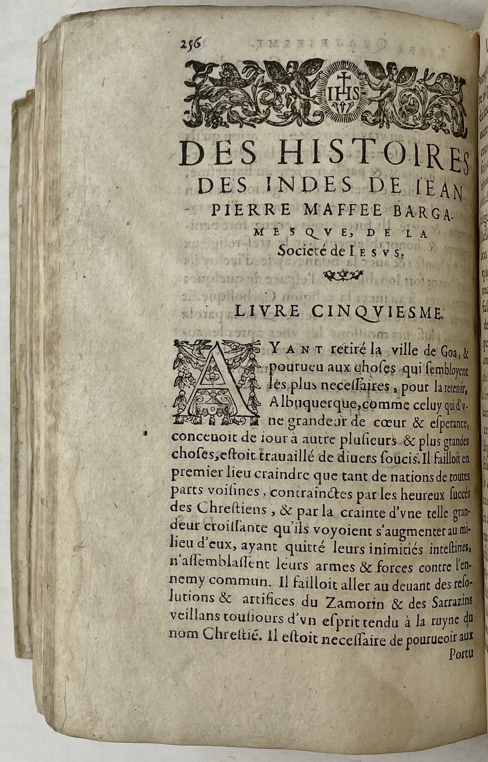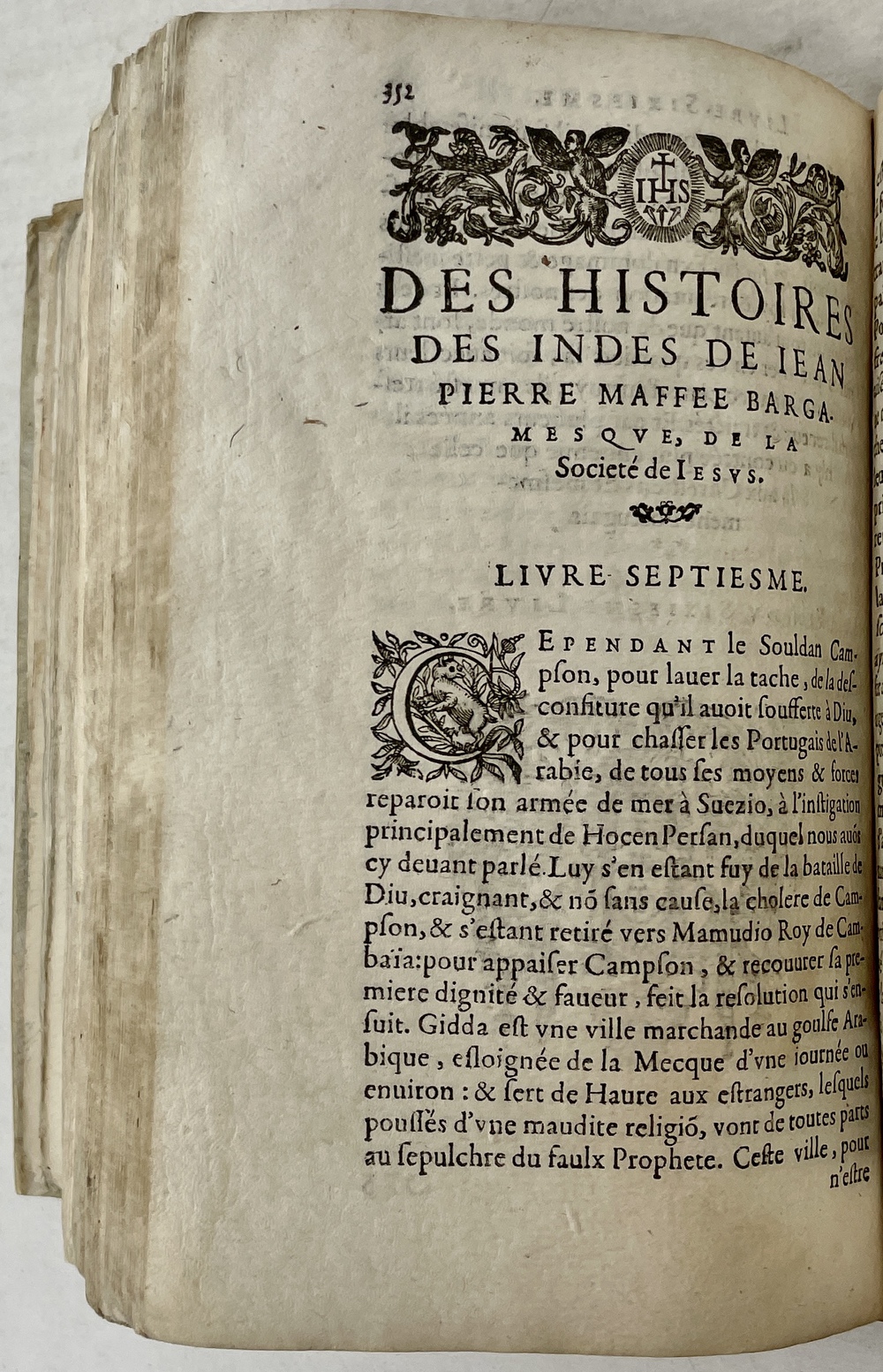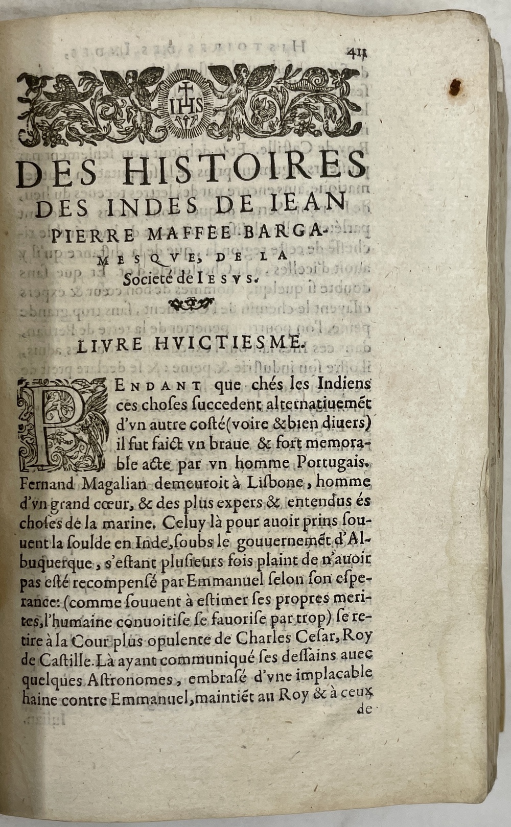 HISTOIRES DES INDES,DE IEAN PIERRE MAFFEE BERGAMESQVE,... Où est traicté de leur descouuerte, nauigation, & conqueste faicte tant par les Portugais que Castillans. Ensemble de leurs mœurs, ceremonies, loix, gouuernemens, & reduction à la Foy Catholique.