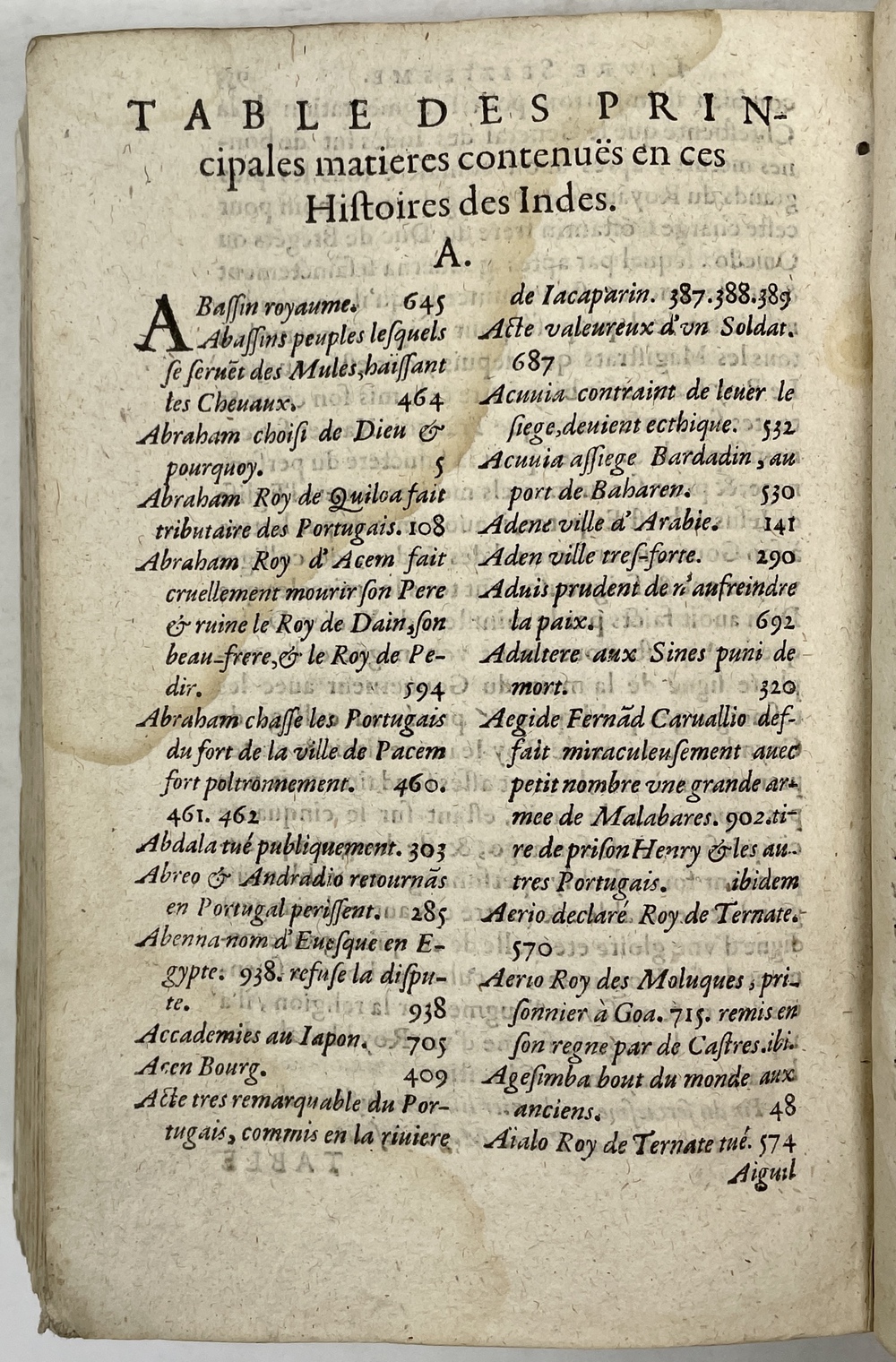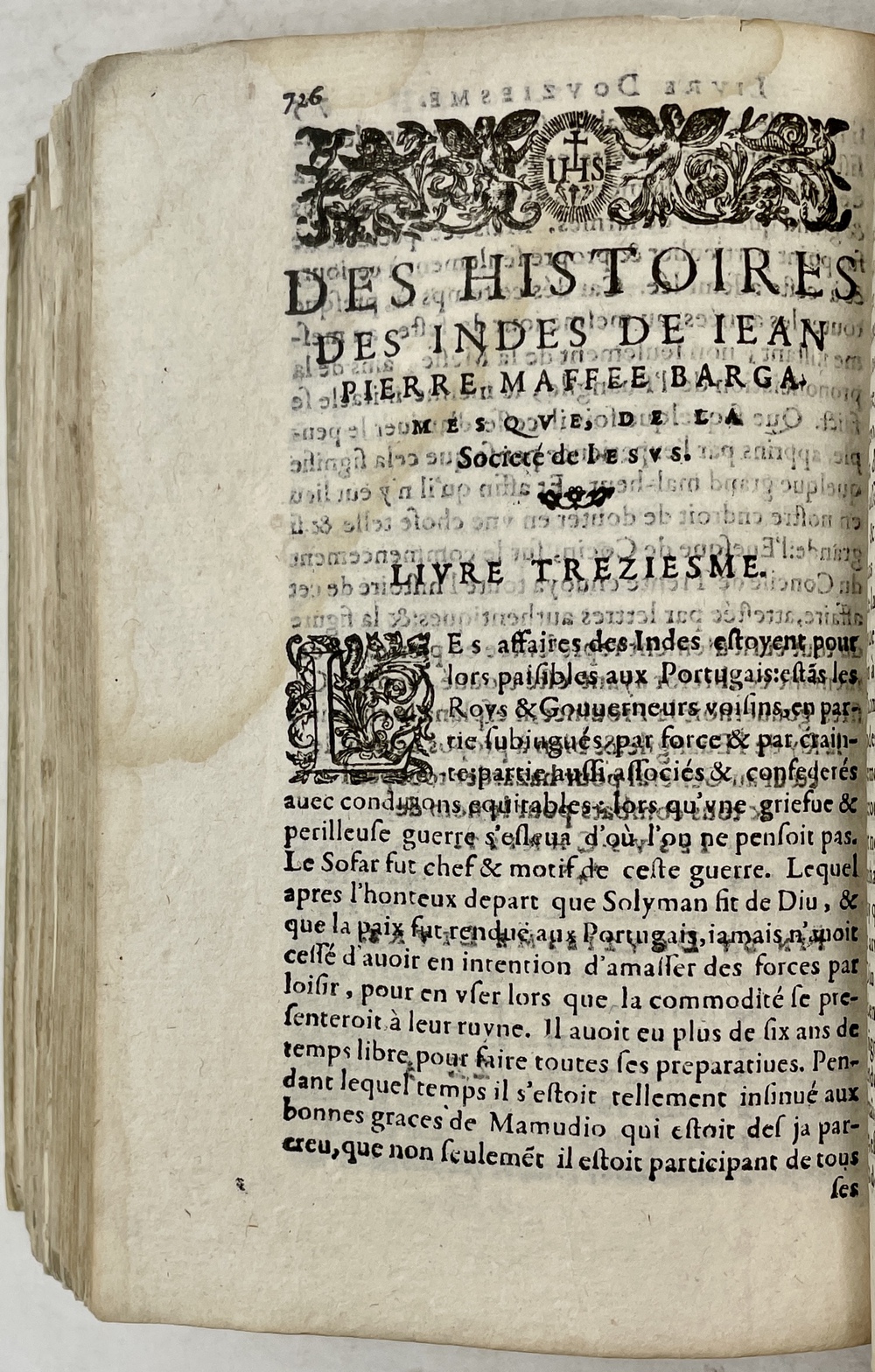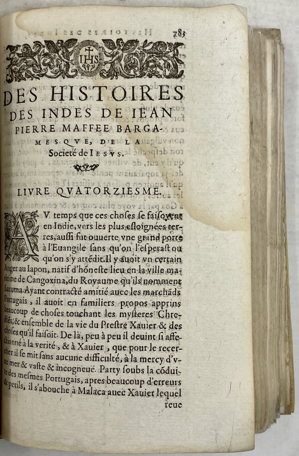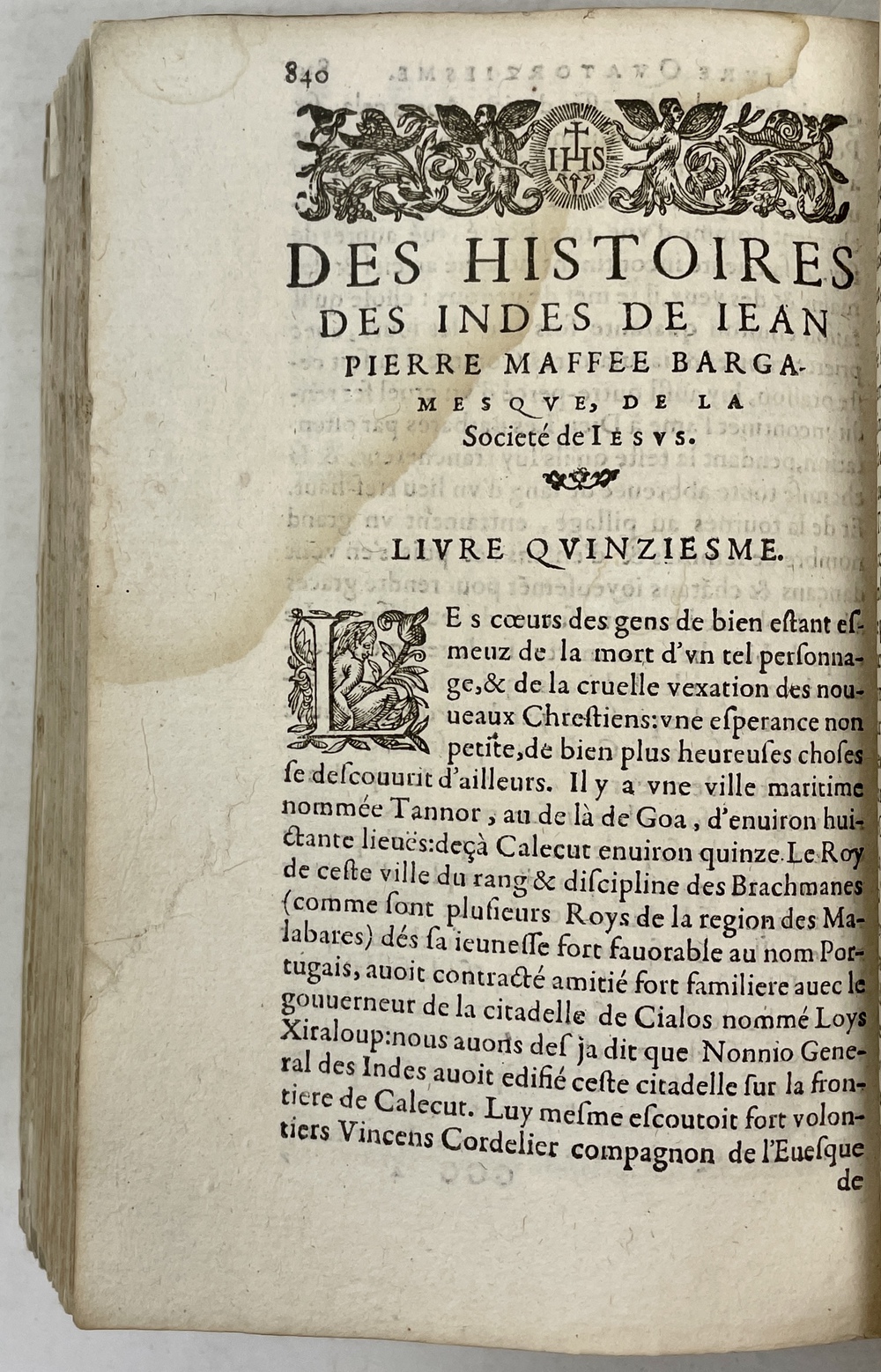 HISTOIRES DES INDES,DE IEAN PIERRE MAFFEE BERGAMESQVE,... Où est traicté de leur descouuerte, nauigation, & conqueste faicte tant par les Portugais que Castillans. Ensemble de leurs mœurs, ceremonies, loix, gouuernemens, & reduction à la Foy Catholique.