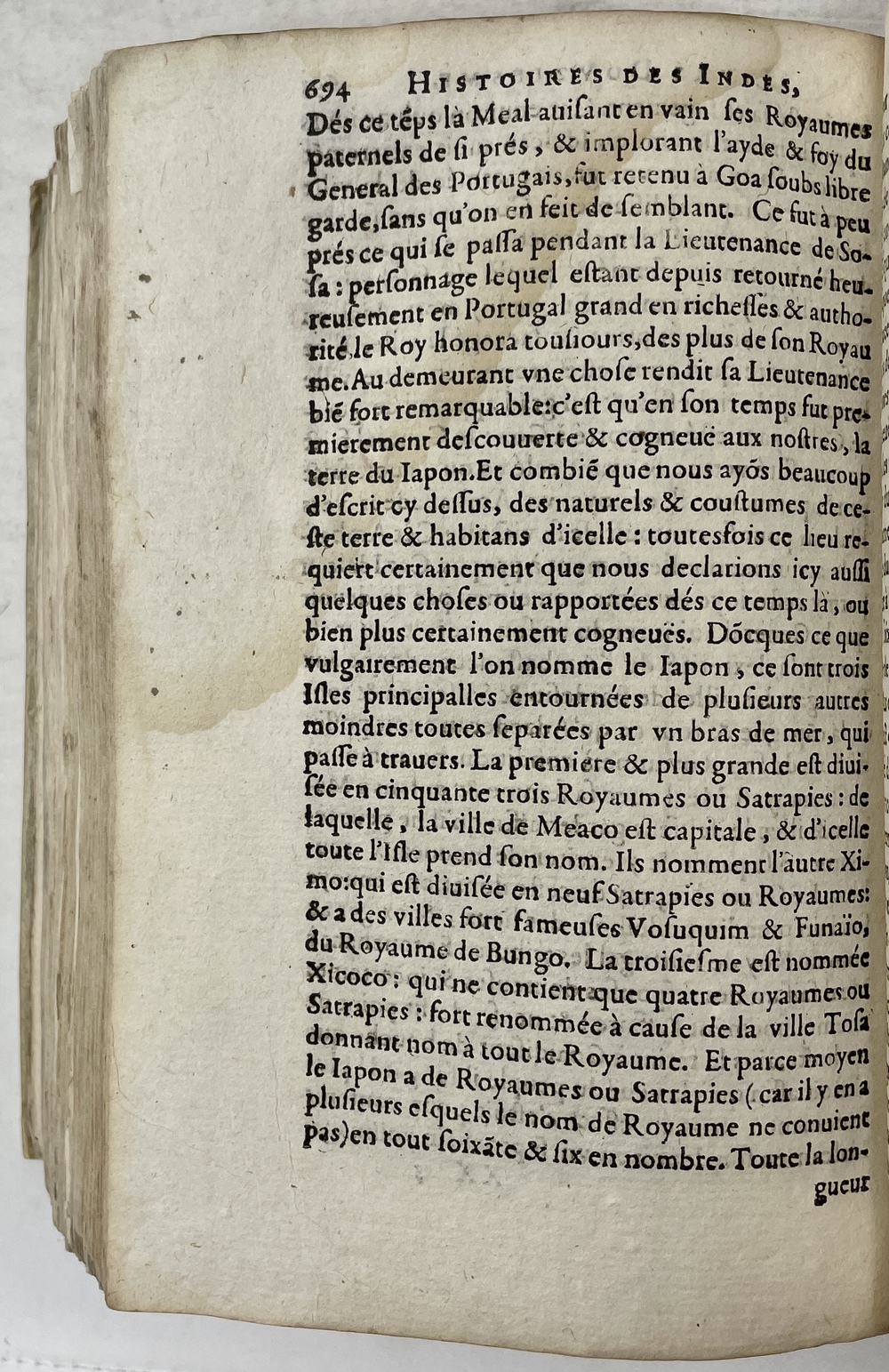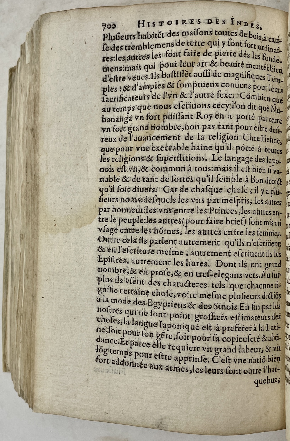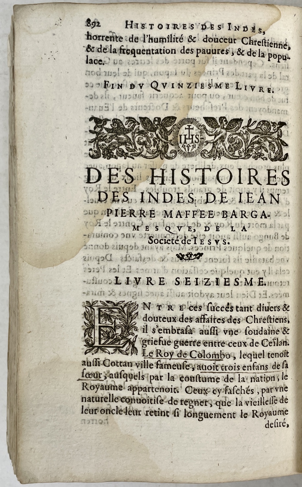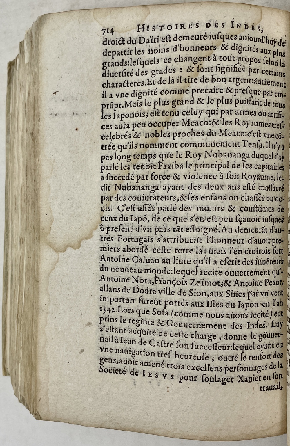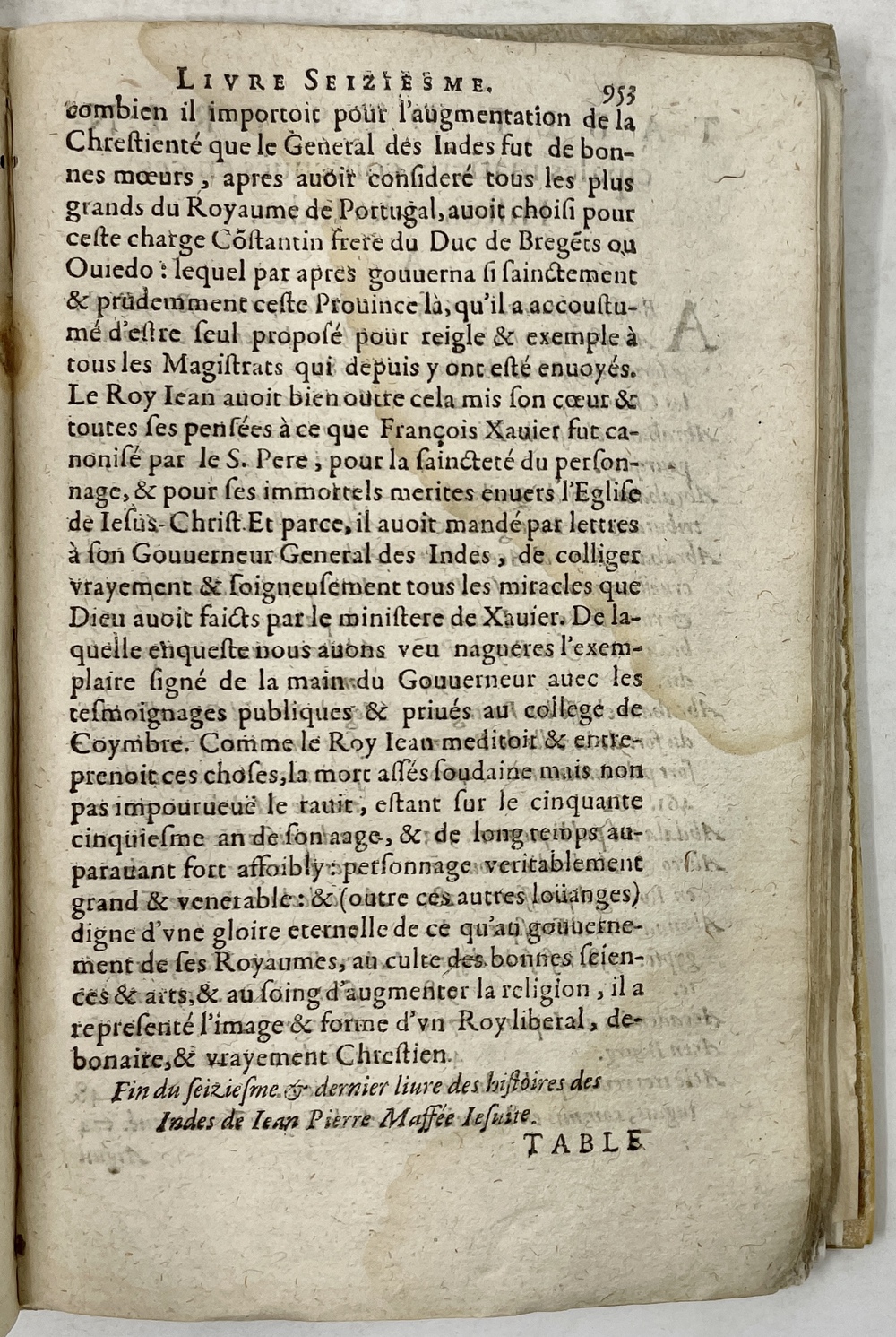 HISTOIRES DES INDES,DE IEAN PIERRE MAFFEE BERGAMESQVE,... Où est traicté de leur descouuerte, nauigation, & conqueste faicte tant par les Portugais que Castillans. Ensemble de leurs mœurs, ceremonies, loix, gouuernemens, & reduction à la Foy Catholique.