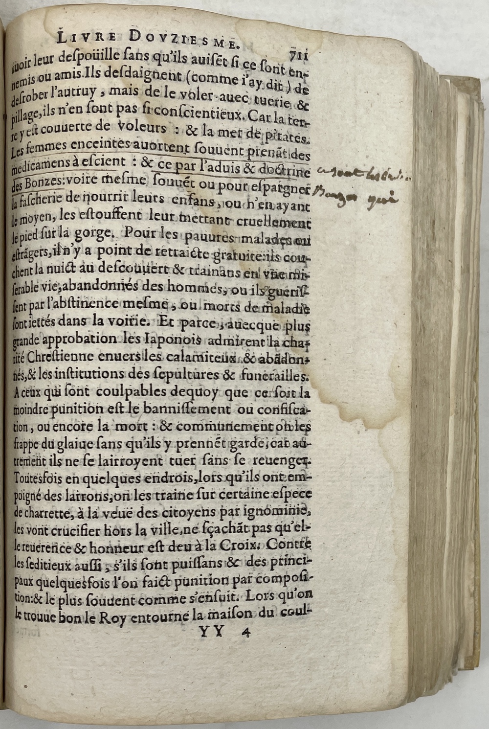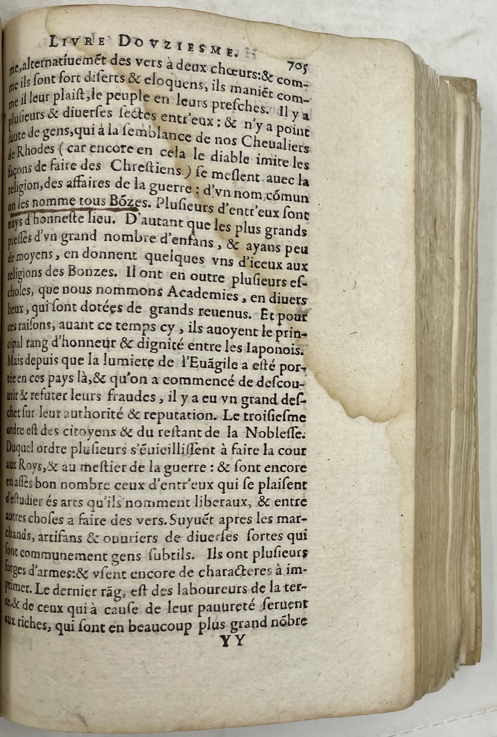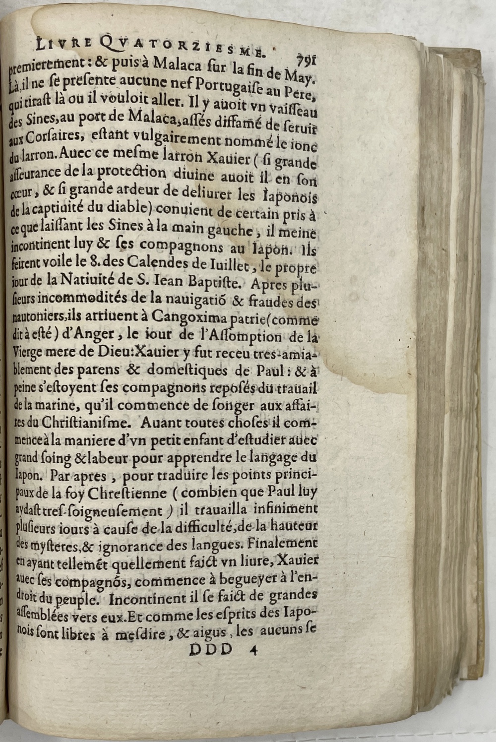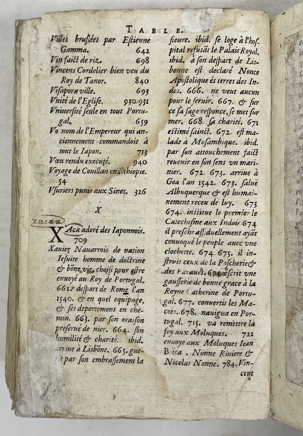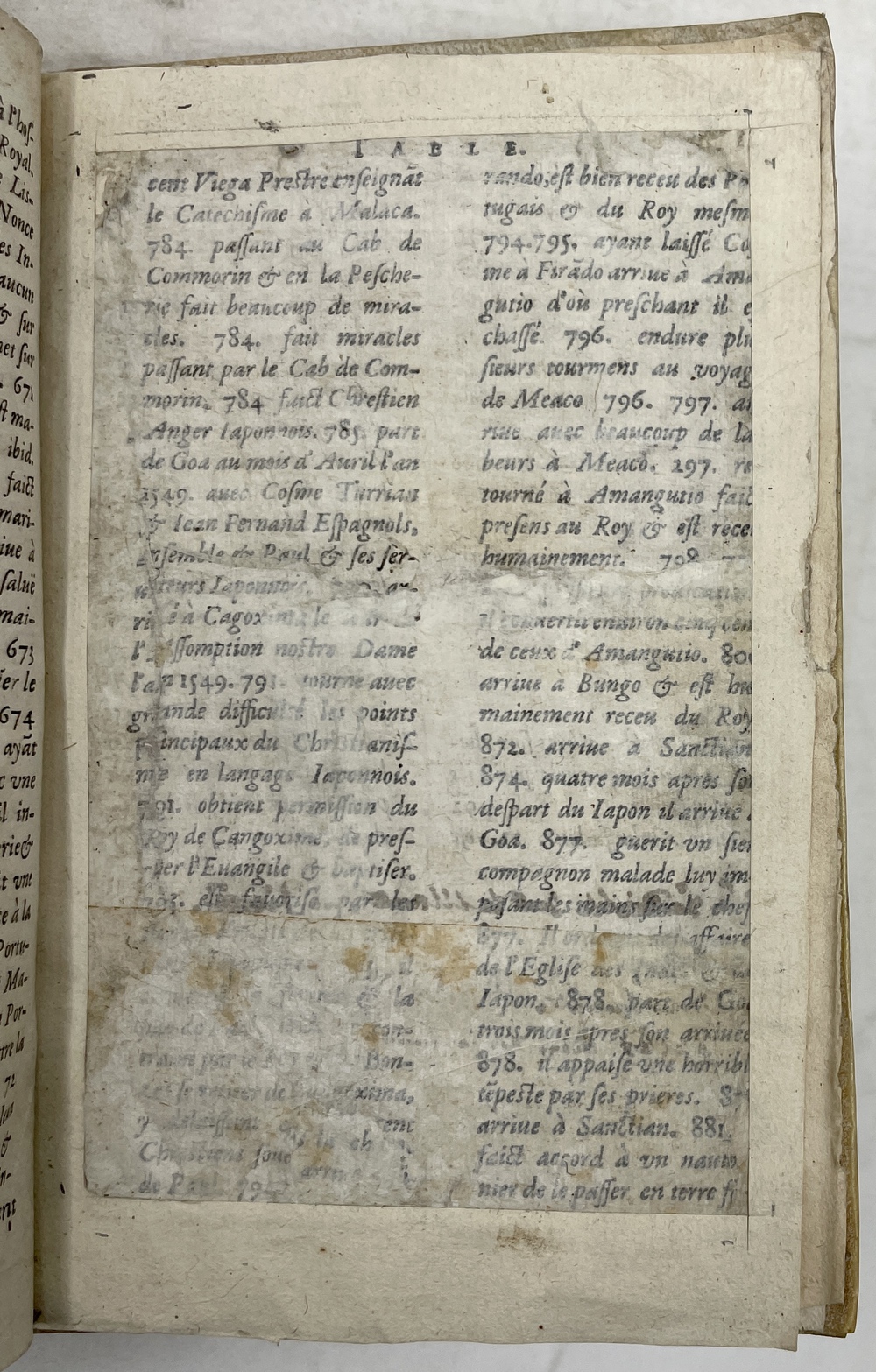 第1章は2葉(pp.5-8)が欠落しているが、刊行時からの落丁である可能性もあり。タイトルページ裏面、索引最終葉をはじめ、随所に補修跡、虫損が見られるが、テキスト判読に支障となる箇所なし。[Laures: JL-1603-11 (not possessed)] [Sommervogel: Vol. V-299 (1604 ed. )]