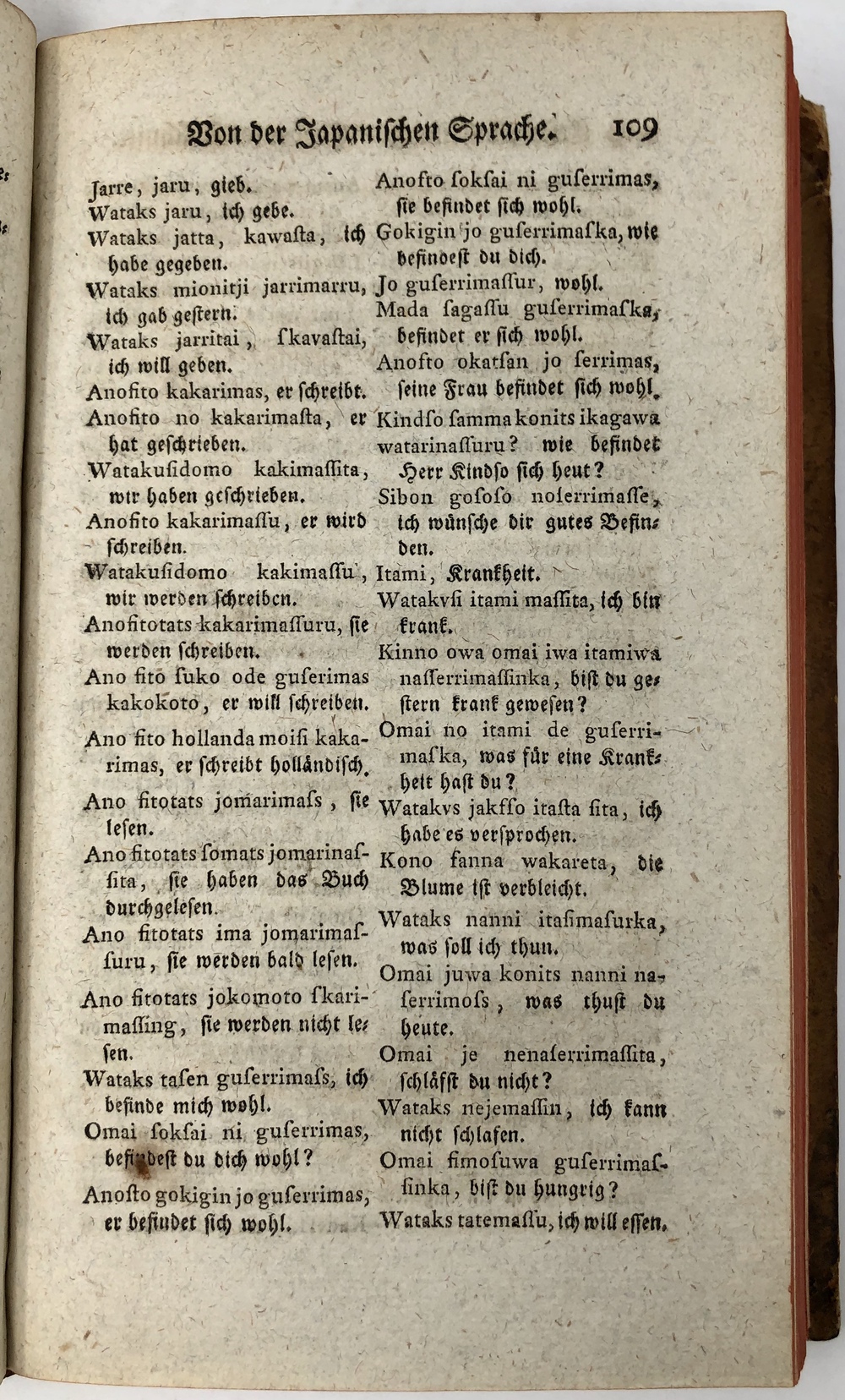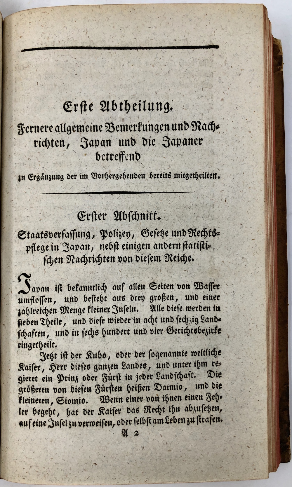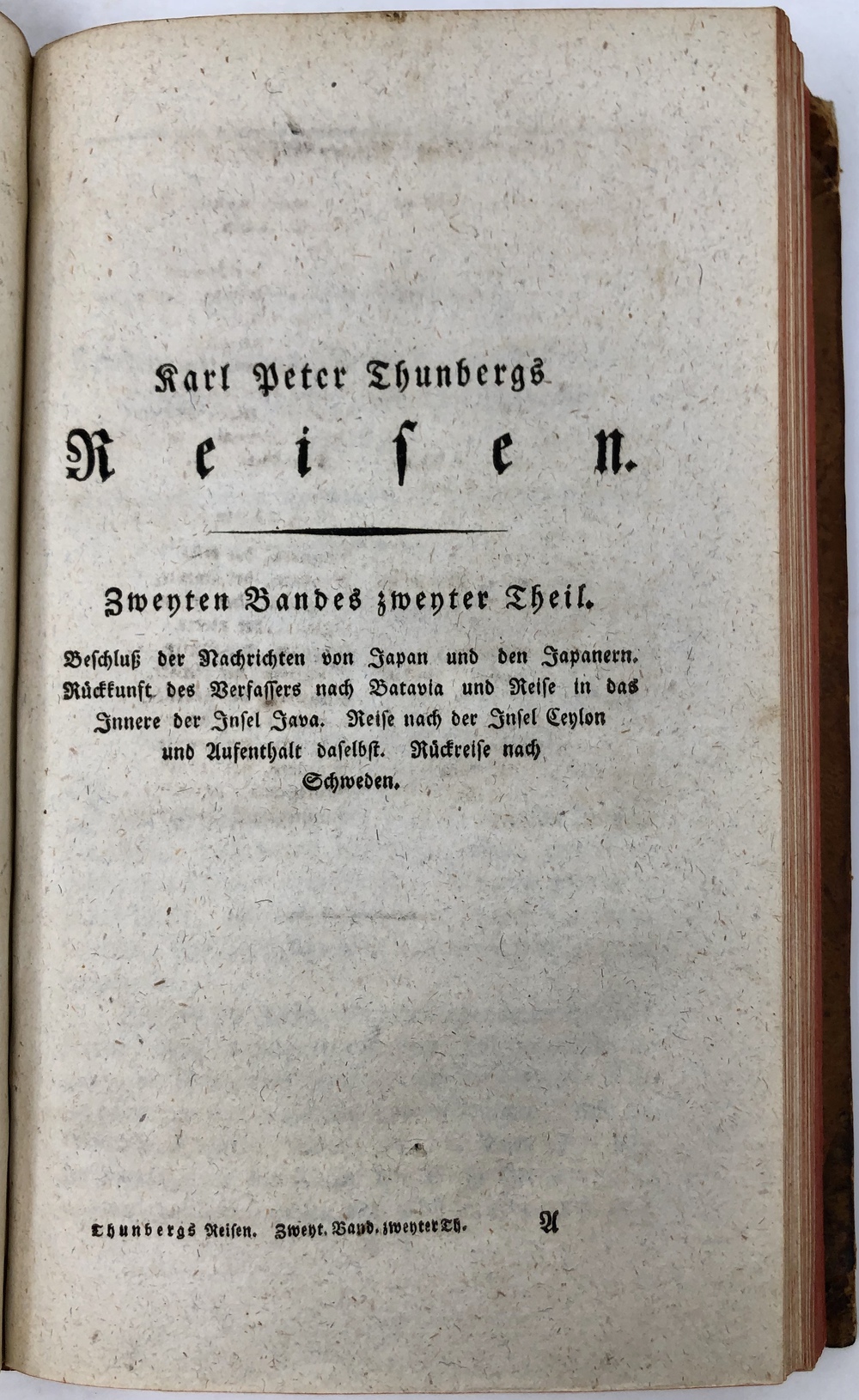 (Cordier: 446 / Alt Japan Katalog: 1511) 第2巻の背表紙革ラベルの剥がれ、革の一部に痛み、タイトルページに旧蔵機関の蔵書印が見られるが、全体として良好な状態。小口は三方とも赤く染められている。