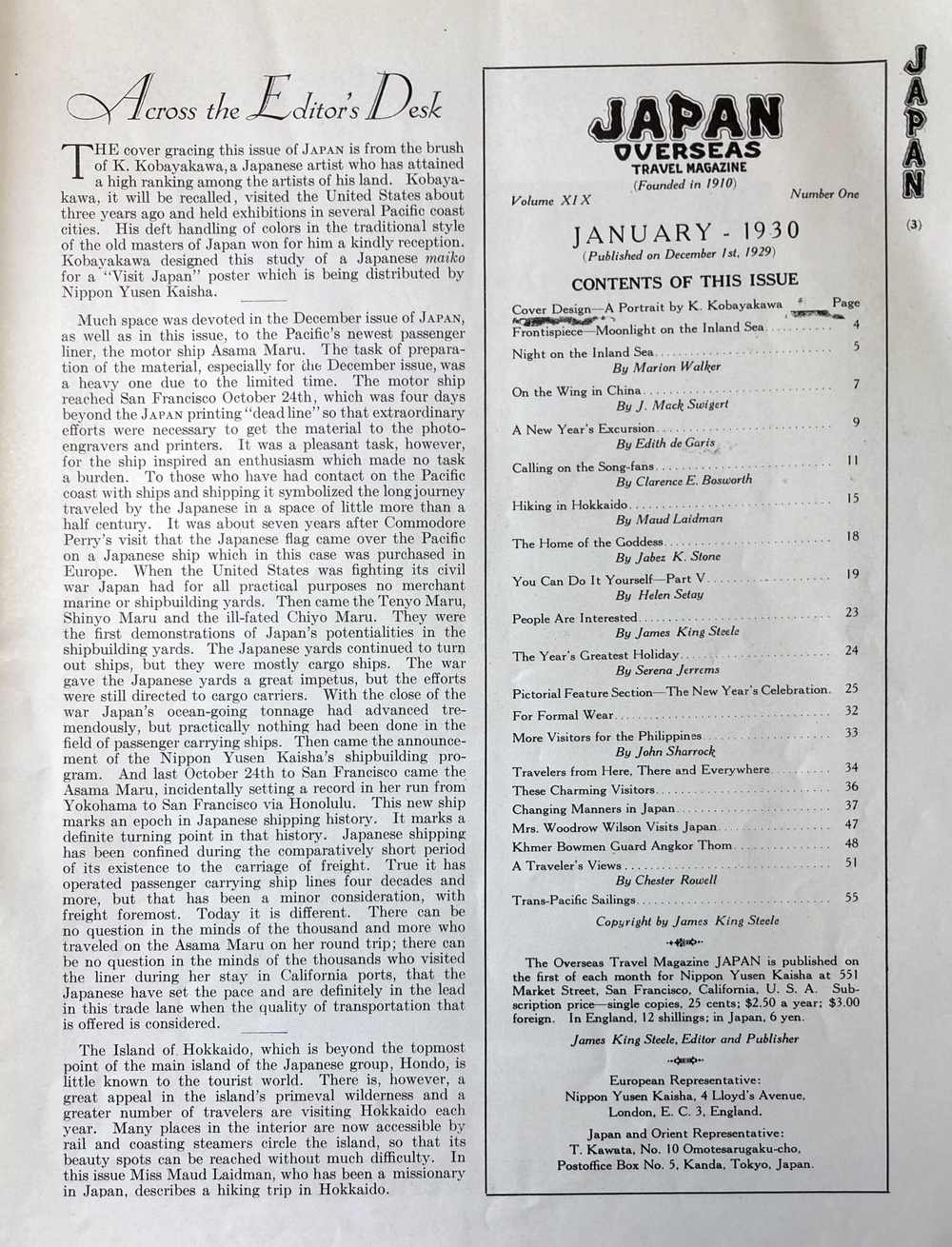 1930年1月号(第19巻第1号) 1929年(12月1日) サンフランシスコ刊