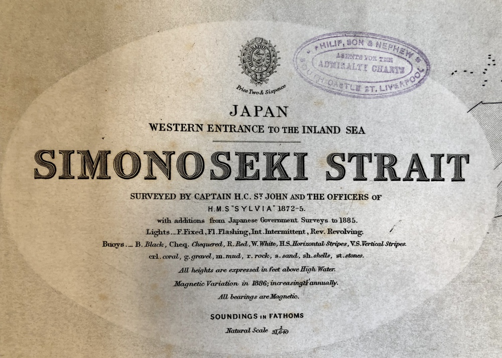 SIMONOSEKI STRAIT SURVEYED BY CAPTAIN H.C.ST JOHN AND THE OFFICERS OF H.M.S "SYLVIA" 1872-5. with additions from Japanese Government Surveys to 1885.