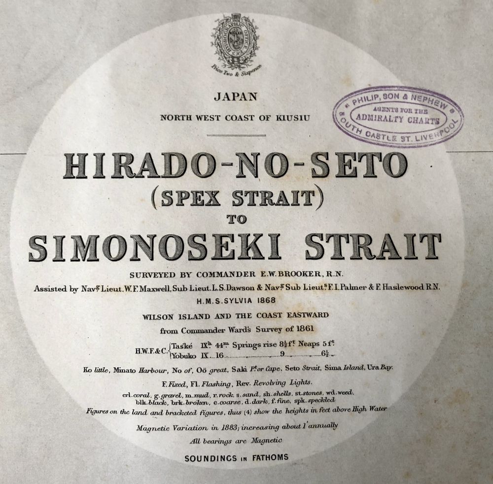 「1868年のブルーカー中佐のシルヴィア号調査に基づく平戸瀬戸(スペックス海峡)から下関海峡まで」1870年初版 1889年改訂
