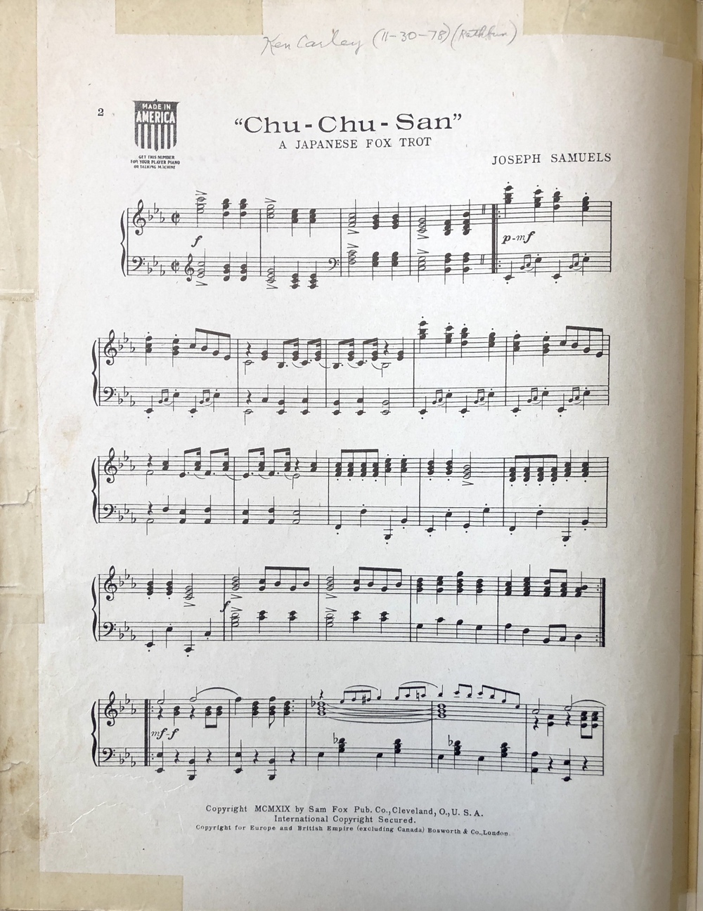 「チューチュー(蝶々)サン:日本のフォックストロット」(楽譜)