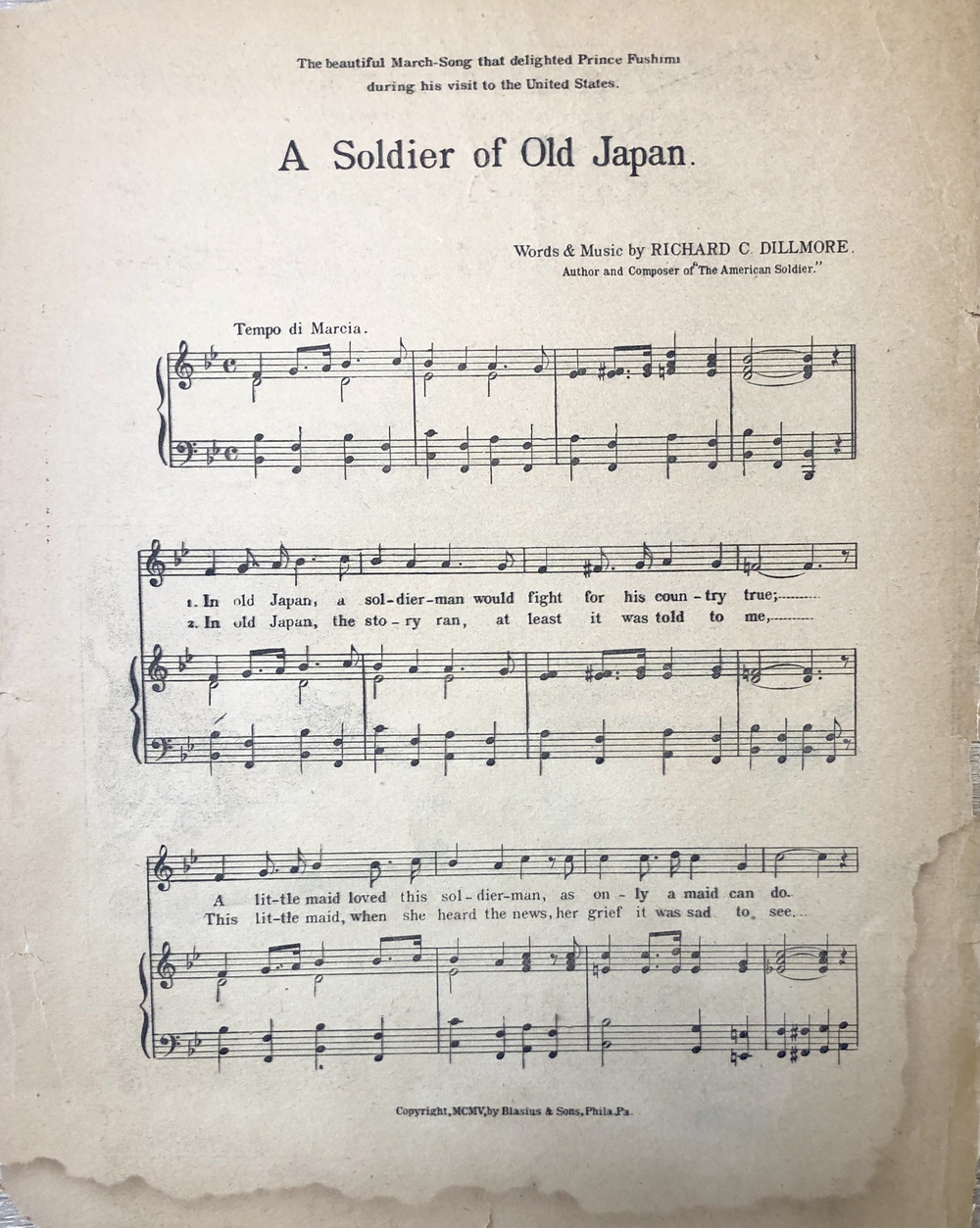 「伏見宮王子の曲:『古き日本の戦士の歌』」(楽譜)