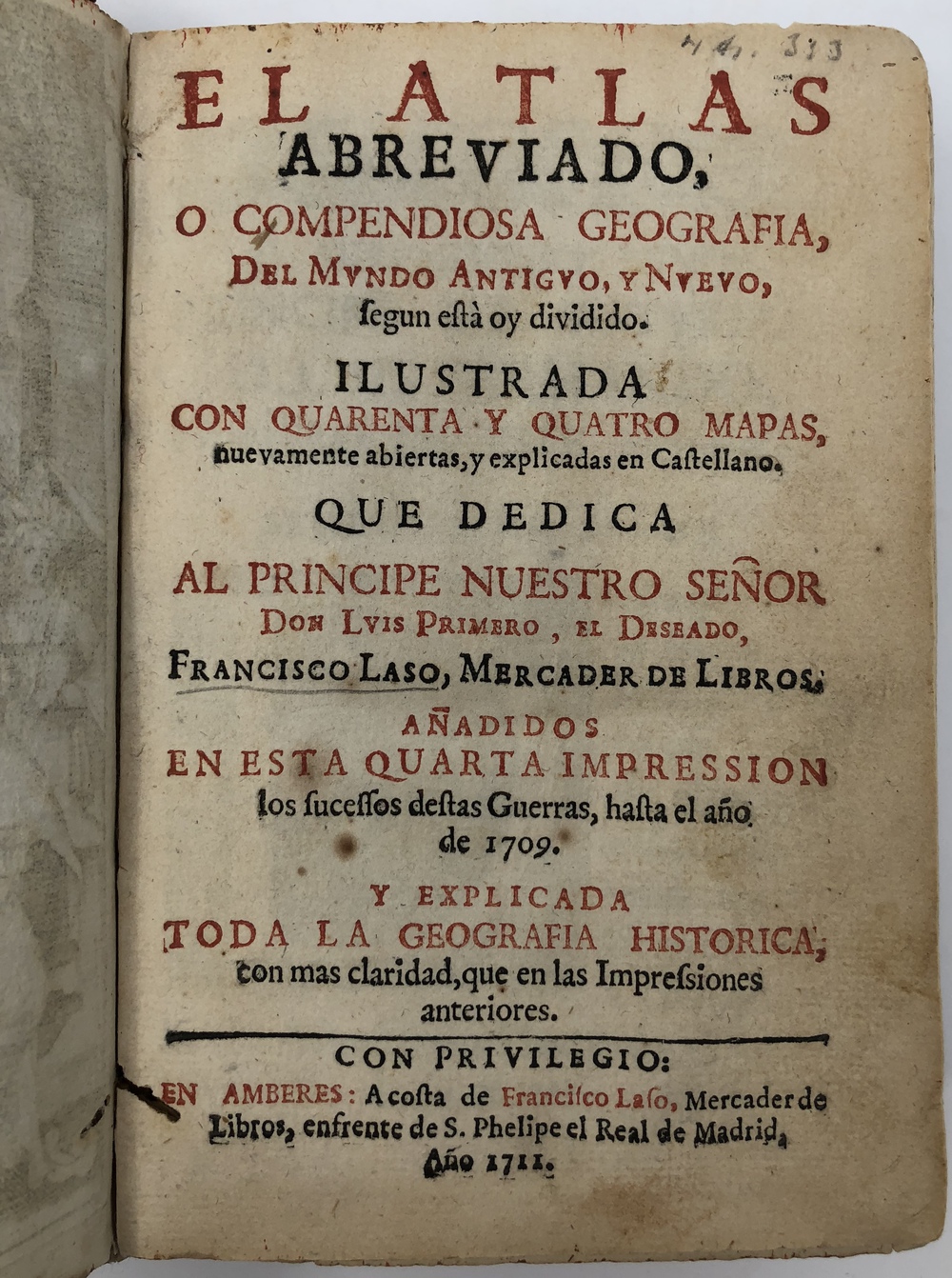 EL ATLAS ABREVIADO, O COMPENDIDOSA GEOGRAFIA, DEL MVNDO ANTIGVO, Y NVEVO, segun està oy dividido. ILUSTRADA CON QUARENTA Y QUATRO MAPAS, nuevamente abiertas, y explicadas en Castellano...
