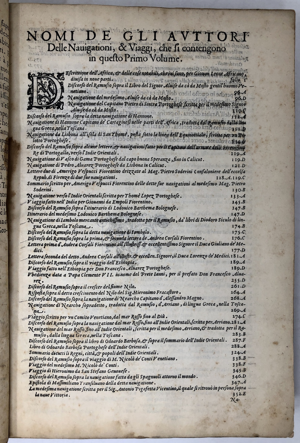 DELLE NAVIGATIONI ET VIAGGI RACCOLTE DA M. GIO. BATTISTA RAMVSIO, IN TRE VOLVMI DIVISE:…VOLVME PRIMO.