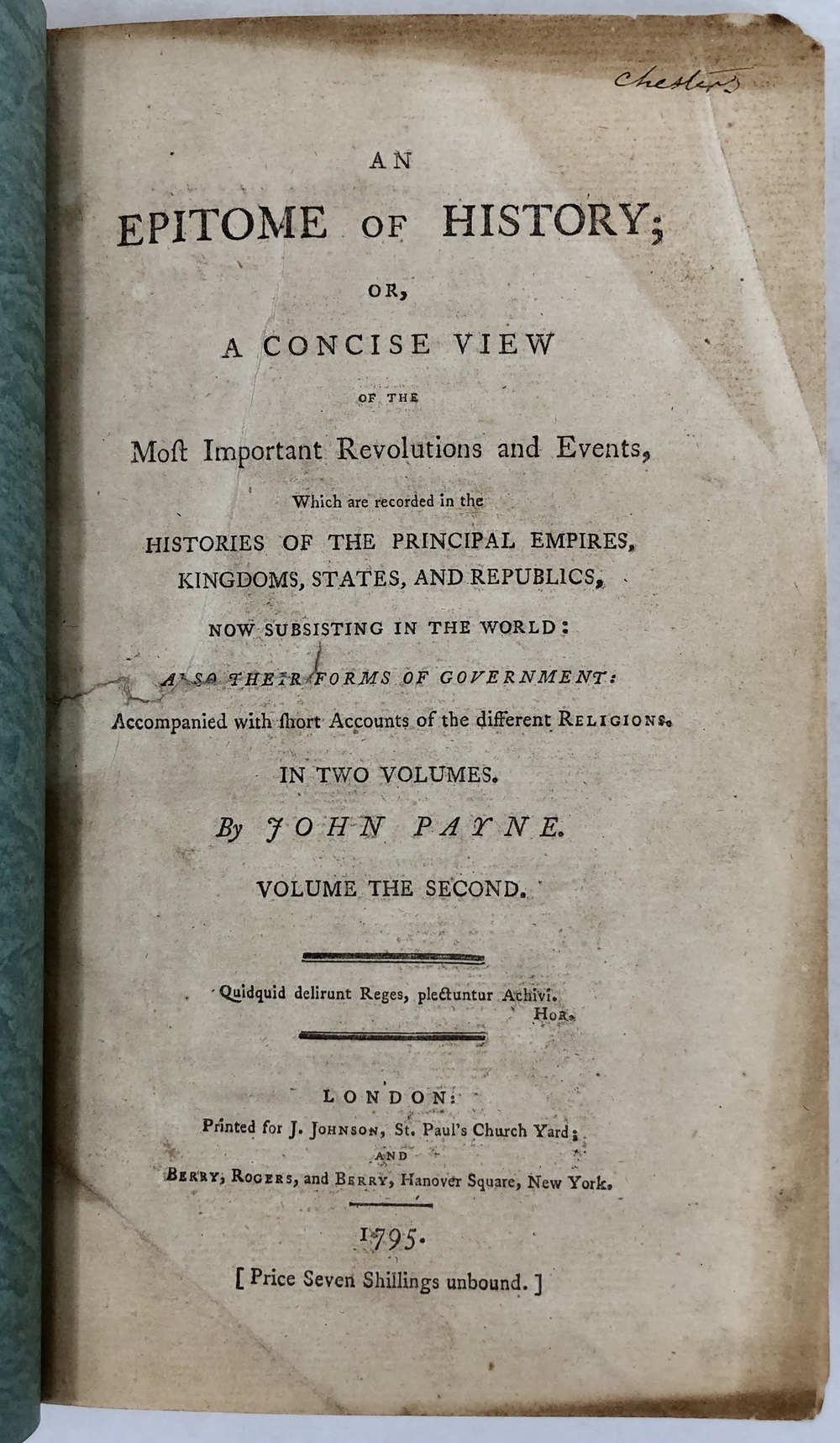 AN EPITOME OF HISTORY; OR, A CONCISE VIEW OF THE Most Important Revolutions and Events, Which are recorded in the HISTORIES OF THE PRINCIPAL EMPIRES, KINGDOMS, STATES, AND REPUBLICS, NOW SUBSISTING IN THE WORLD: ALDO THEIR FORMS OF GOVERNMENT: ...