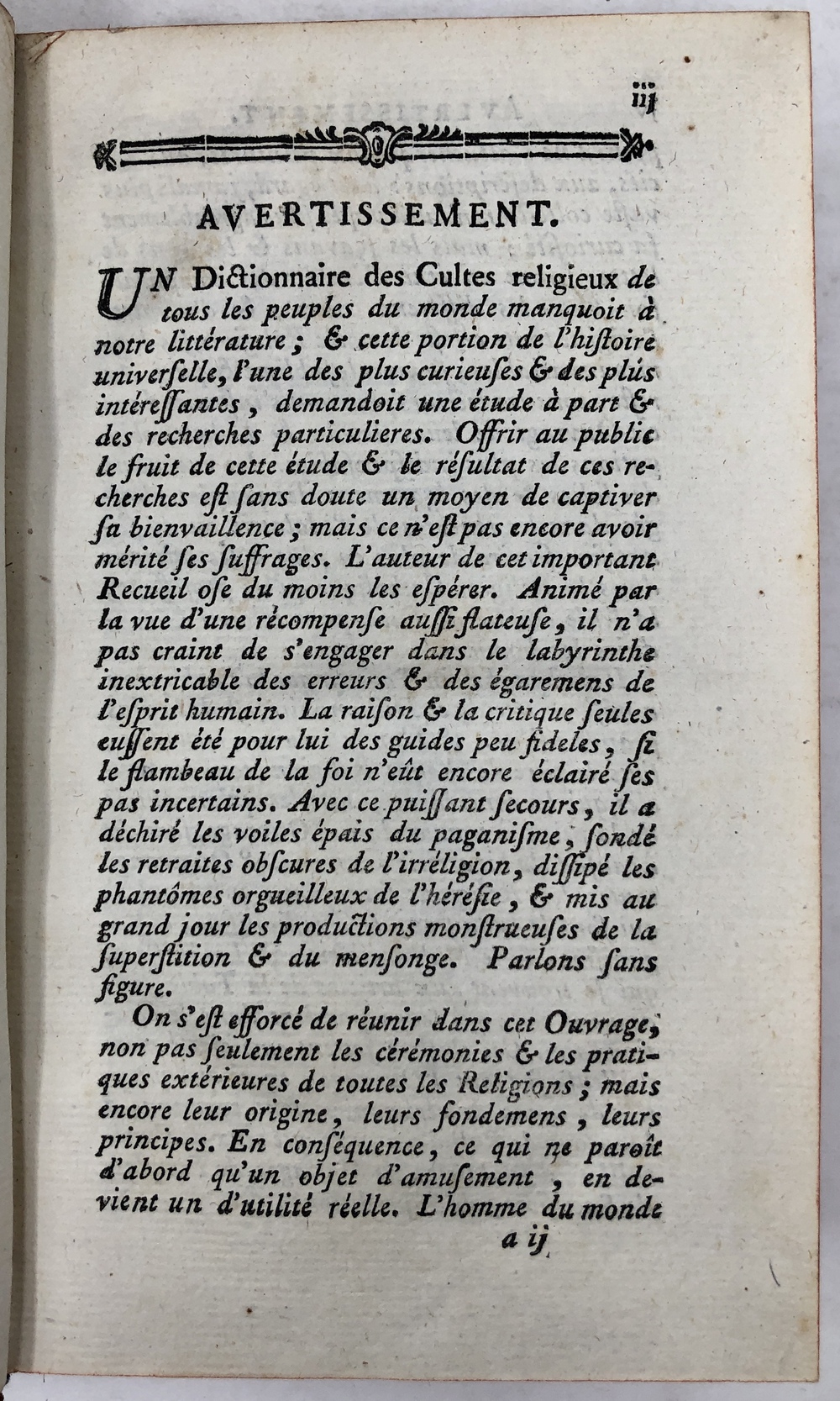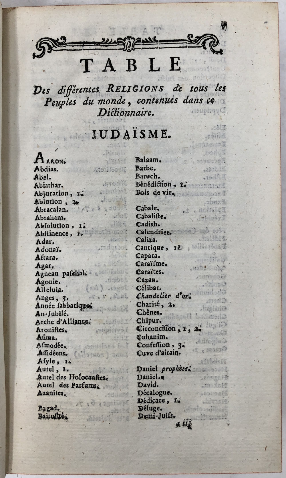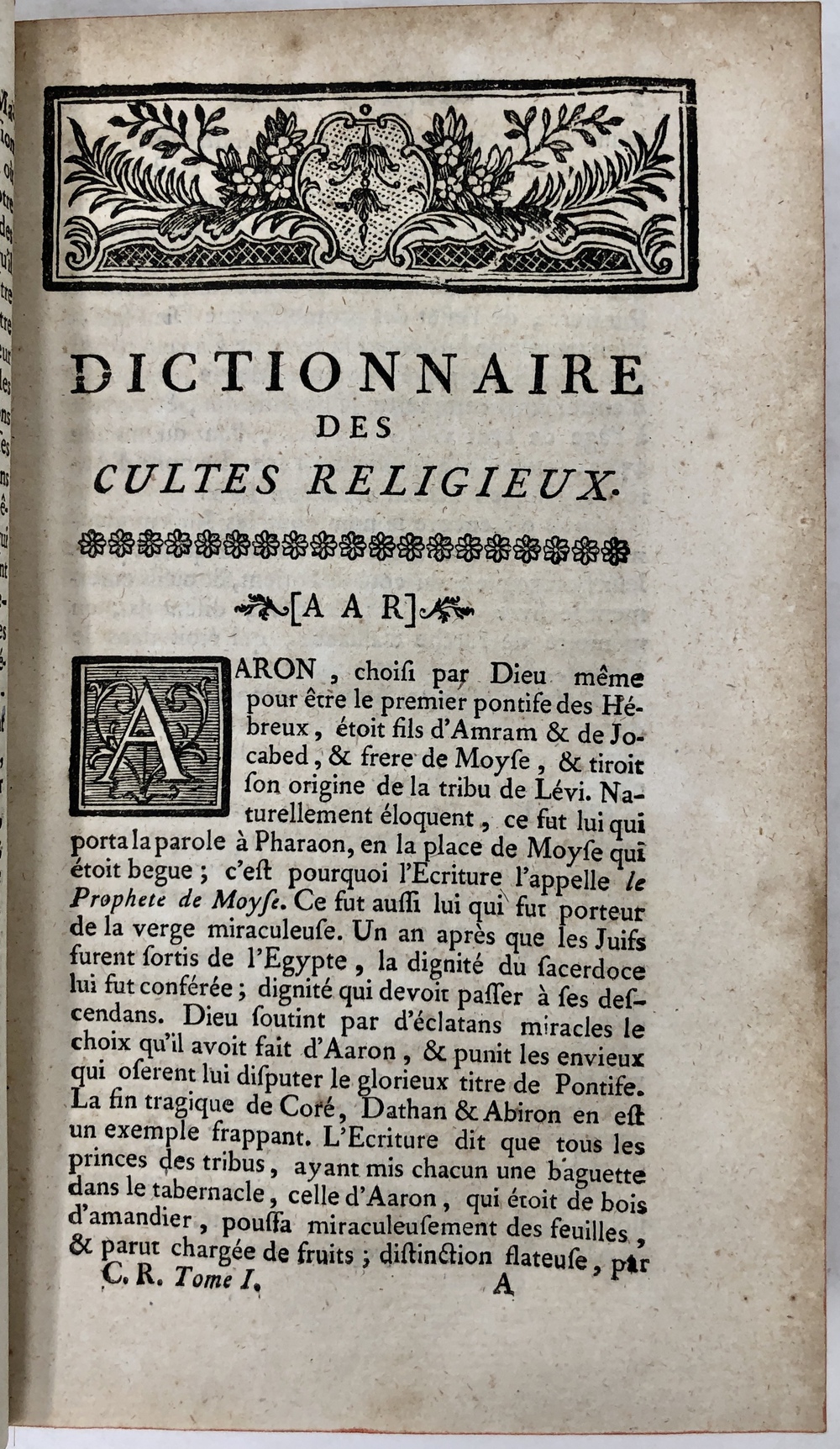 DICTIONNAIRE HISTORIQUE DES CULTES RELIGIEUX, ÉTABLIS DANS LE MONDE DEPUIS SON ORIGINE JUSQU’A PRÉSENT; ...L’HISTOIRE abrégée des Dieux & demi-Dieux du Paganisme, & celle des Religions Chrétienne, Judaïque, Mahométane, Chinoise, Japonoise, Indienne,...