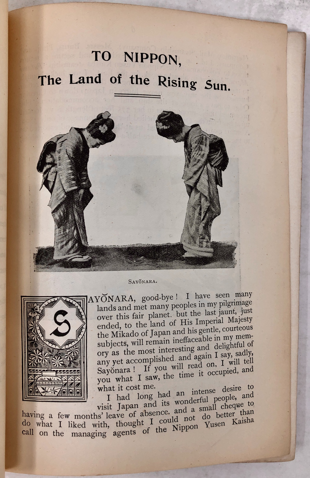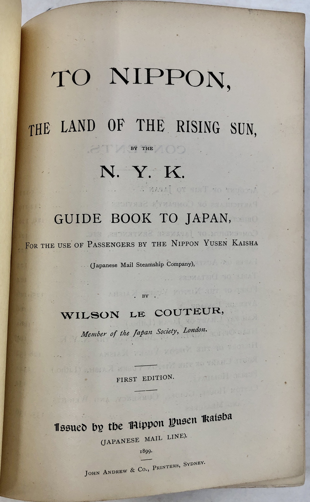 TO NIPPON, THE LAND OF THE RISING SUN BY THE N. Y. K. GUIDE BOOK TO JAPAN, FOR THE USE OF PASSENGERS BY THE NIPPON YUSEN KAISHA (Japanese Mail Steamship Company),…