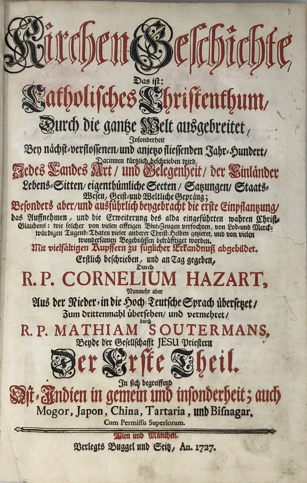 Kirchen Geschichte, Das ist: Catholisches Christenthum, Durch Die gantze Welt ausgebreitet,...Der Erste Theil. Ost-Indien in gemen und insonderheit; Mogor, Japon, China, Tartaria, und Bisnagar.