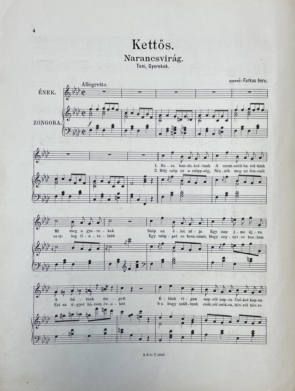 NARANCSVIRÁG: OPERETTE 2 FELVONÁSBAN szövegét és zenéjét irta.
