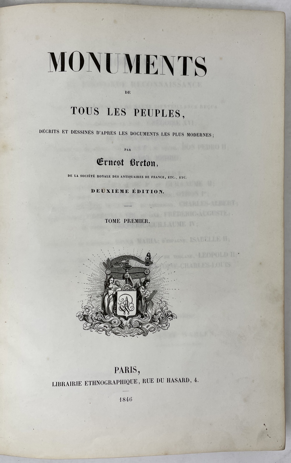 MONUMENTS DE TOUS LES PEUPLES, DÉCRITS ET DESSINÉS D’APRÈS LES DOCUMENTS LES PLUS MODERNES;…DEUXIÈME ÉDITION.