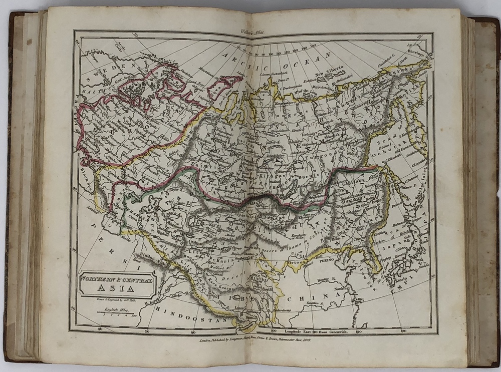 Title, folding double page world map, 27 double page maps, all contemporary colored,