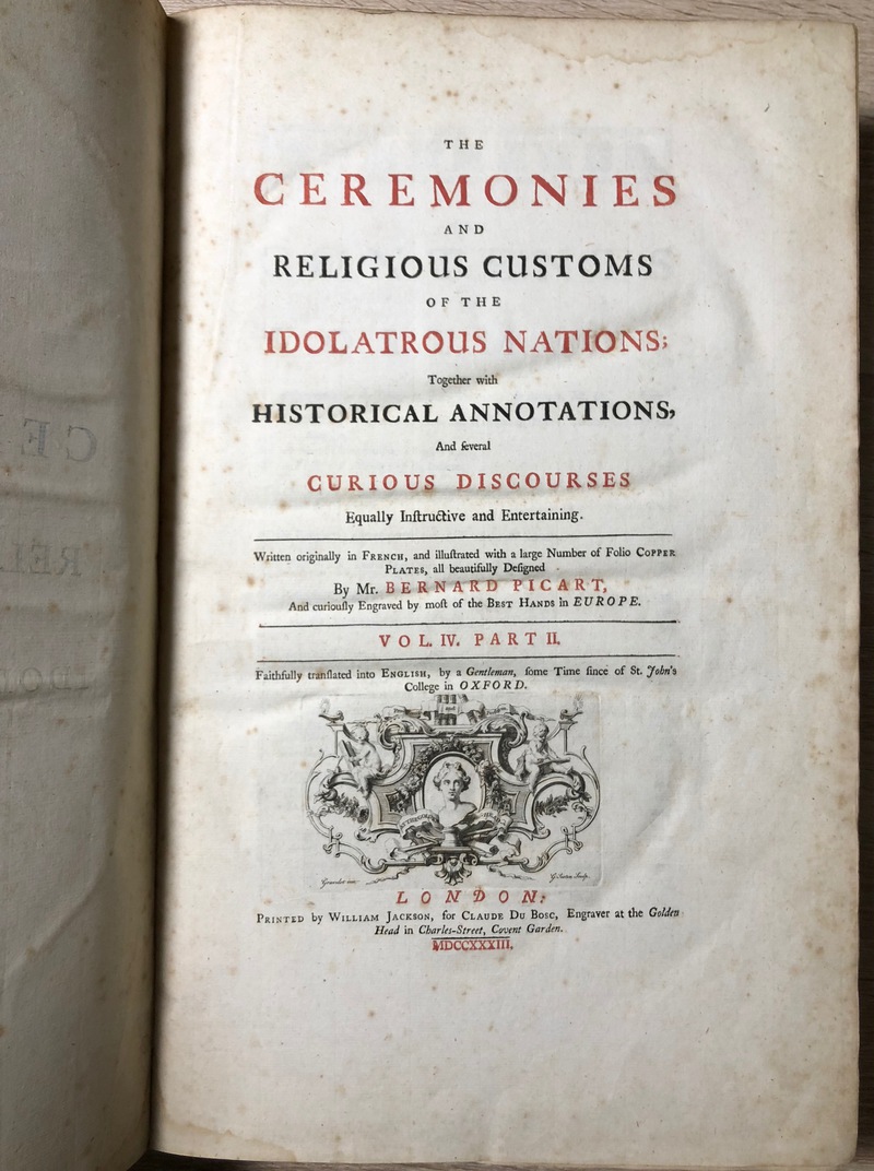 THE CEREMONIES AND RELIGIOUS CUSTOMS OF THE IDOLATROUS NATIONS; Together with HISTORICAL ANNOTATIONS, And several CURIOUS DISCOURSES Equally Instructive and Entertaining. Written originally in FRENCH, and illustrated with a large Number of Folio COPPER PL