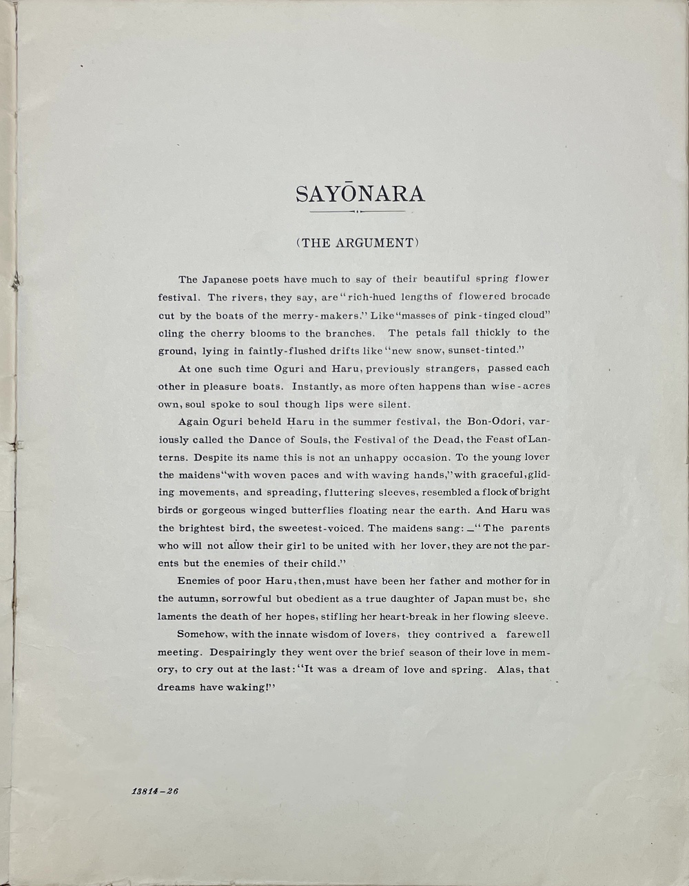 『さようなら:ある日本のロマンス』(楽譜 / 楽曲集)
