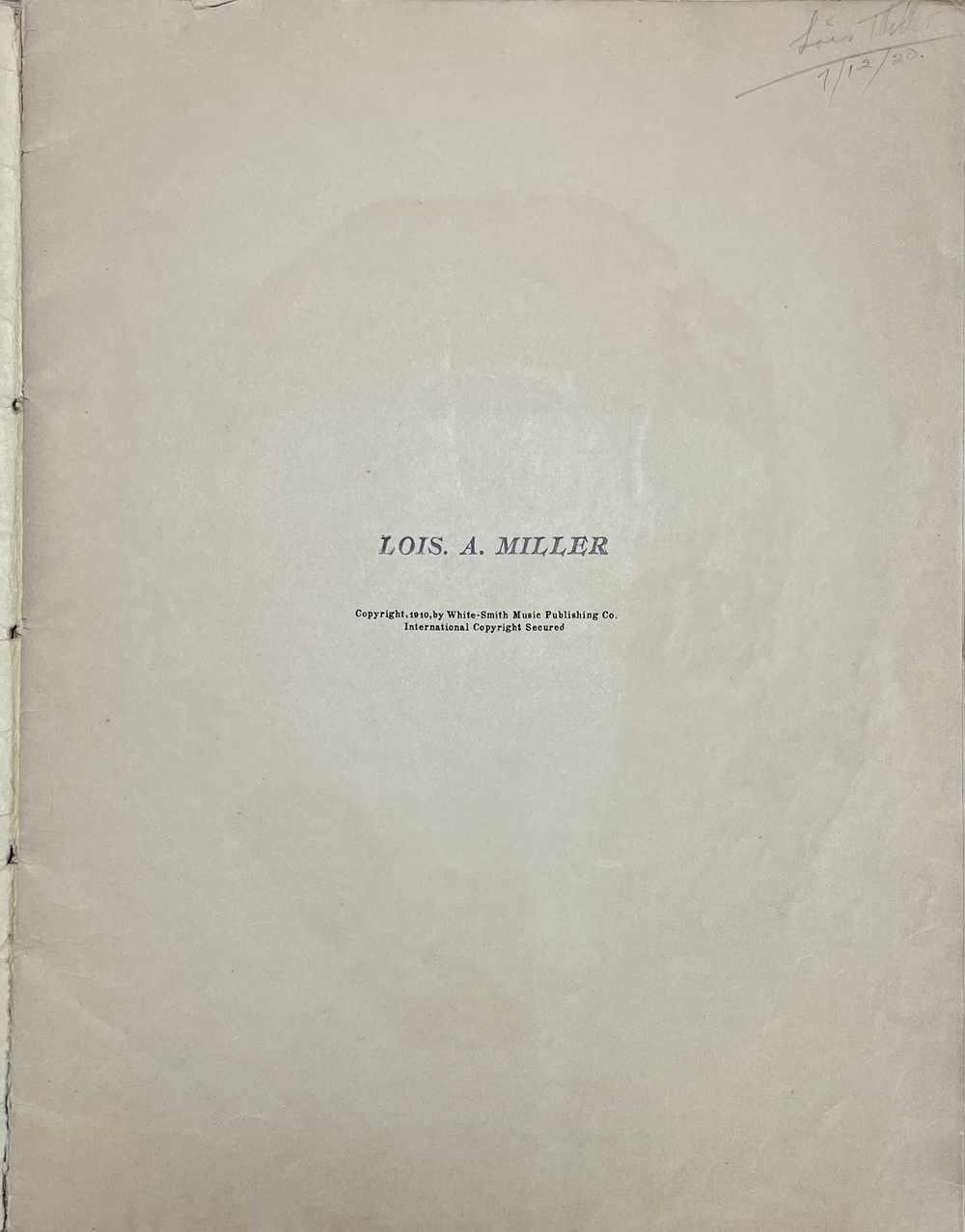Miller, Lois. A. / Eberhart, Nelle Richmond (words) / Cadman, Charles Wakefield (music).